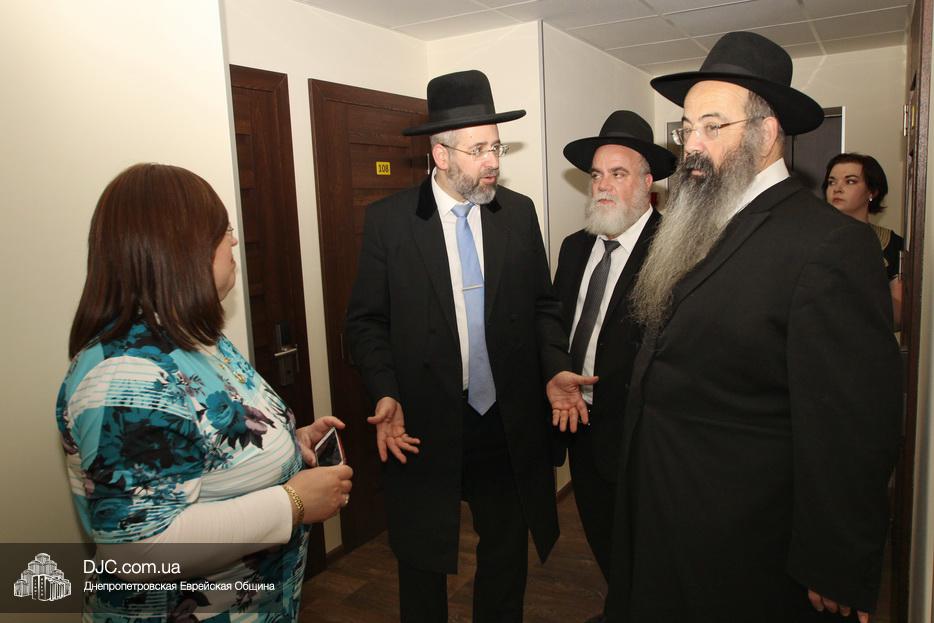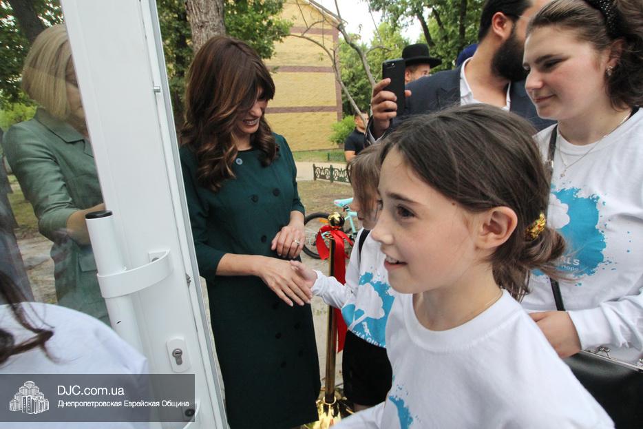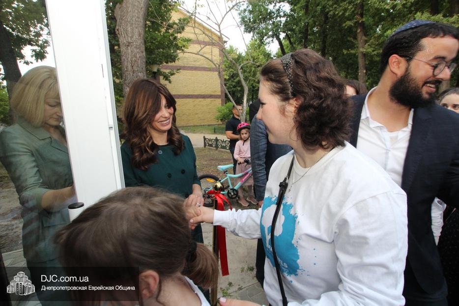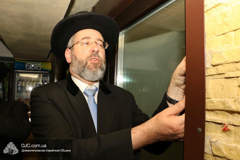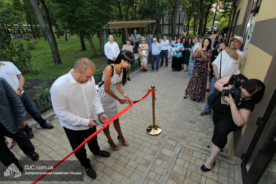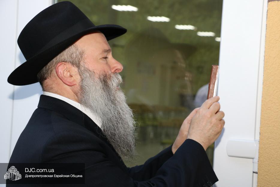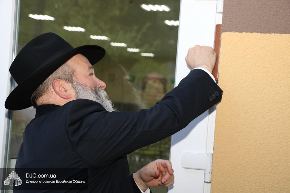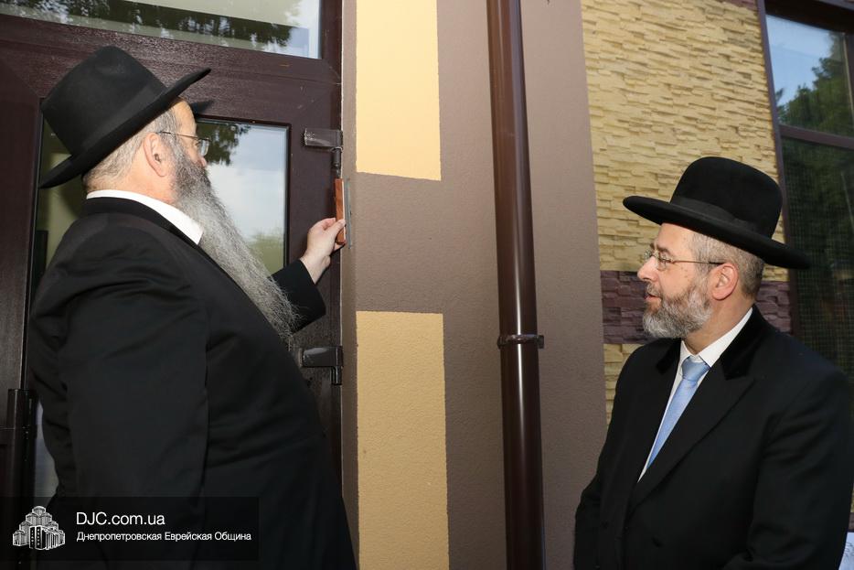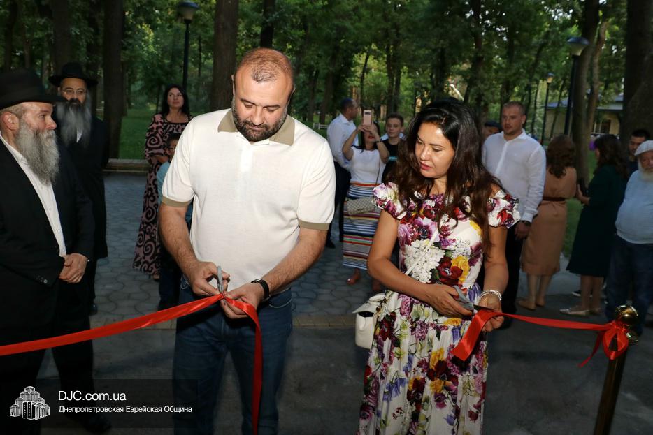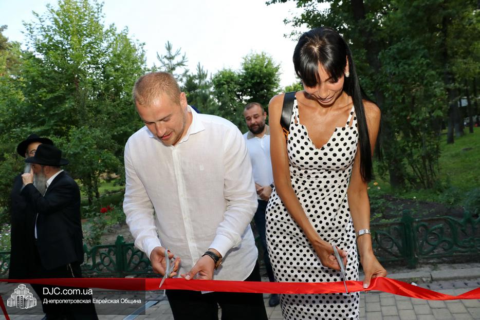 Кульминацией чреды «Ханукат а-Байт» стала церемония открытия «Зала собраний» – красную ленточку перерезал меценат многих программ еврейской общины Днепра Виталий Абраменко с супругой Ириной и сыном Артуром. А мезузу ко входу в это здание прикрепил Главный раввин Днепра и региона Шмуэль Каминецкий.