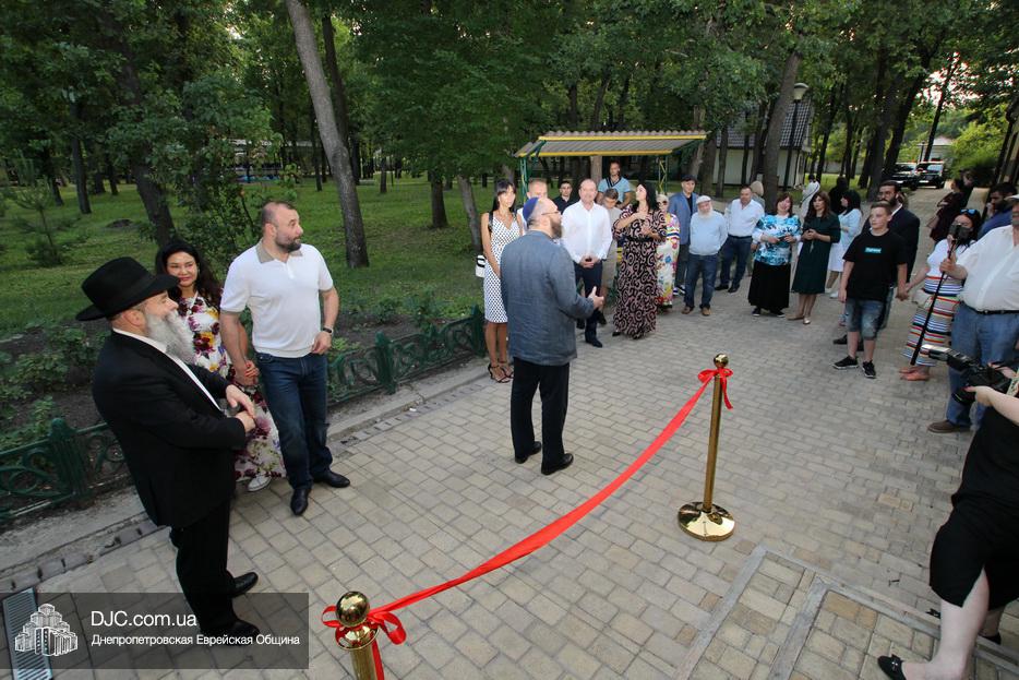 Для перерезания ленточки у входа в здание столовой был приглашен один из меценатов реконструкции лагеря Сергей Кочетков со своей супругой Анастасией. Мезузу к косяку двери центрального входа в трапезный зал прикрепил раввин Холона Пинхас Альтхойз.