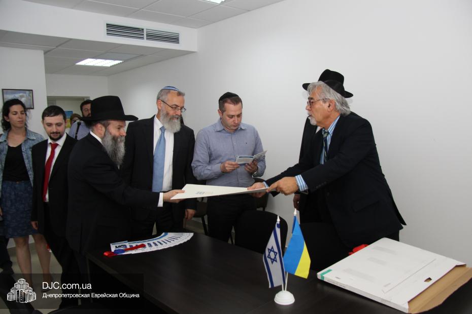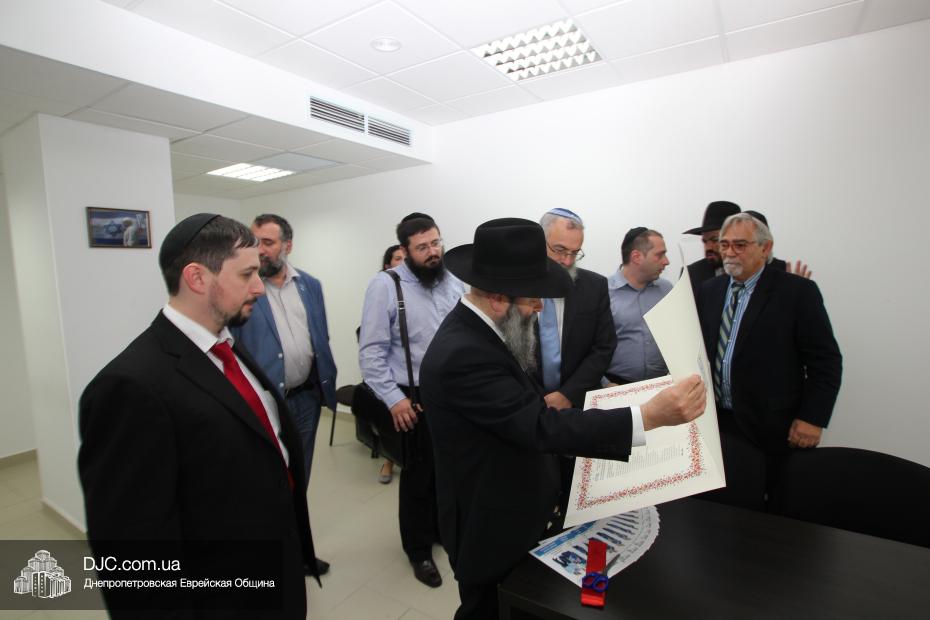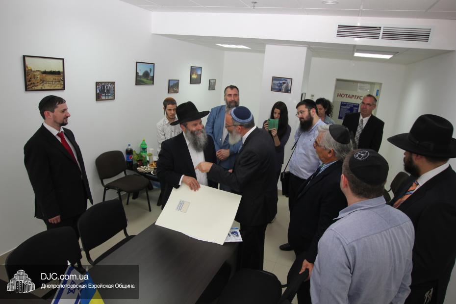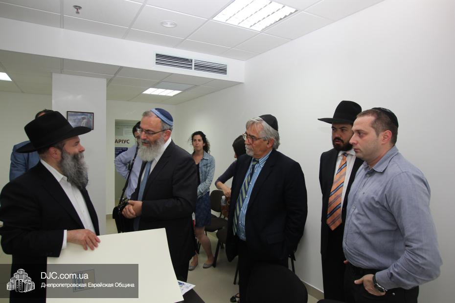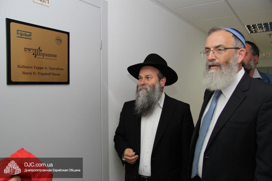 Затем была перерезана красная ленточка, и офис организации «Шорашим» был официально открыт. Начало его работы приветствовали руководители еврейской общины Днепропетровска, второй секретарь Посольства государства Израиль в Украине, директор Центра Культуры Израиля Вячеслав Смоткин, которые поздравили раввина Якова Гайсиновича, получившего статус Главы представительства организации «Шорашим».