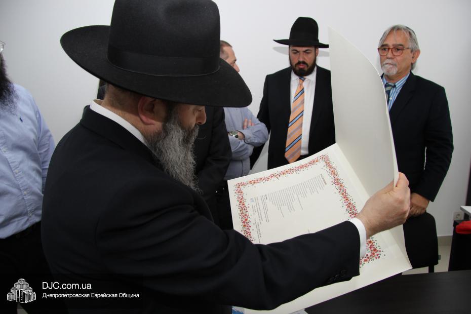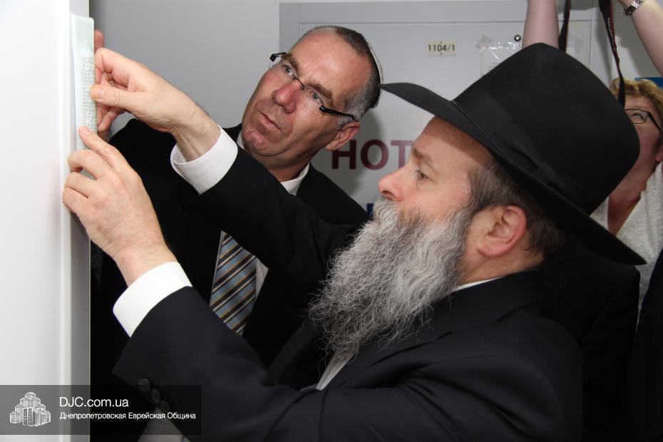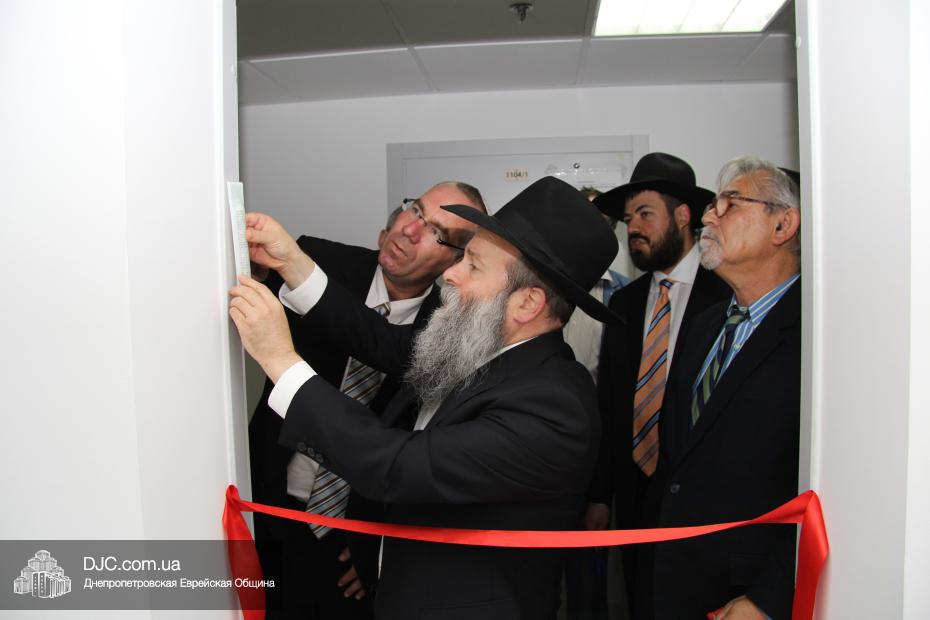 В церемонии открытия – «Ханукат а-Байт» – приняли участие почетные гости: раввин Давид Став, руководитель раввинской организации «Цохар» и главный раввин города Шохам (Израиль); Ори Шехтер, генеральный директор всей структуры «Шорашим», и Шолом Норманн, директор «Института Гарри Оскара Тригубова» и «Австралийского фонда Тригубова», которых сопровождали представители популярных израильских СМИ – радио «Арутц штайм», портала «YNET» и газеты «Jerusalem Post». Мезузу к дверям новой еврейской структуры в «Меноре» с соответствующим благословением прикрепил Главный раввин Днепропетровска и региона Шмуэль Каминецкий.