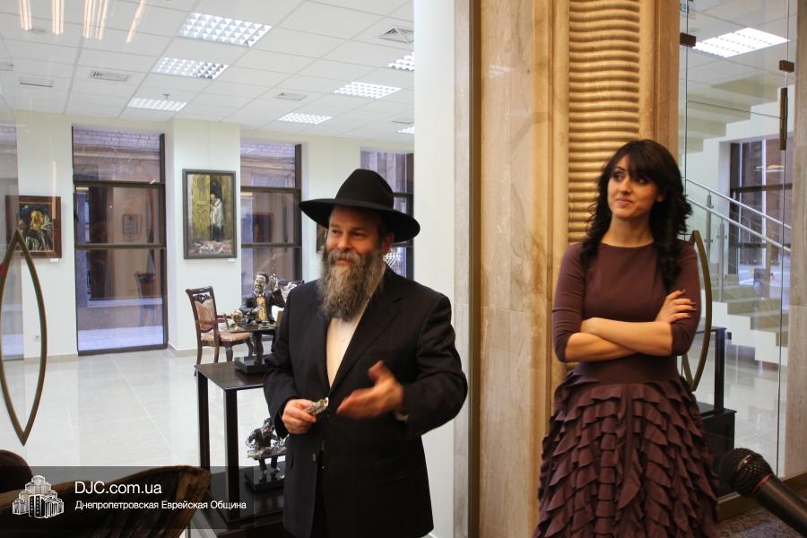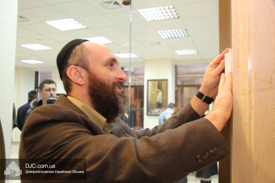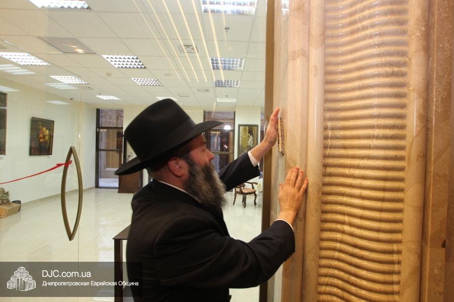 Церемонию «Ханукат байт» – прикрепление мезузы – провел Главный раввин Днепропетровска и Днепропетровского региона Шмуэль Каминецкий, который затем вместе с Германом Гольдом перерезал красную ленточку у входа в торговое помещение. Церемонию прикрепления мезузы к другой двери «Elegant Life Center» провел директор днепропетровской еврейской общины реб Зелиг Брез.