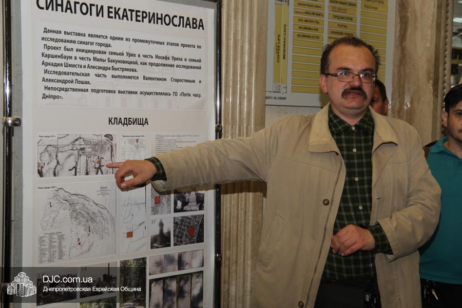 Александр Быстряков, автор труда «Хроника жизни евреев Екатеринослава–Днепропетровска», принял участие в открытии, выразив свою радость, что его дело продолжается, благословил Валентина Старостина и его коллег и выразил надежду, что совсем скоро он будет держать в руках первый том монографии «Синагоги Екатеринослава». «Это колоссальный труд, очень тяжелый и кропотливый, – сказал Александр Быстряков, – я восхищаюсь этими людьми, которые сделали такую большую работу по документальной фиксации каждого объекта. Я счастлив видеть эту выставку, и считаю эту работу чрезвычайно нужной».