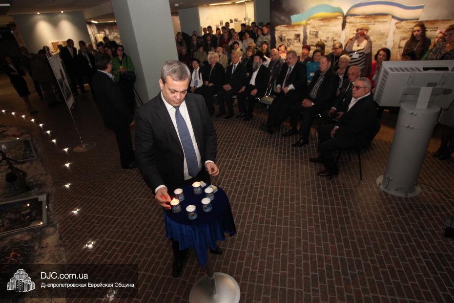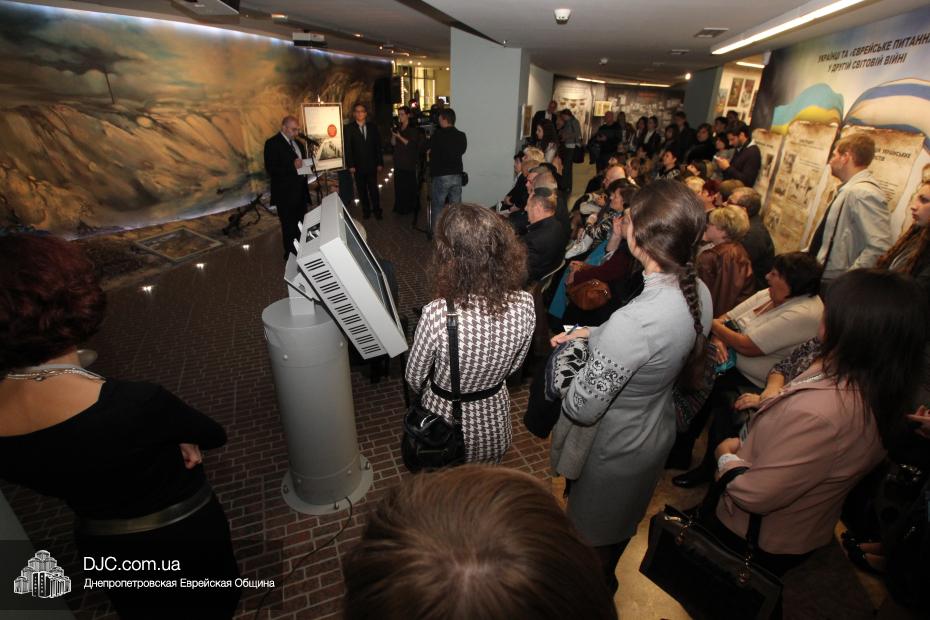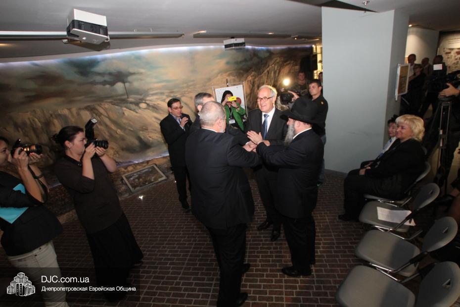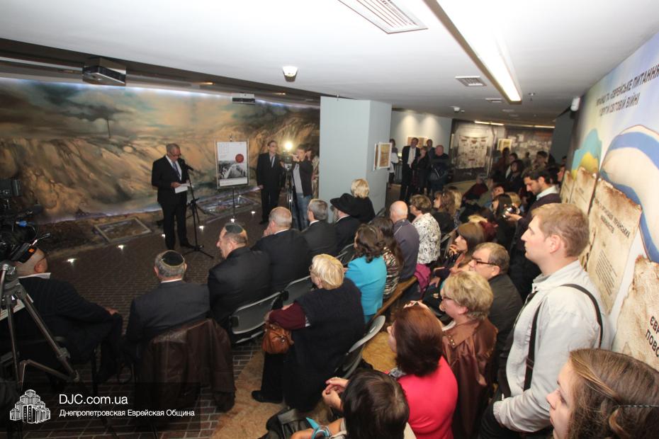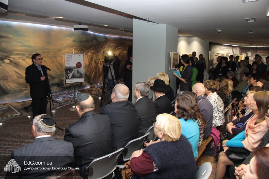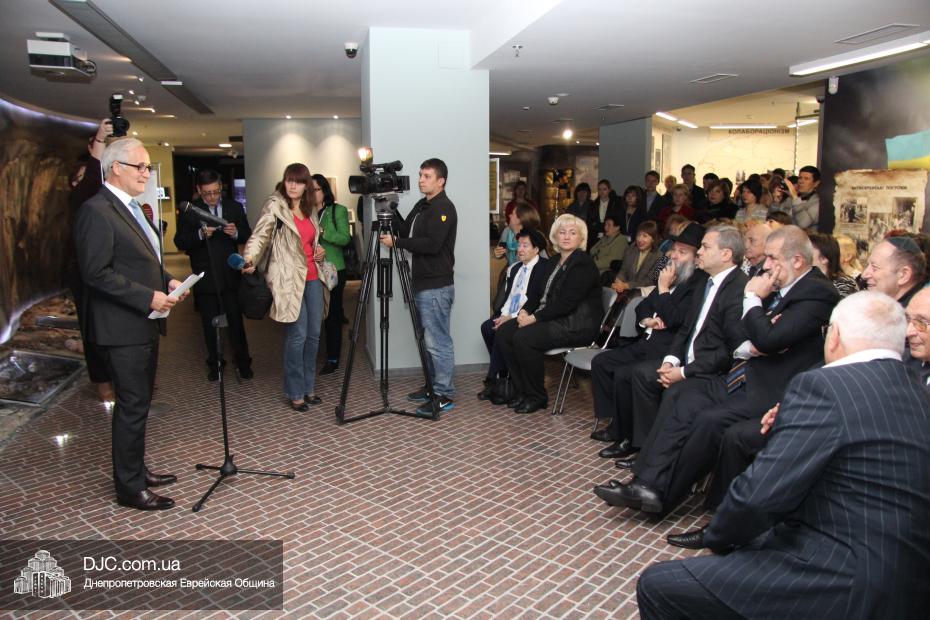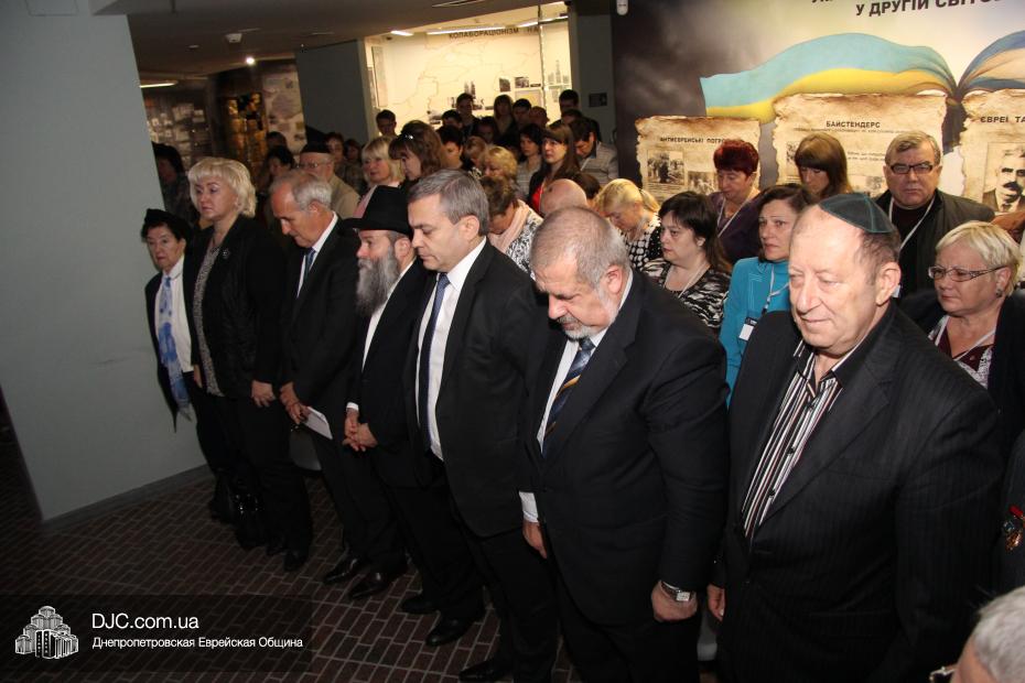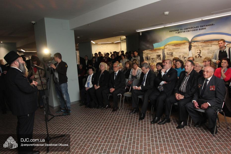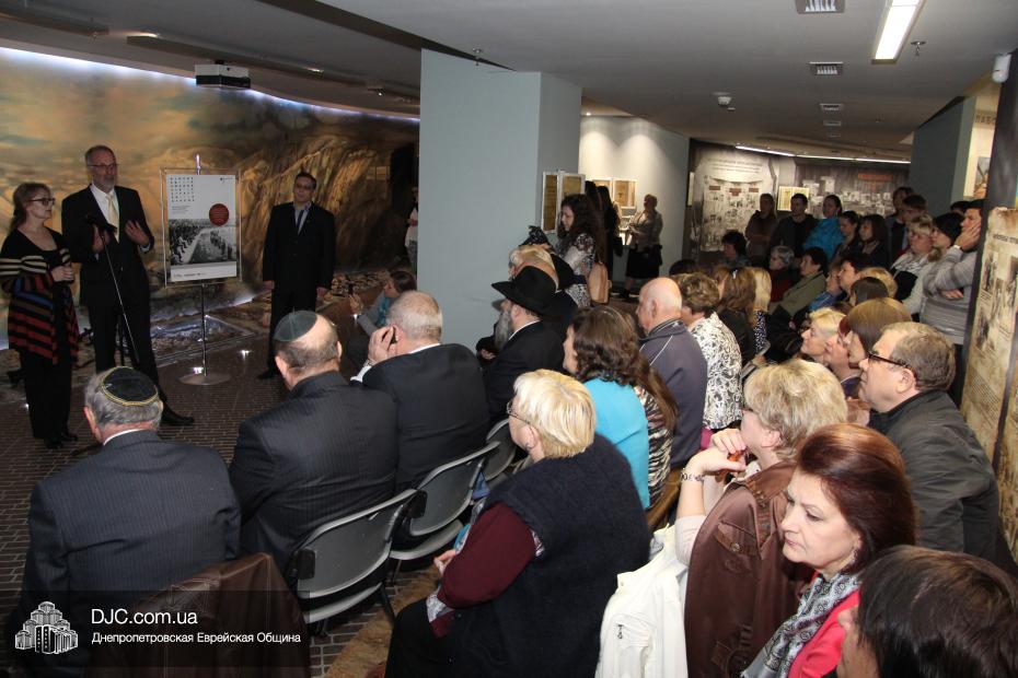 Церемония проходила во втором зале музея, около одного из центральных музейных объектов и важнейшей части экспозиции – диорамы «Бабий Яр». В мероприятии приняли участие Главный раввин Днепропетровска и региона Шмуэль Каминецкий, Генеральный консул Германии доктор Детлеф Вольтер, председатель Меджлиса крымскотатарского народа Рефат Чубаров, советник губернатора Днепропетровщины Борис Трейгерман, представители Днепропетровской облгосадминистрации, почетные гости из Армении, Грузии и Молдовы, а также общественные деятели, ученые, участники финала ХІ Международного конкурса творческих работ учеников, студентов и учителей «Уроки войн и Холокоста – уроки толерантности».