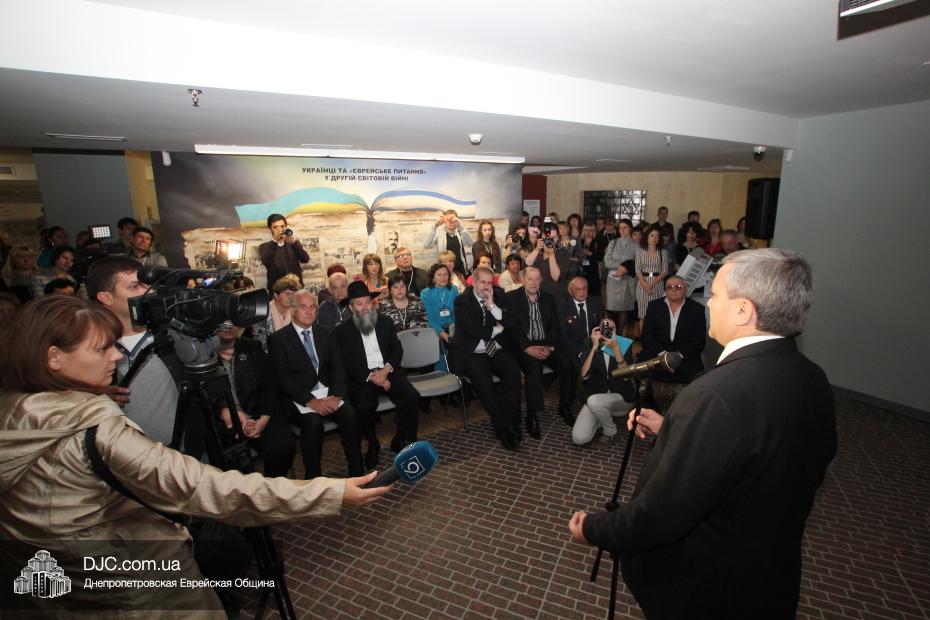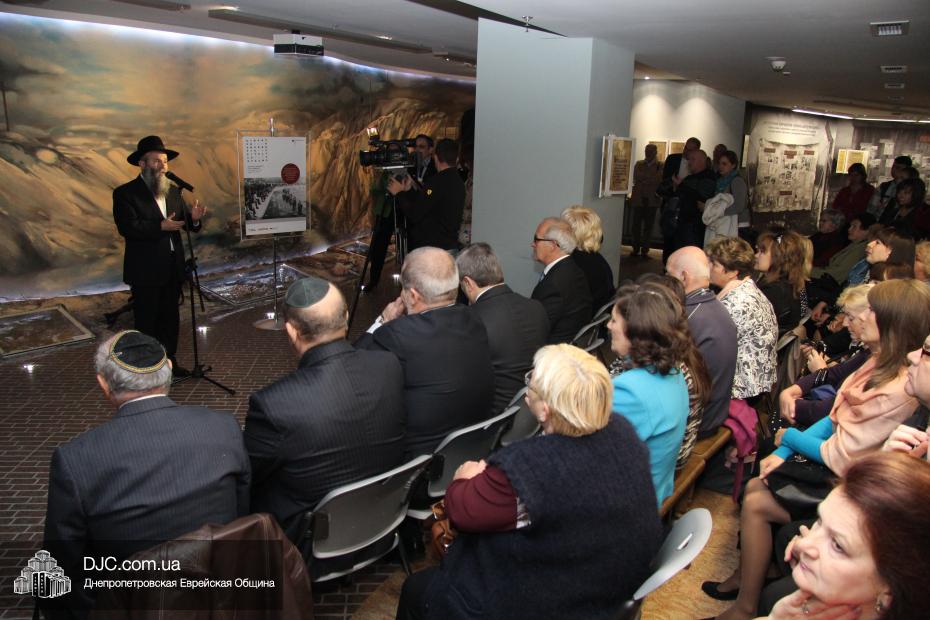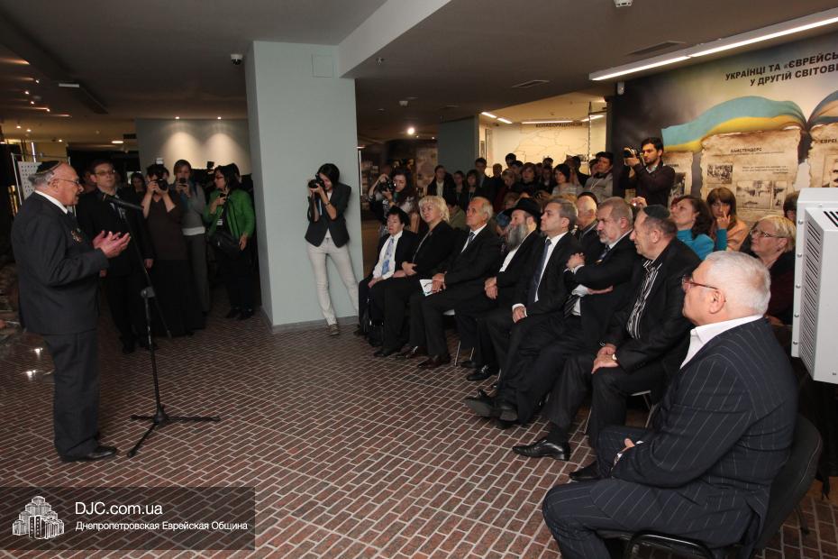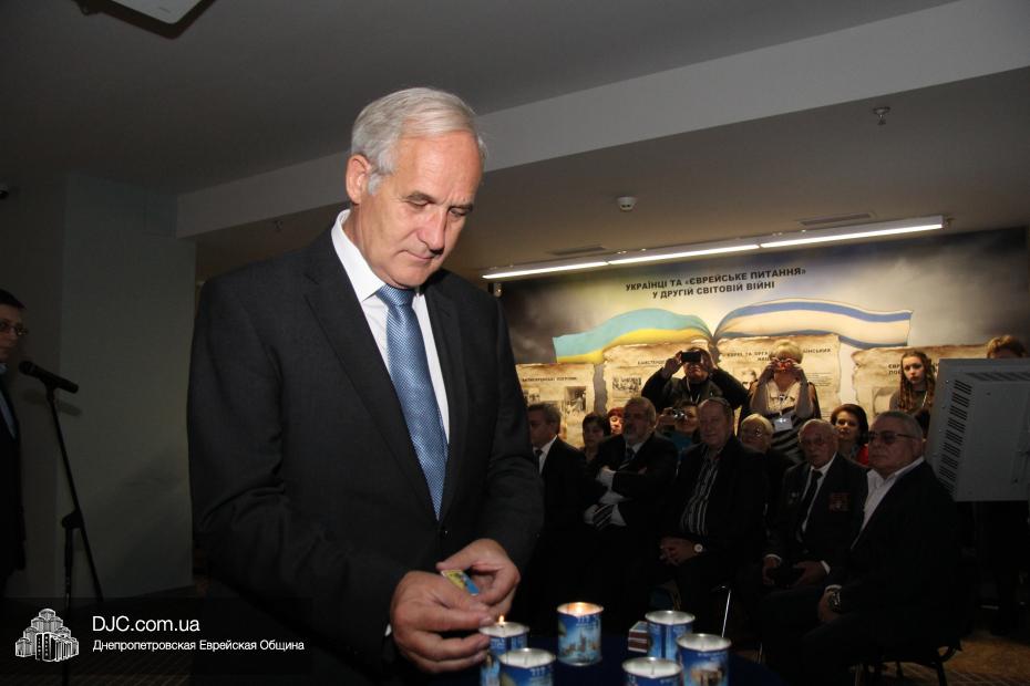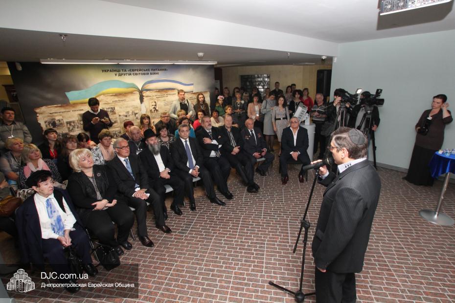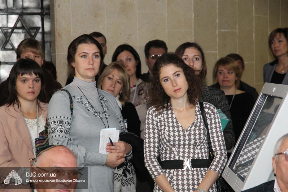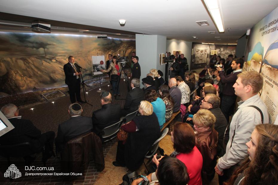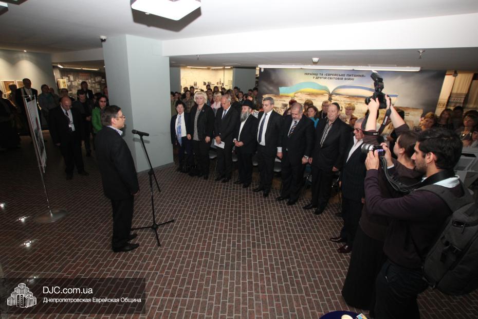 Церемония проходила во втором зале музея, около одного из центральных музейных объектов и важнейшей части экспозиции – диорамы «Бабий Яр». В мероприятии приняли участие Главный раввин Днепропетровска и региона Шмуэль Каминецкий, Генеральный консул Германии доктор Детлеф Вольтер, председатель Меджлиса крымскотатарского народа Рефат Чубаров, советник губернатора Днепропетровщины Борис Трейгерман, представители Днепропетровской облгосадминистрации, почетные гости из Армении, Грузии и Молдовы, а также общественные деятели, ученые, участники финала ХІ Международного конкурса творческих работ учеников, студентов и учителей «Уроки войн и Холокоста – уроки толерантности».