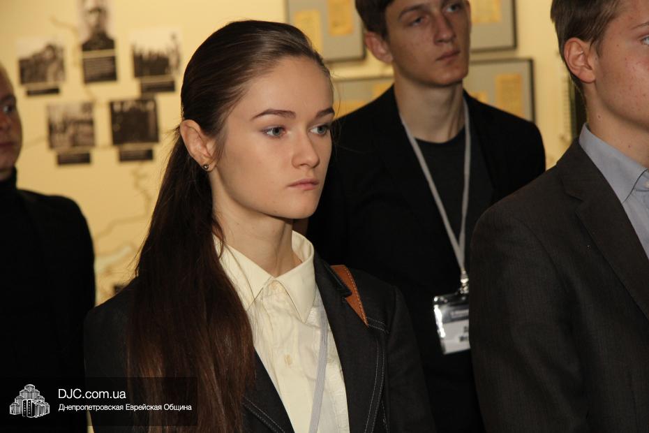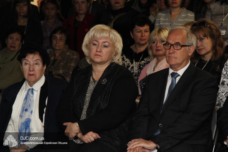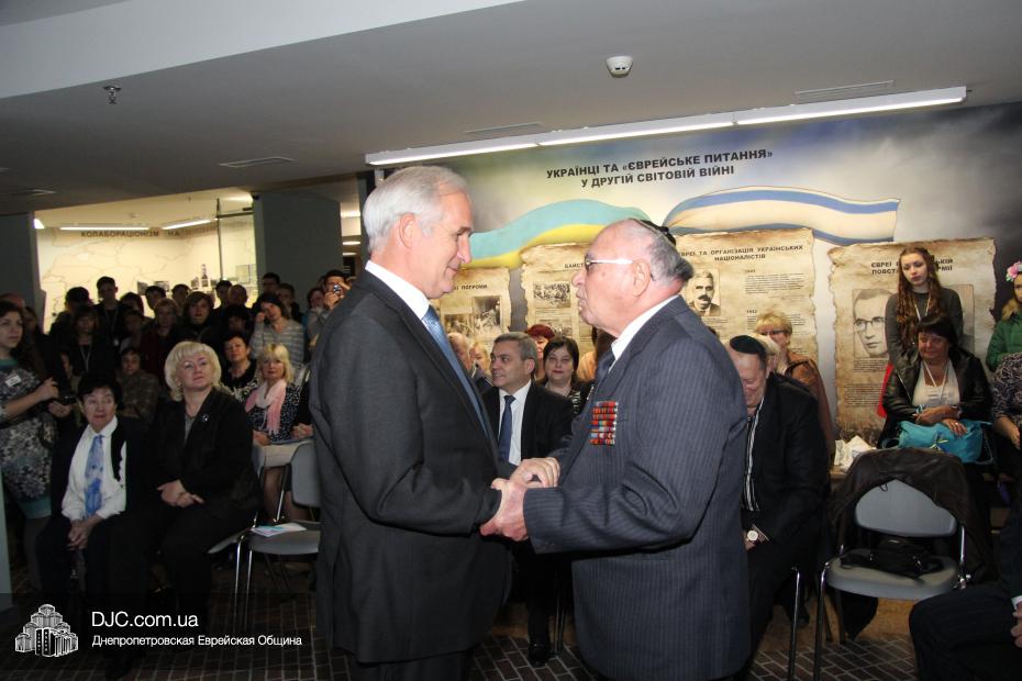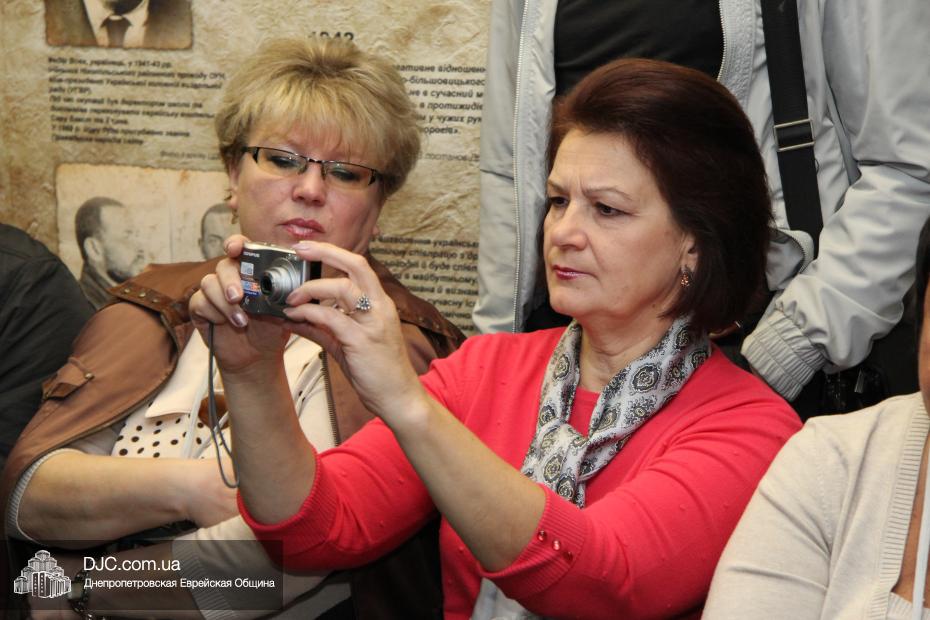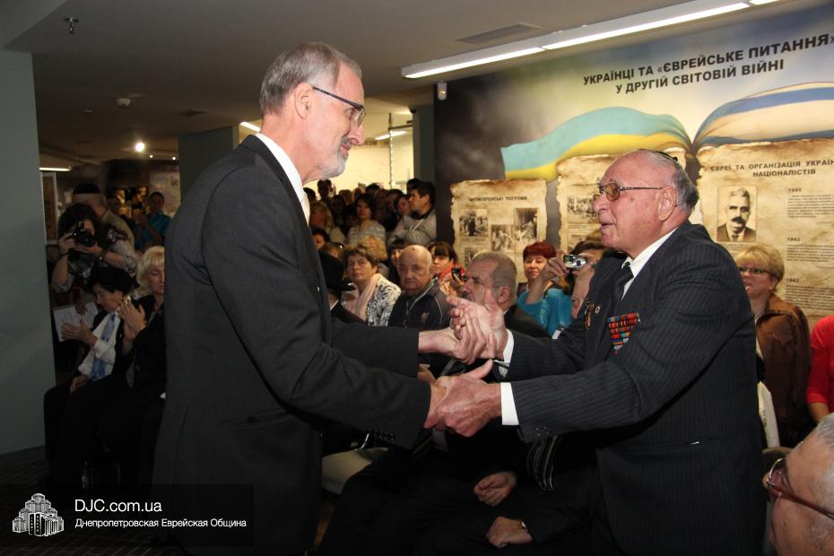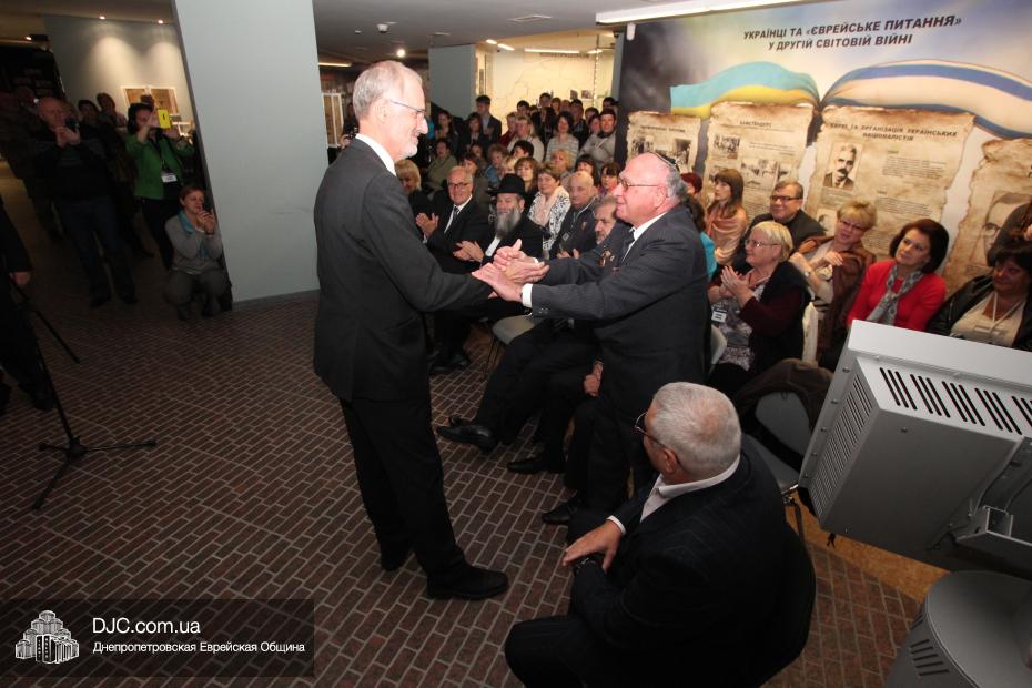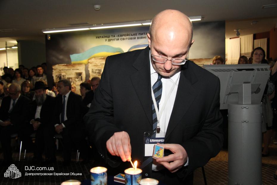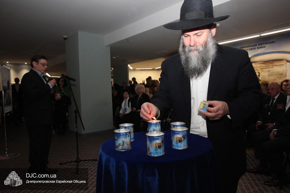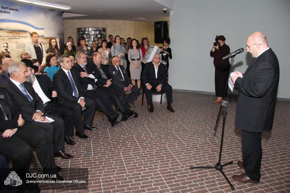 Церемония проходила во втором зале музея, около одного из центральных музейных объектов и важнейшей части экспозиции – диорамы «Бабий Яр». В мероприятии приняли участие Главный раввин Днепропетровска и региона Шмуэль Каминецкий, Генеральный консул Германии доктор Детлеф Вольтер, председатель Меджлиса крымскотатарского народа Рефат Чубаров, советник губернатора Днепропетровщины Борис Трейгерман, представители Днепропетровской облгосадминистрации, почетные гости из Армении, Грузии и Молдовы, а также общественные деятели, ученые, участники финала ХІ Международного конкурса творческих работ учеников, студентов и учителей «Уроки войн и Холокоста – уроки толерантности».