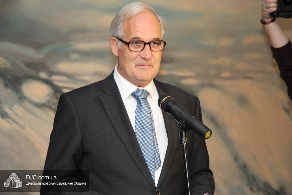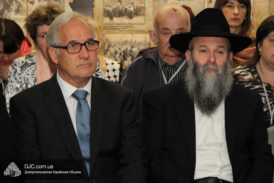 Официальная церемония началась с приветствия доктора Игоря Щупака, директора УИИХ «Ткума» и музея «Память еврейского народа и Холокост в Украине». Затем слово было предоставлено Главному раввину Днепропетровска и региона Шмуэлю Каминецкому. «У нас приближается день Искупления – Йом Кипур, когда мы раскаиваемся друг перед другом и перед Вс-вышним, – отметил раввин Каминецкий, – и искреннее раскаяние ведет к восстановлению отношений, они становятся еще глубже, чем были до этого. И то, что произошло между евреями и Германией – уникально. Взаимоотношение между еврейским и немецкими народами – это настоящая дружба, родившаяся после раскаяния и принятия».