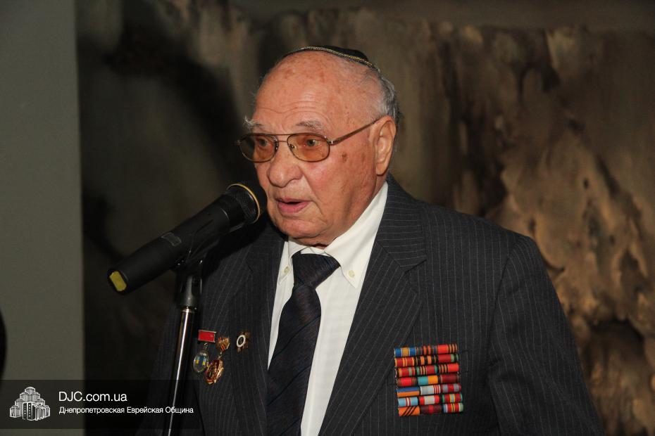 В ходе церемонии слово было предоставлено председателю Совета евреев-ветеранов Соломону Киселевичу Флаксу, который от лица многих евреев-ветеранов, сейчас живущих в Германии, поблагодарил доктора Детлефа Вольтера, как Консула, представляющего Германию, за то, что ветераны Великой Войны получили возможность жить в немецком государстве, получая там должное внимание, понимание и поддержку. Говоря о трагических событиях в Бабьем Яру, 73-годовщину которых в этом году отмечает весь мир, Соломон Киселевич сказал: «Это – незаживаемая рана еврейского народа. И я хочу, чтобы память о мирных людях, уничтоженных в Бабьем Яру, жила вечно, чтобы никогда не было черной тучи над нашими детьми и внуками».