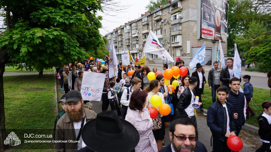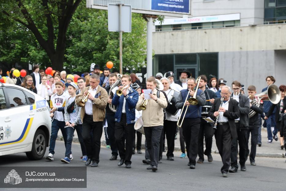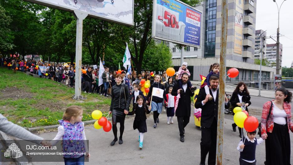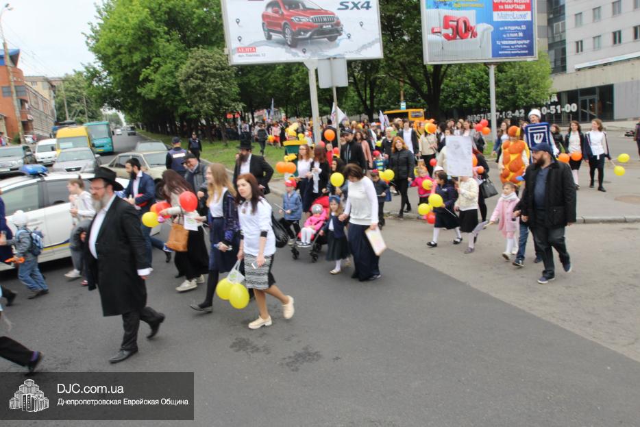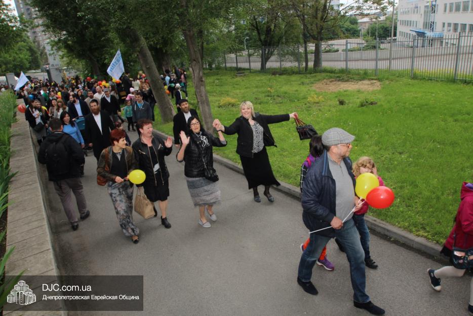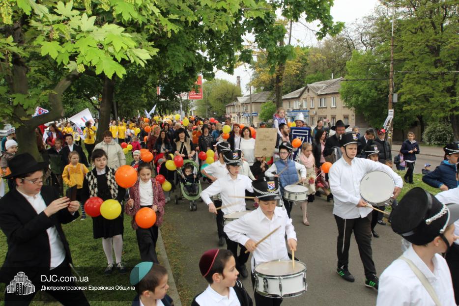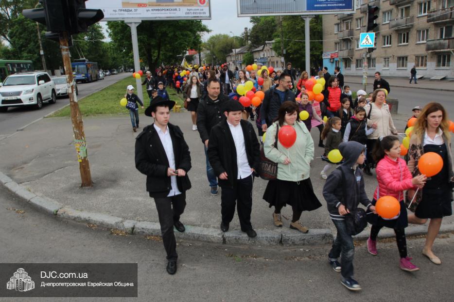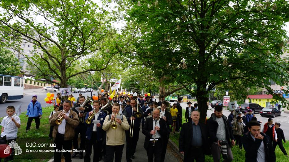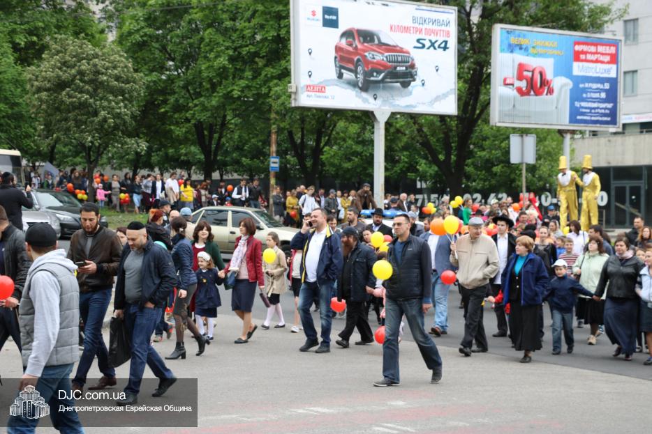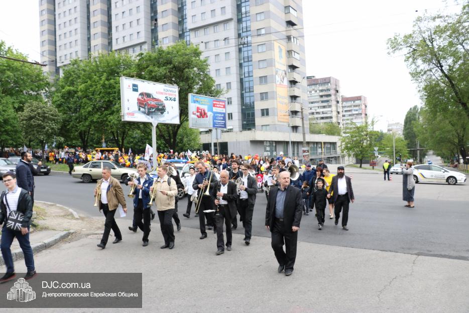 Колонна шла по проспекту под марши духового оркестра, который сменял сводный оркестр барабанщиков иешивы-ктана, колона шла по бульвару, а люди радостно махали ей из окон, поддерживали сигналами автомобилей, фотографировали на мобильные телефоны, как радостно проходят евреи Днепра центральными проспектами города, дабы продемонстрировать свою преданность заповеди «Агават Исроэль», единству и сплоченности своей общины.