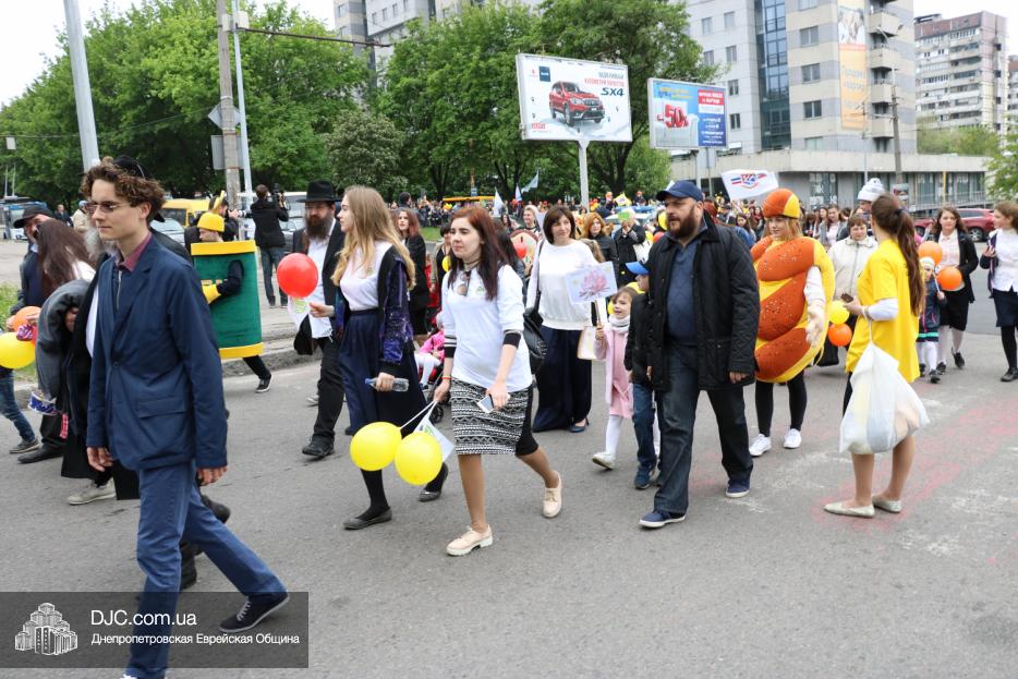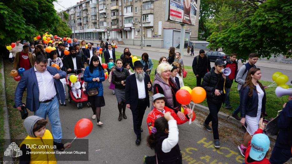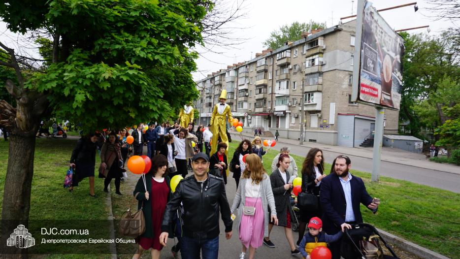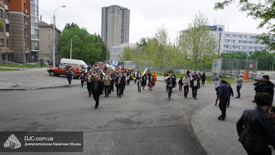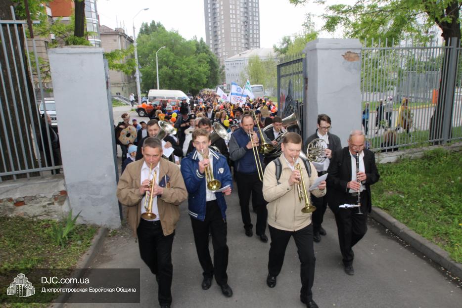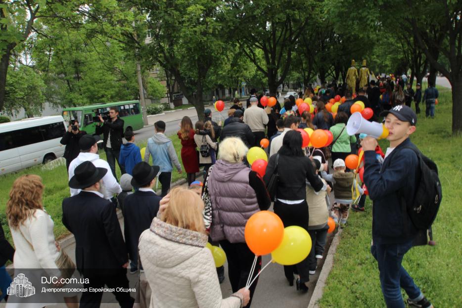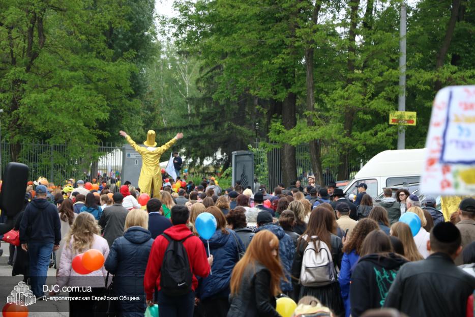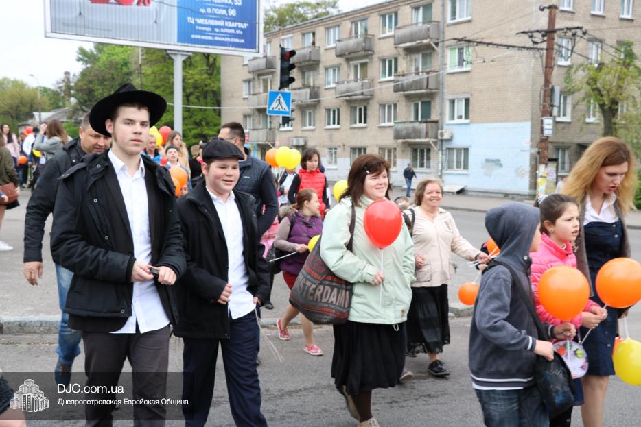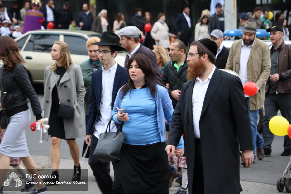 Колонна шла по проспекту под марши духового оркестра, который сменял сводный оркестр барабанщиков иешивы-ктана, колона шла по бульвару, а люди радостно махали ей из окон, поддерживали сигналами автомобилей, фотографировали на мобильные телефоны, как радостно проходят евреи Днепра центральными проспектами города, дабы продемонстрировать свою преданность заповеди «Агават Исроэль», единству и сплоченности своей общины.