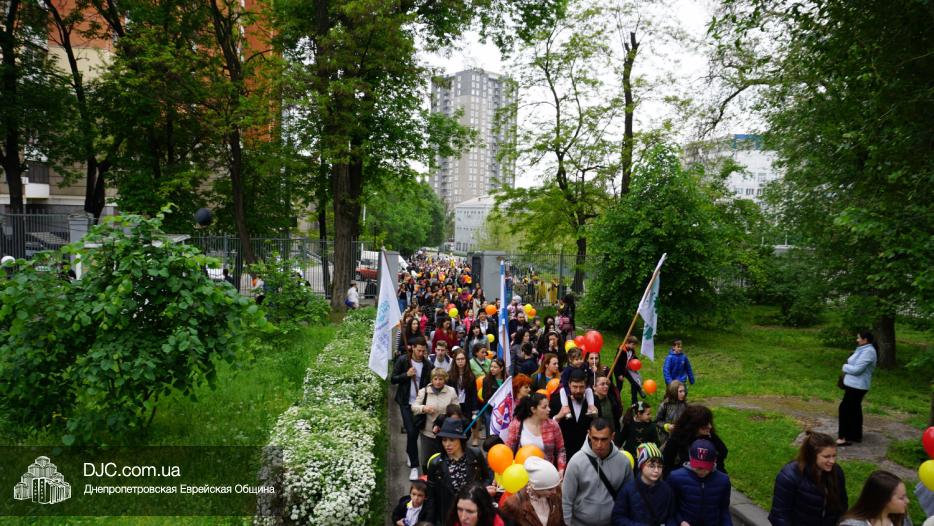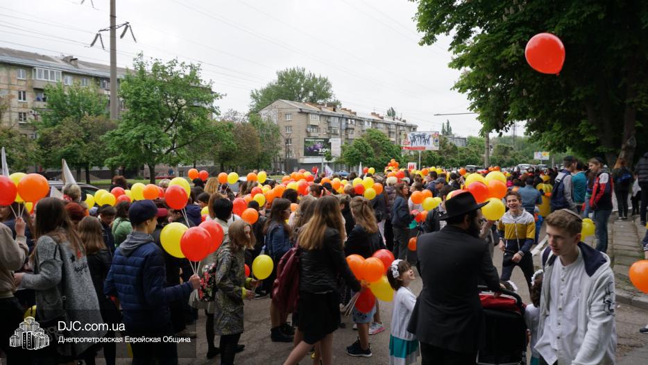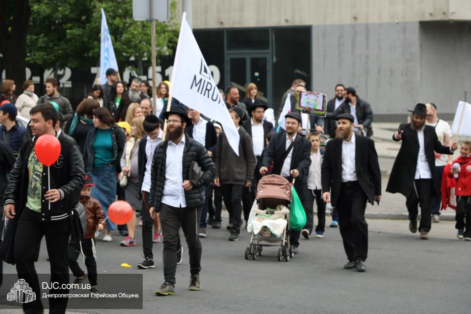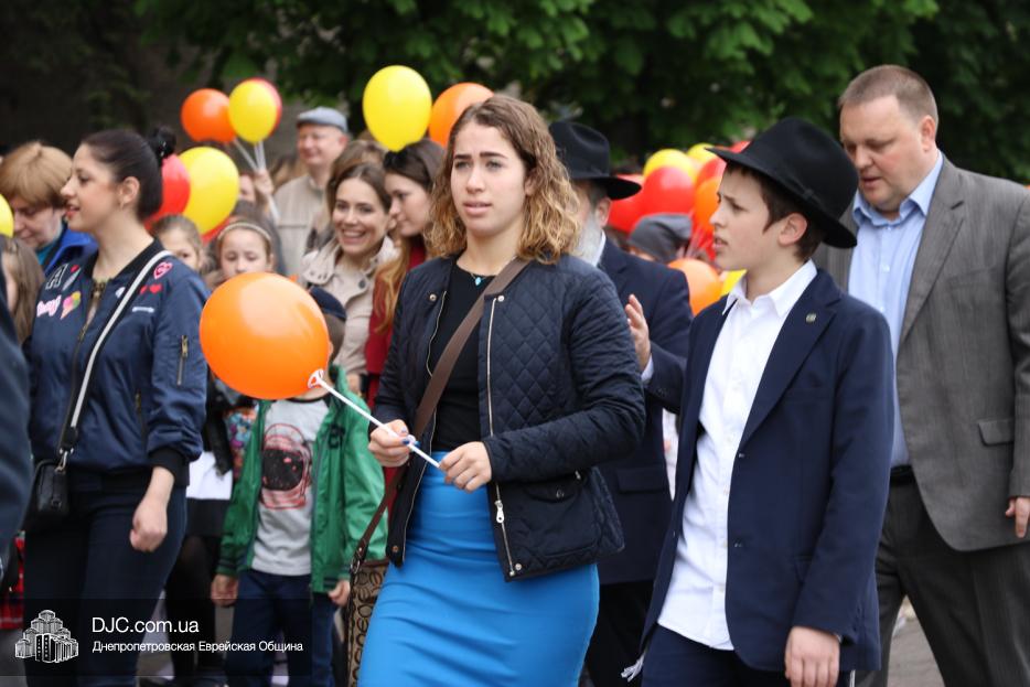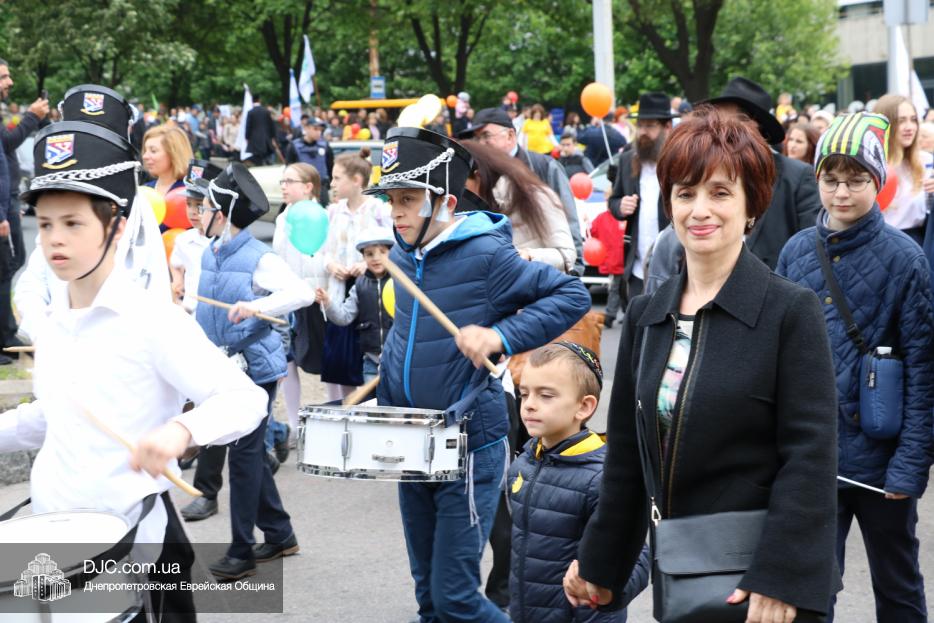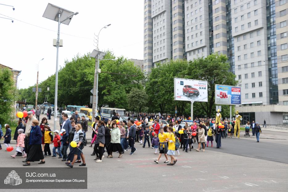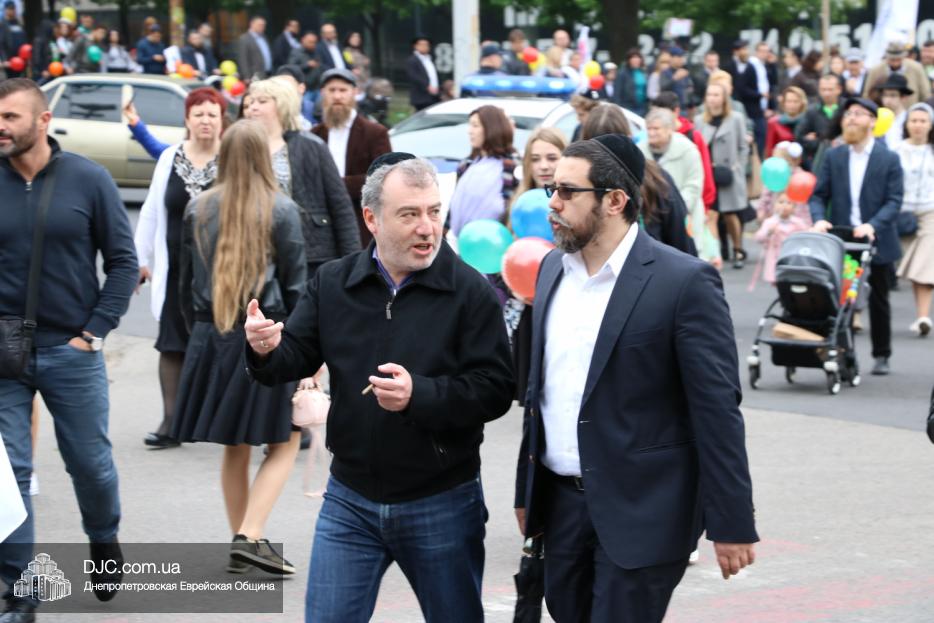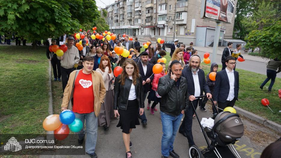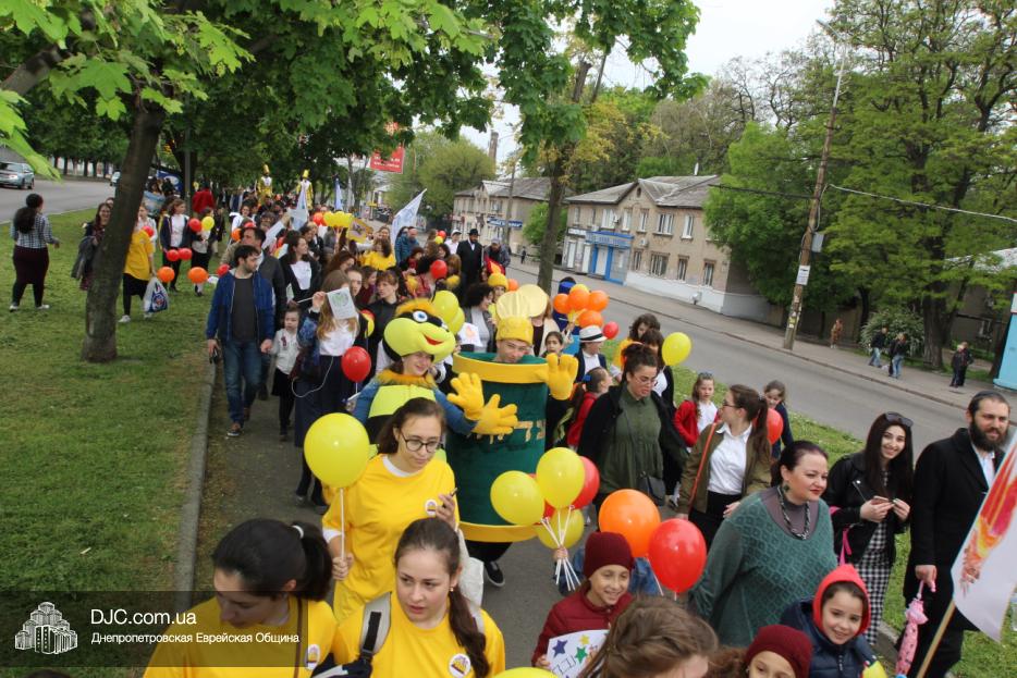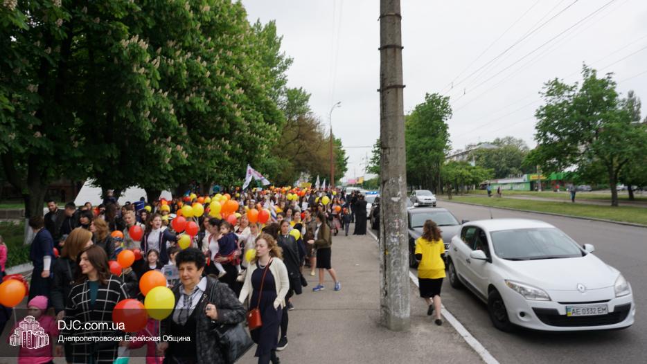 Колонна шла по проспекту под марши духового оркестра, который сменял сводный оркестр барабанщиков иешивы-ктана, колона шла по бульвару, а люди радостно махали ей из окон, поддерживали сигналами автомобилей, фотографировали на мобильные телефоны, как радостно проходят евреи Днепра центральными проспектами города, дабы продемонстрировать свою преданность заповеди «Агават Исроэль», единству и сплоченности своей общины.