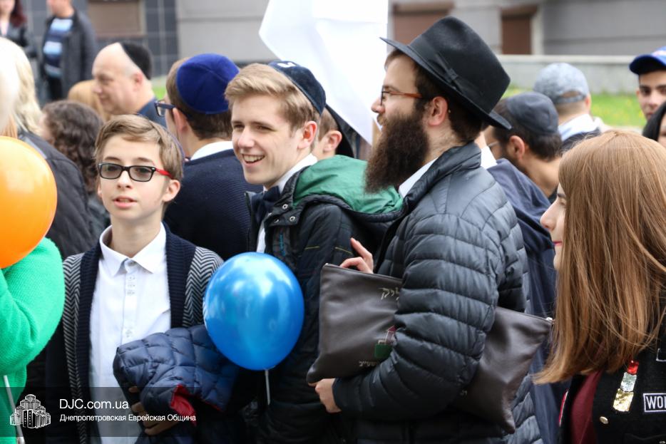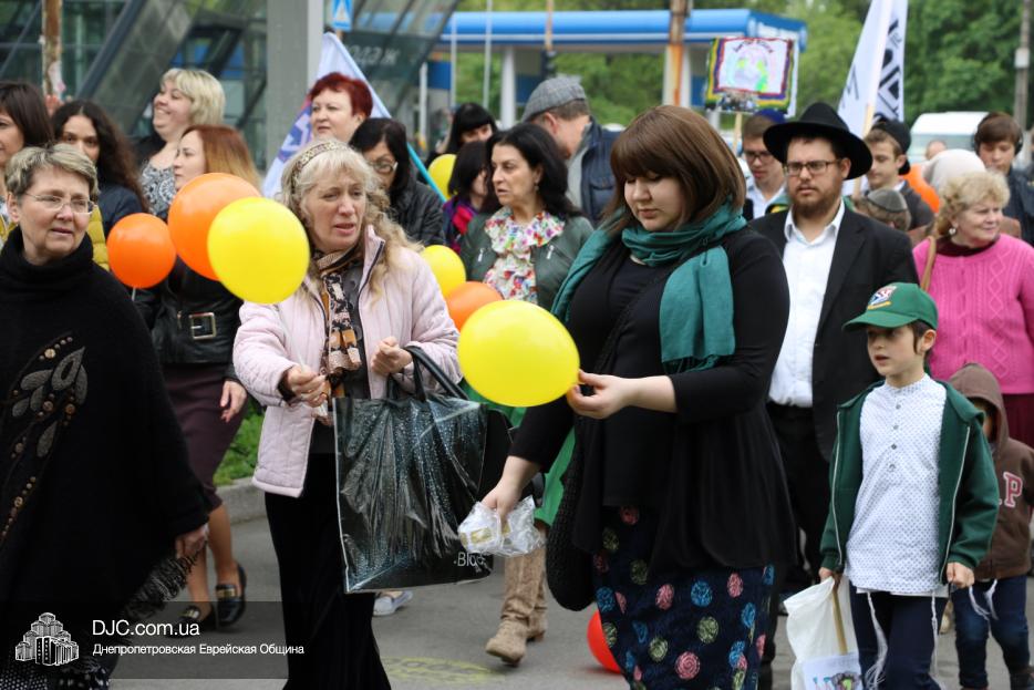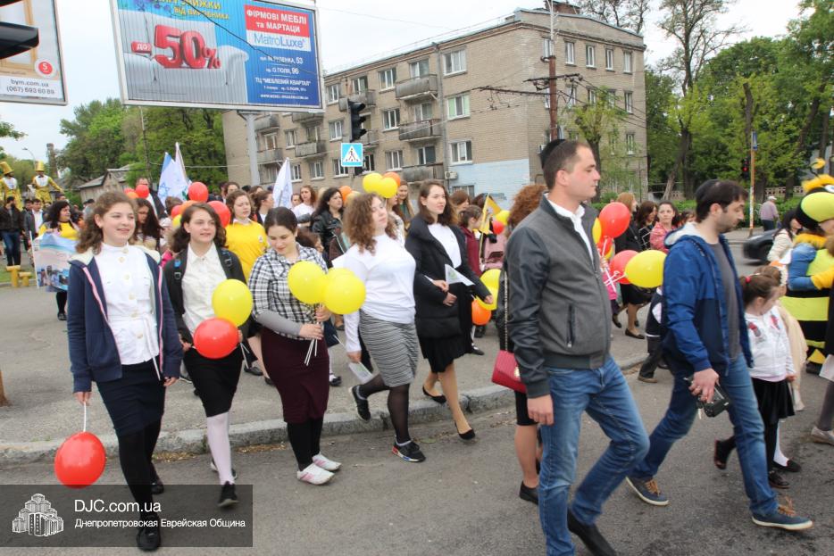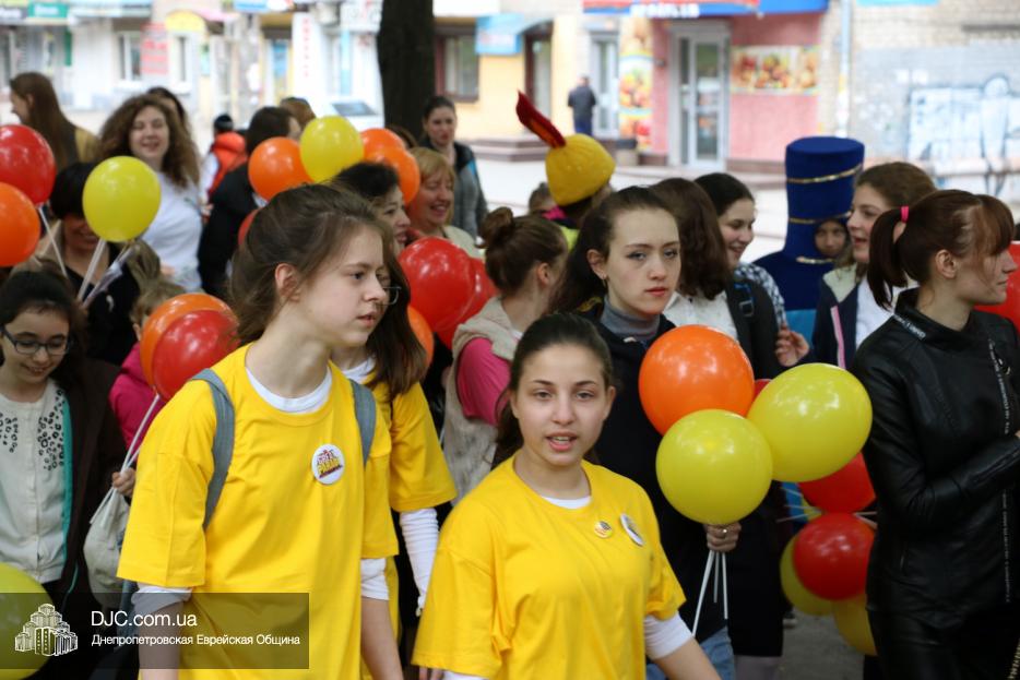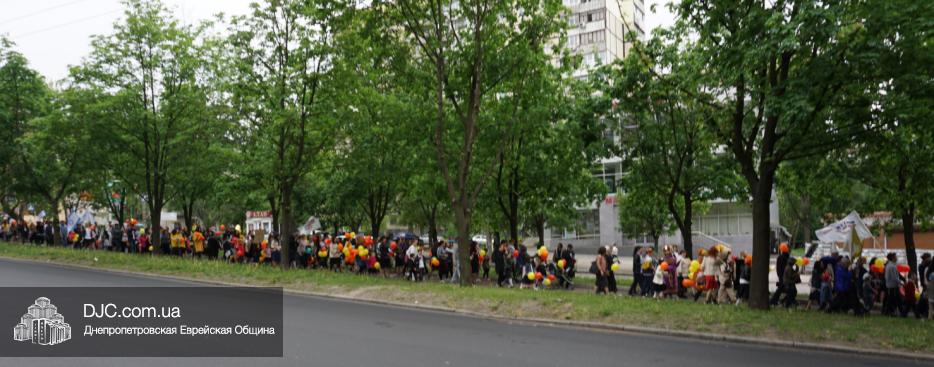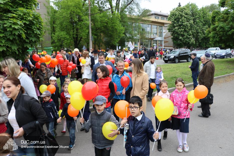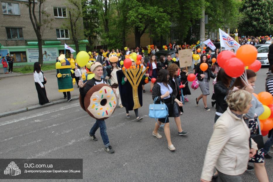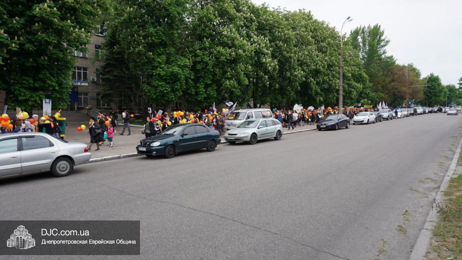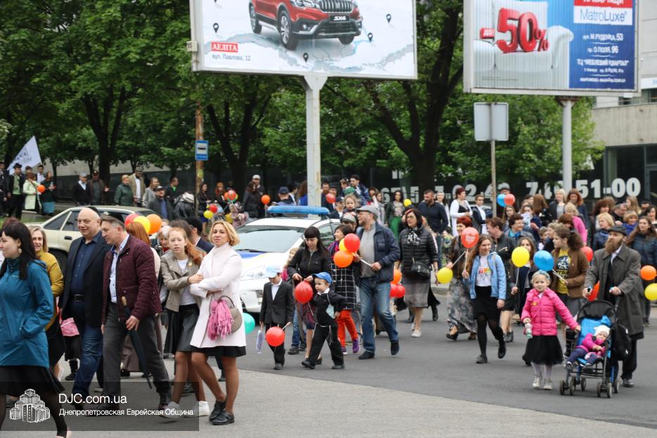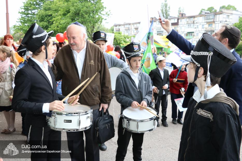 Колонна шла по проспекту под марши духового оркестра, который сменял сводный оркестр барабанщиков иешивы-ктана, колона шла по бульвару, а люди радостно махали ей из окон, поддерживали сигналами автомобилей, фотографировали на мобильные телефоны, как радостно проходят евреи Днепра центральными проспектами города, дабы продемонстрировать свою преданность заповеди «Агават Исроэль», единству и сплоченности своей общины.