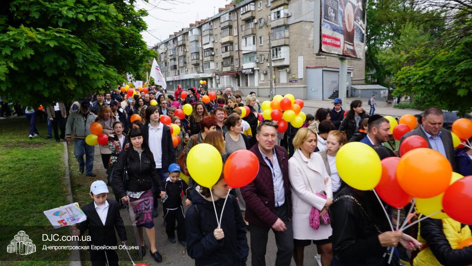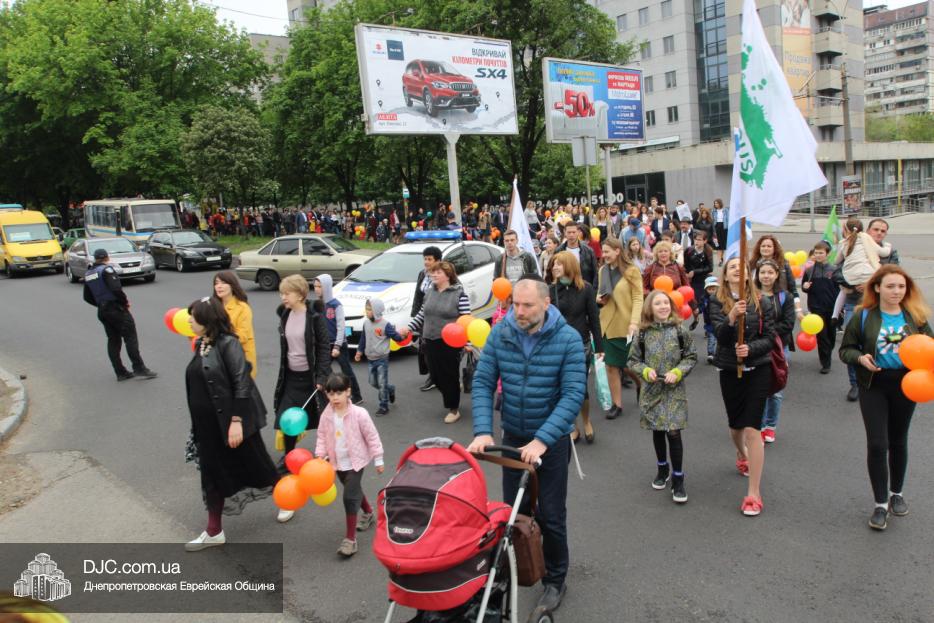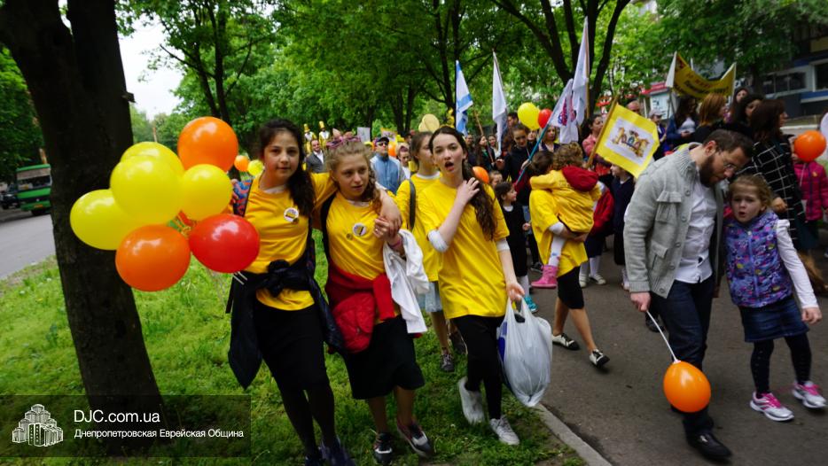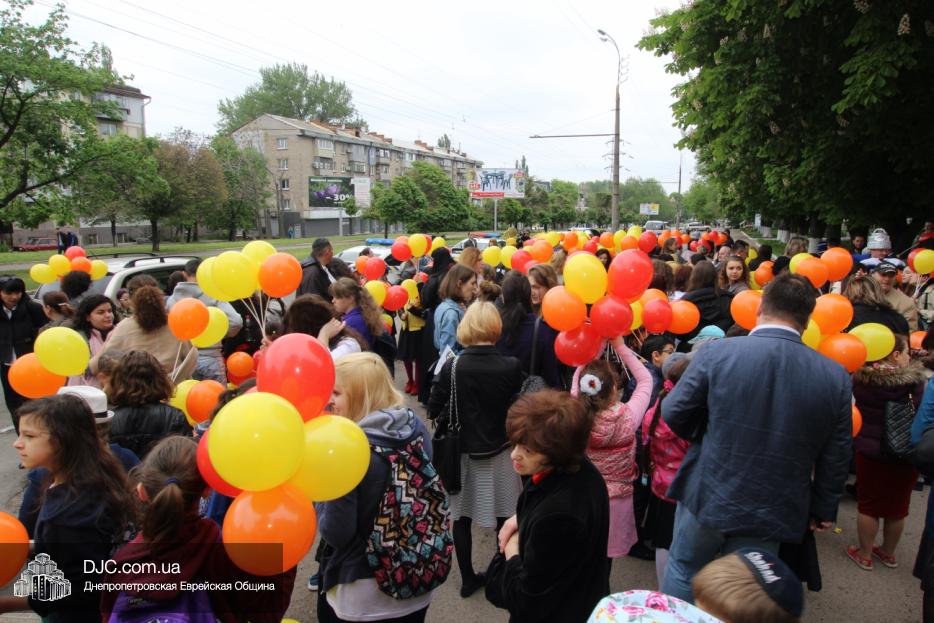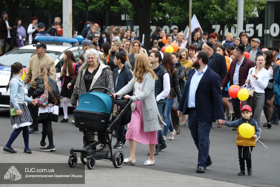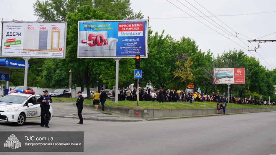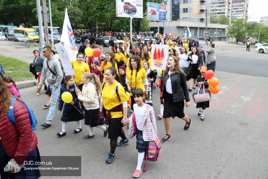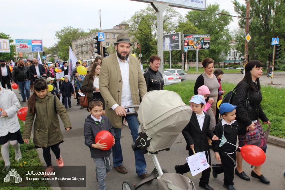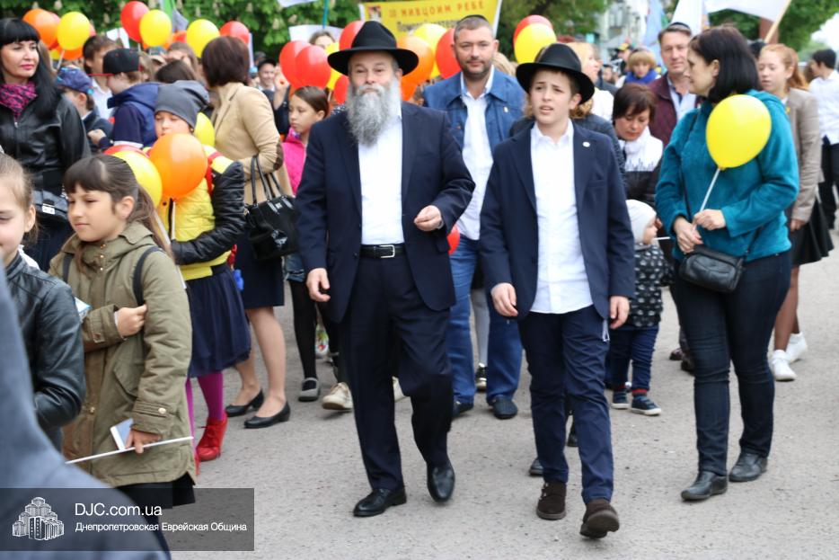 Колонна шла по проспекту под марши духового оркестра, который сменял сводный оркестр барабанщиков иешивы-ктана, колона шла по бульвару, а люди радостно махали ей из окон, поддерживали сигналами автомобилей, фотографировали на мобильные телефоны, как радостно проходят евреи Днепра центральными проспектами города, дабы продемонстрировать свою преданность заповеди «Агават Исроэль», единству и сплоченности своей общины.