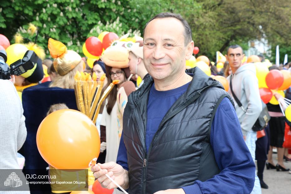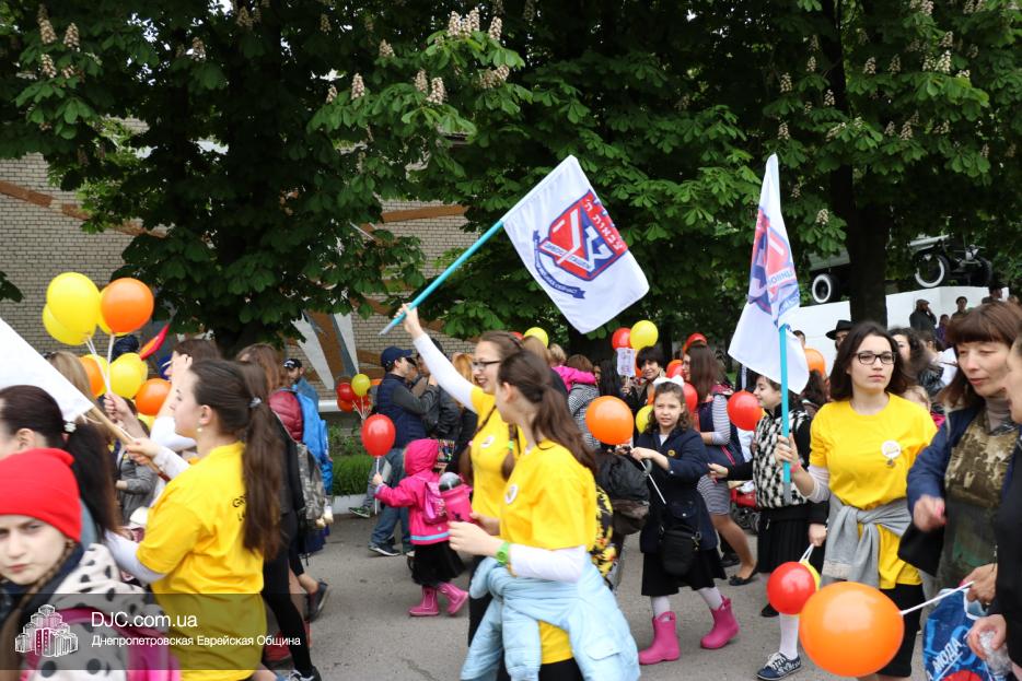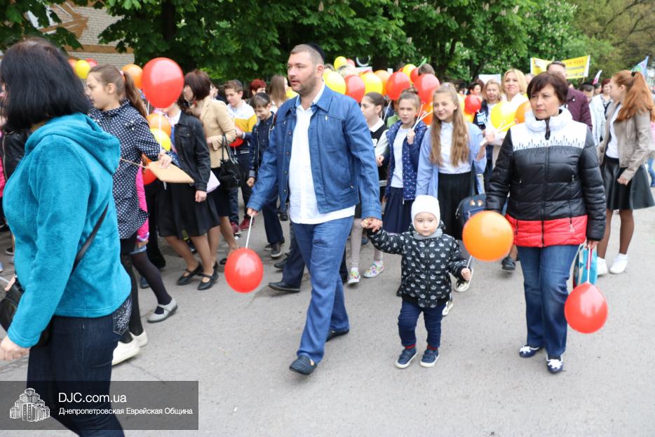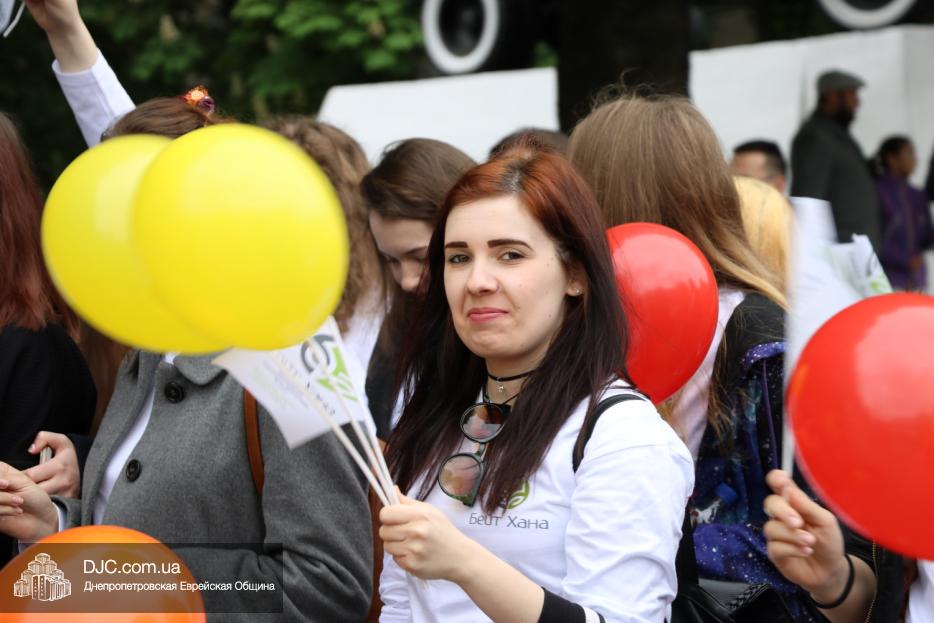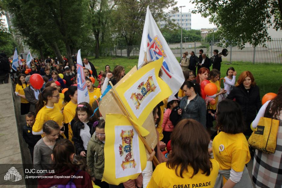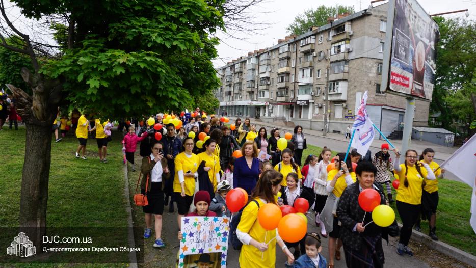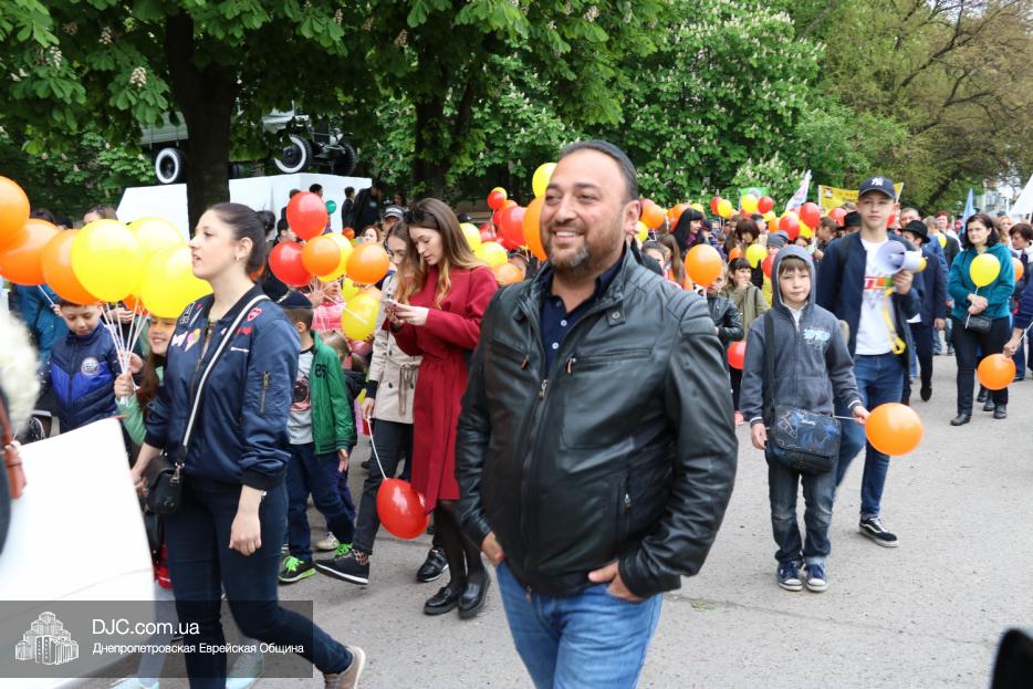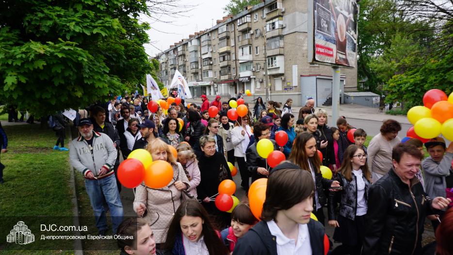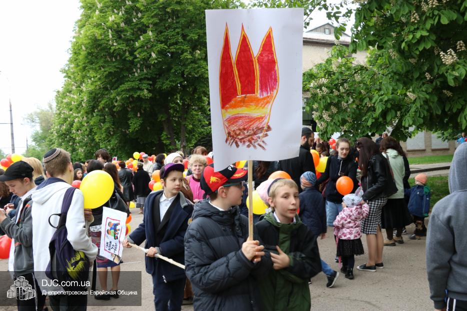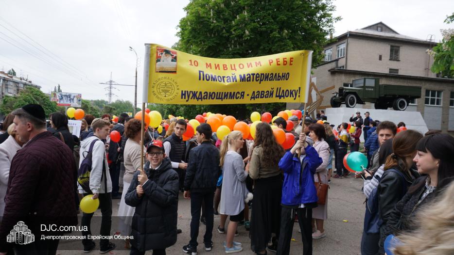 Колонна шла по проспекту под марши духового оркестра, который сменял сводный оркестр барабанщиков иешивы-ктана, колона шла по бульвару, а люди радостно махали ей из окон, поддерживали сигналами автомобилей, фотографировали на мобильные телефоны, как радостно проходят евреи Днепра центральными проспектами города, дабы продемонстрировать свою преданность заповеди «Агават Исроэль», единству и сплоченности своей общины.