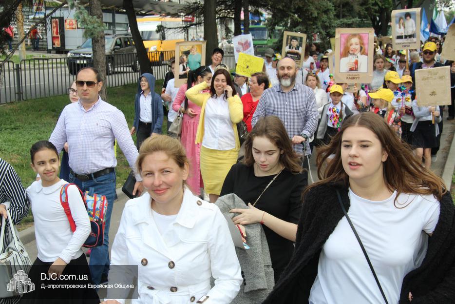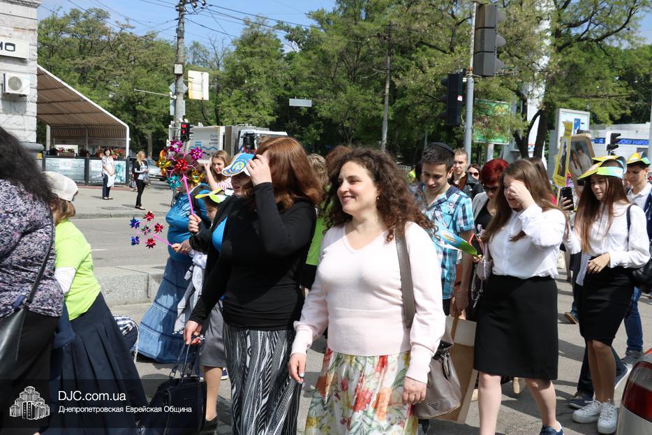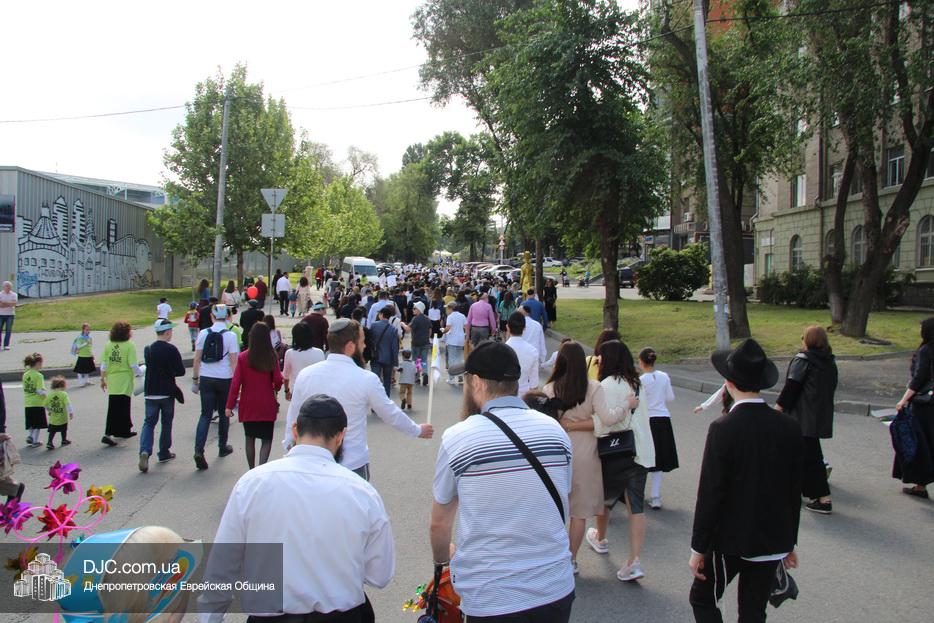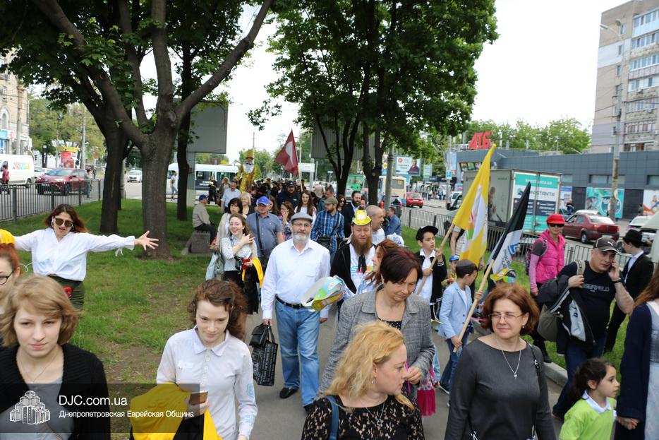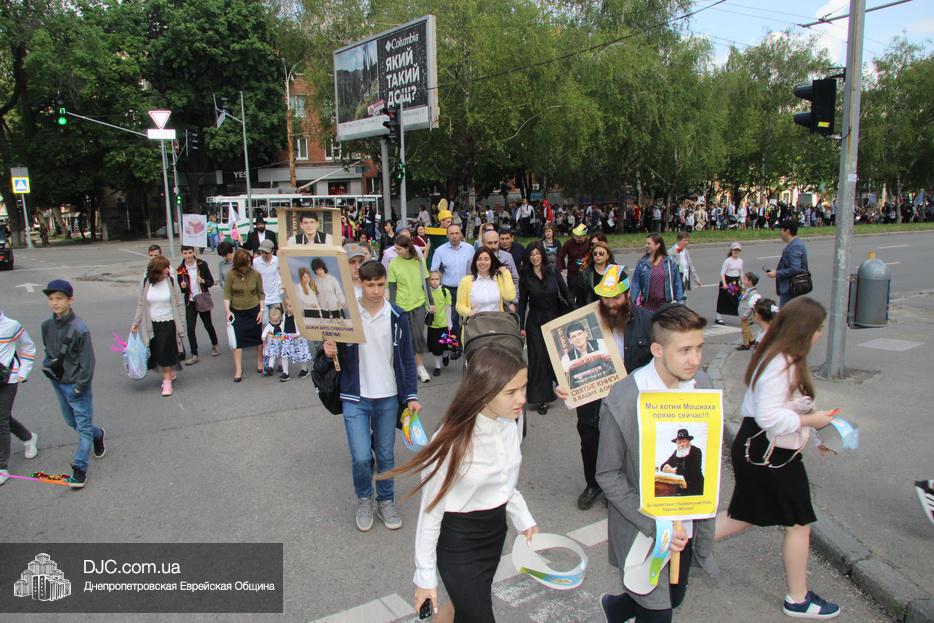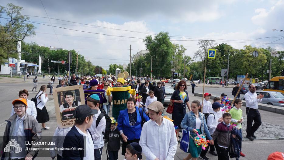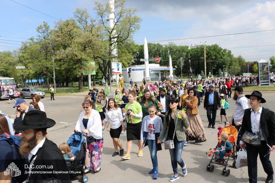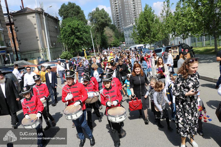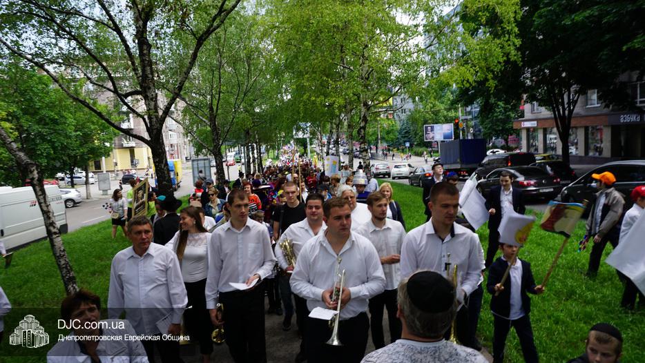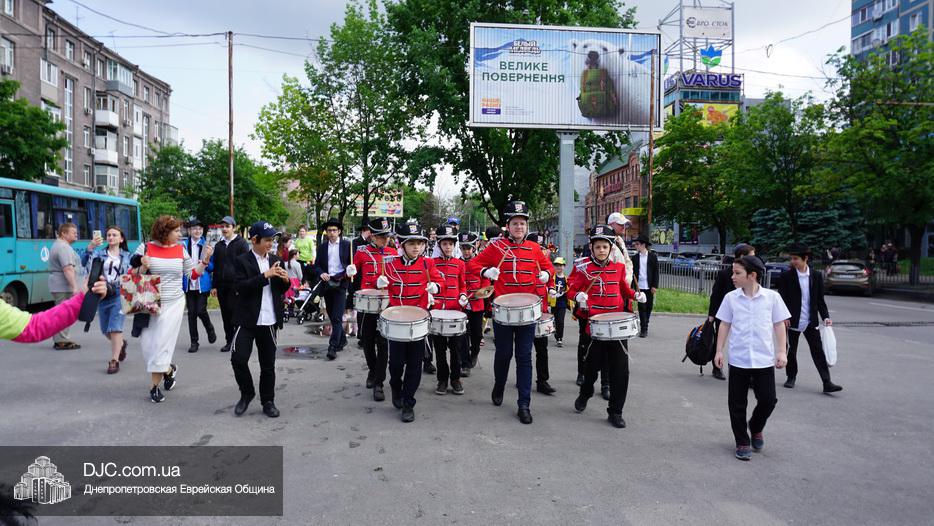 Колонна шла по проспекту под марши духового оркестра, который сменял сводный оркестр барабанщиков иешивы-ктана, колона шла по бульвару, а люди радостно махали ей из окон, поддерживали сигналами автомобилей, фотографировали на мобильные телефоны, как радостно проходят евреи Днепра центральными проспектами города, дабы продемонстрировать свою преданность заповеди «Агават Исроэль», единству и сплоченности своей общины.