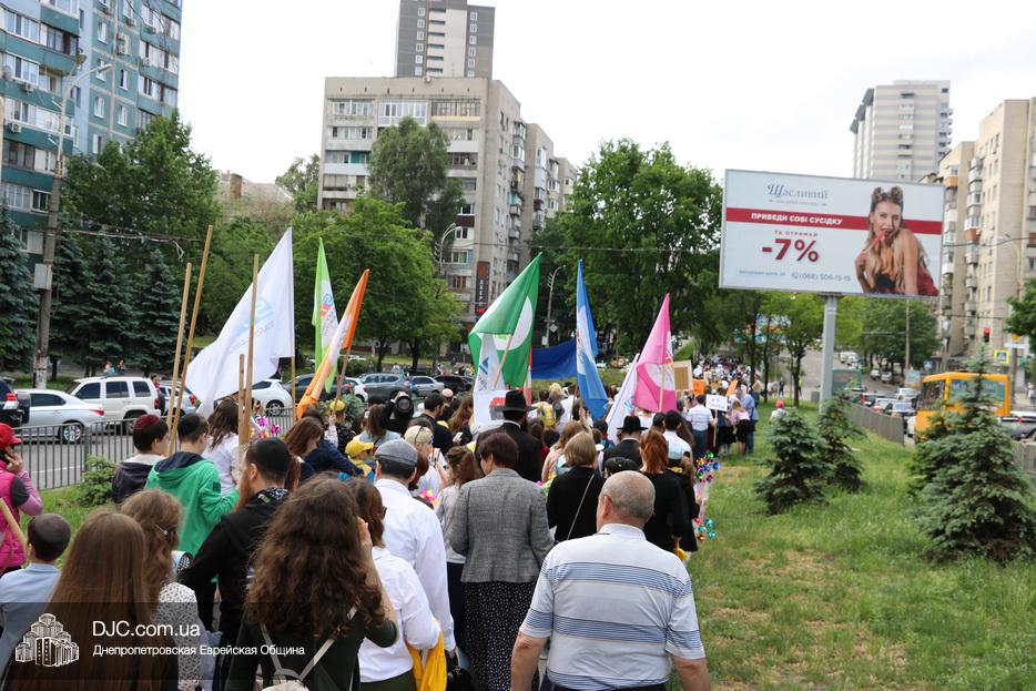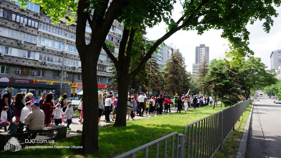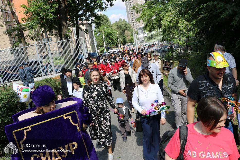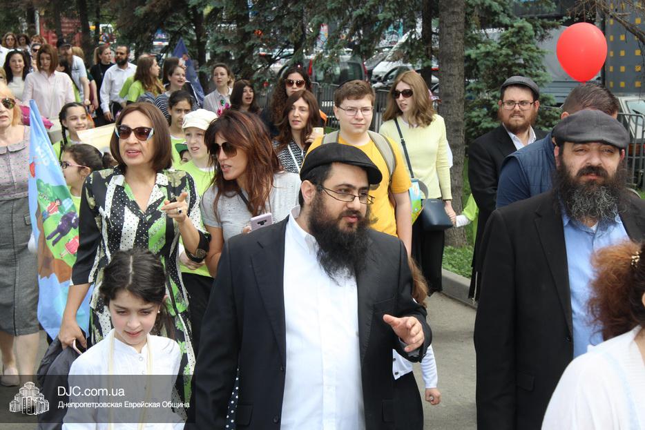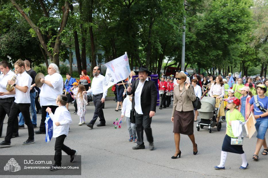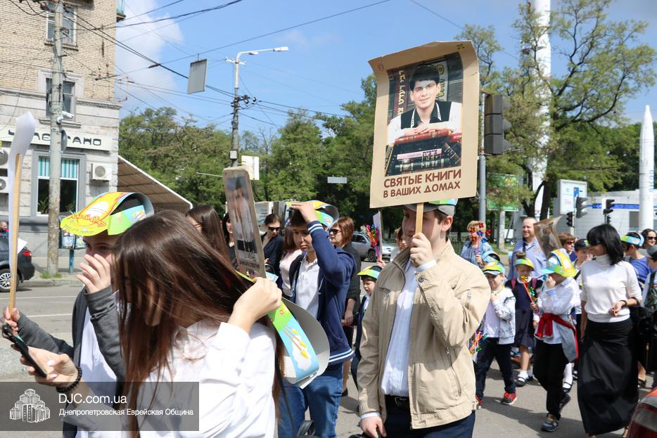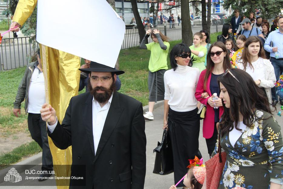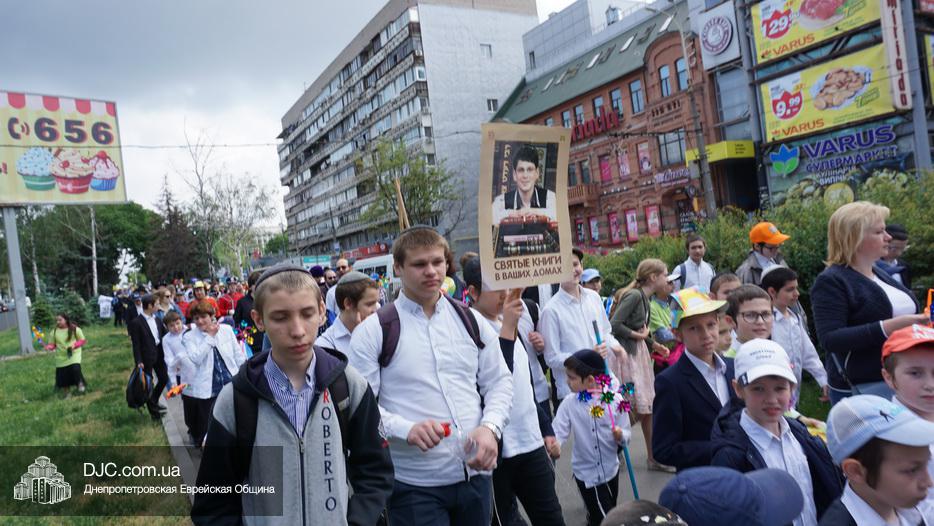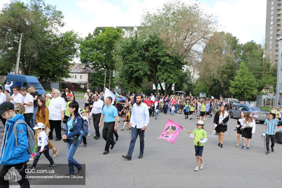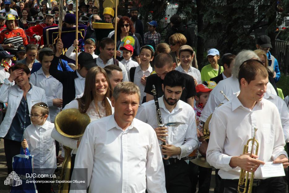 Колонна шла по проспекту под марши духового оркестра, который сменял сводный оркестр барабанщиков иешивы-ктана, колона шла по бульвару, а люди радостно махали ей из окон, поддерживали сигналами автомобилей, фотографировали на мобильные телефоны, как радостно проходят евреи Днепра центральными проспектами города, дабы продемонстрировать свою преданность заповеди «Агават Исроэль», единству и сплоченности своей общины.