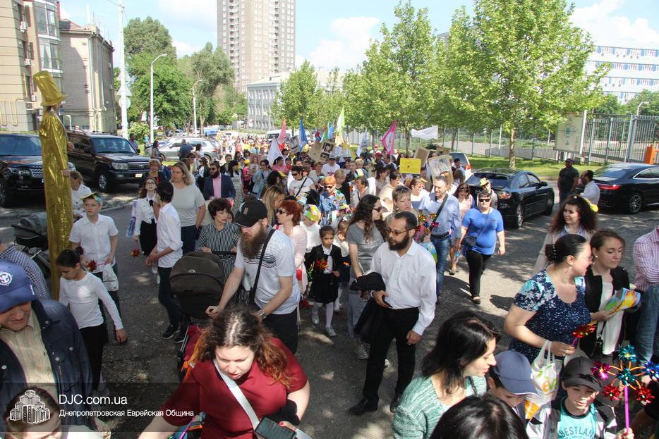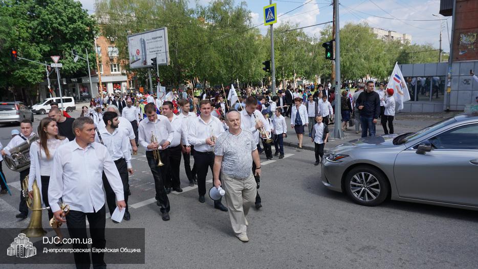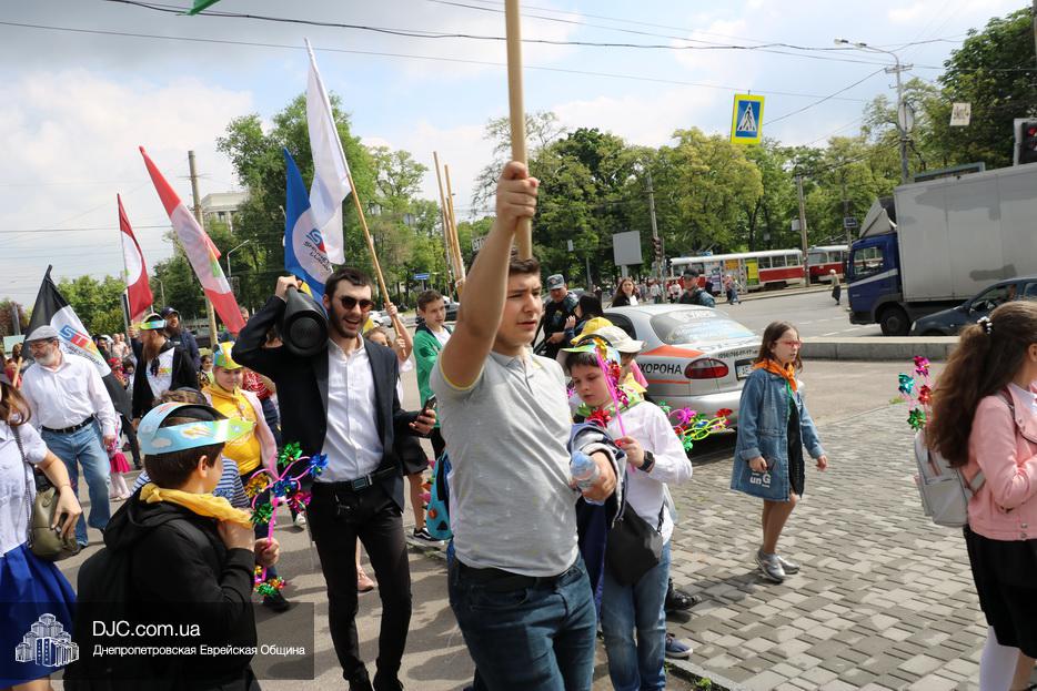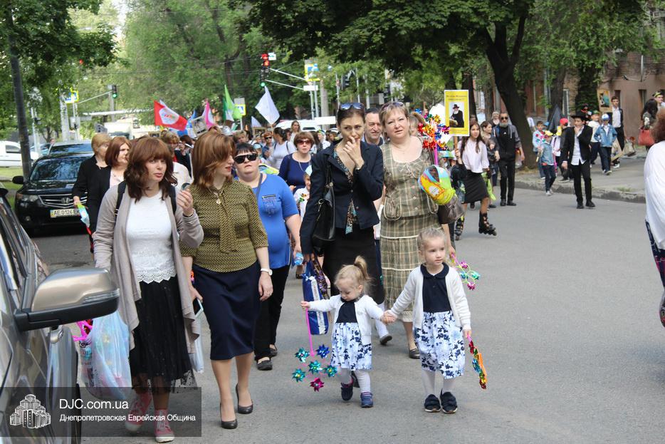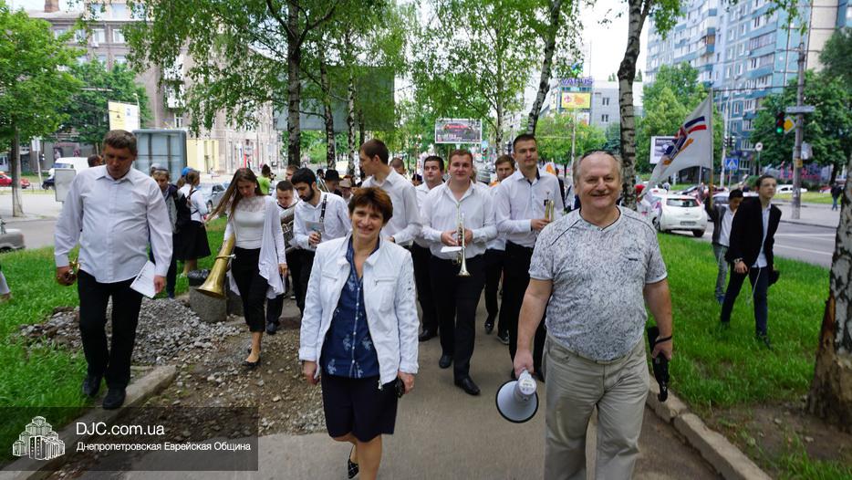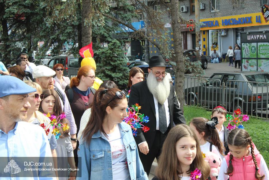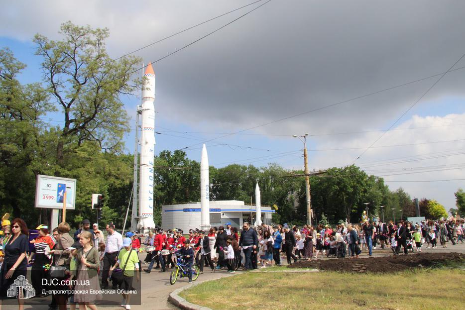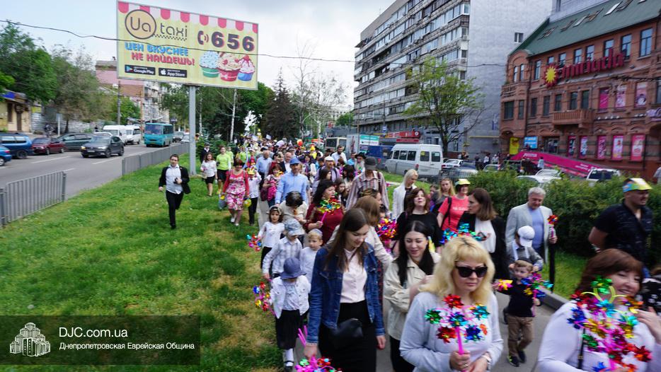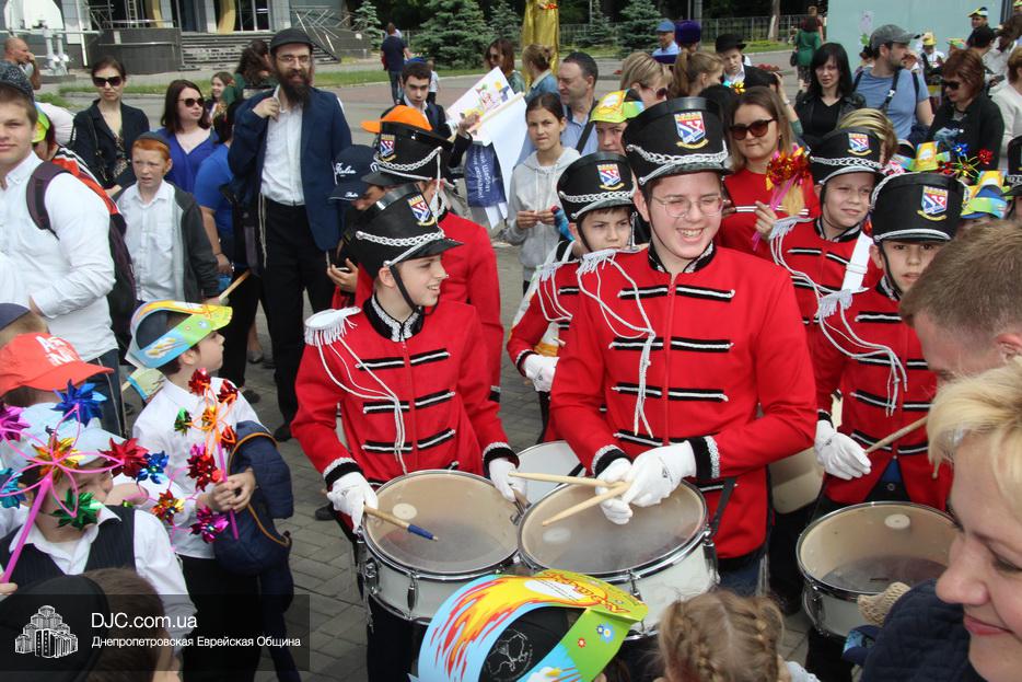 Колонна шла по проспекту под марши духового оркестра, который сменял сводный оркестр барабанщиков иешивы-ктана, колона шла по бульвару, а люди радостно махали ей из окон, поддерживали сигналами автомобилей, фотографировали на мобильные телефоны, как радостно проходят евреи Днепра центральными проспектами города, дабы продемонстрировать свою преданность заповеди «Агават Исроэль», единству и сплоченности своей общины.