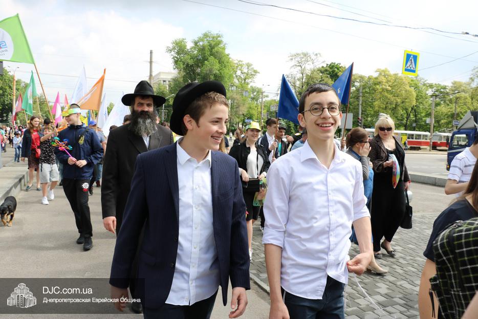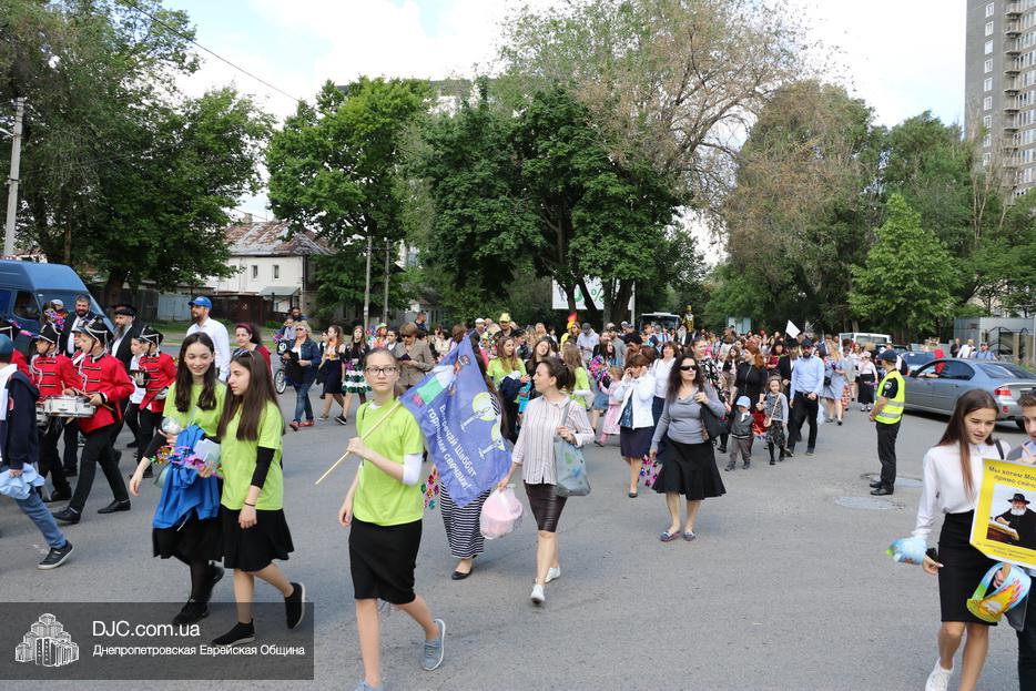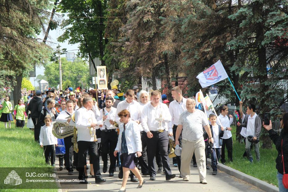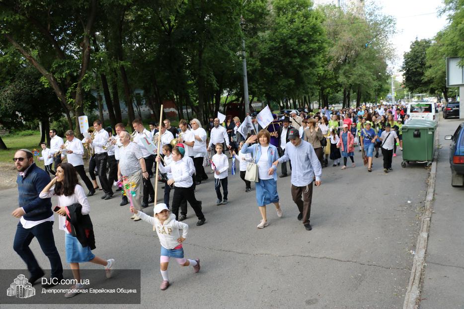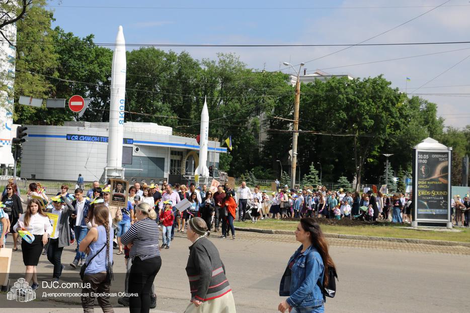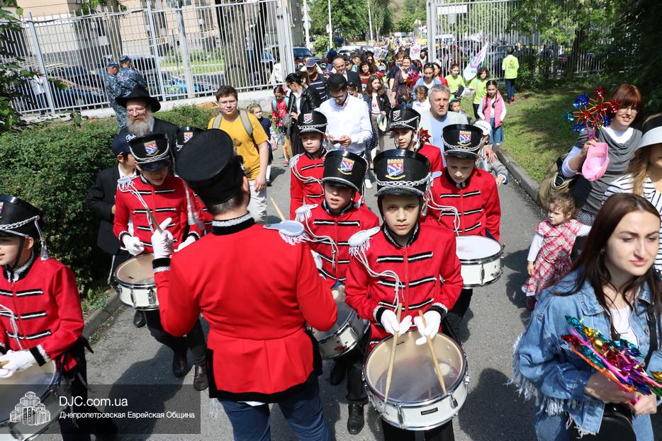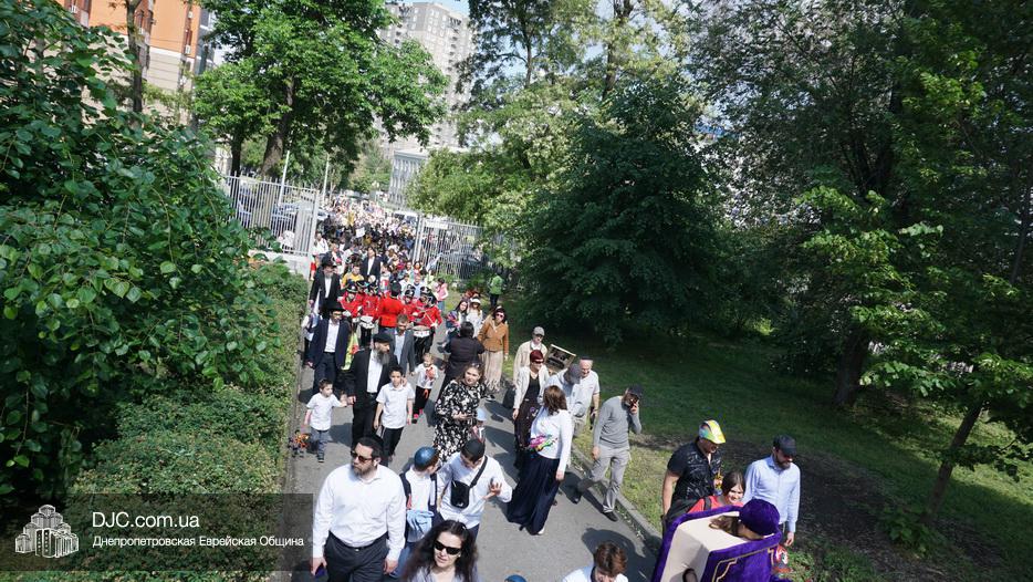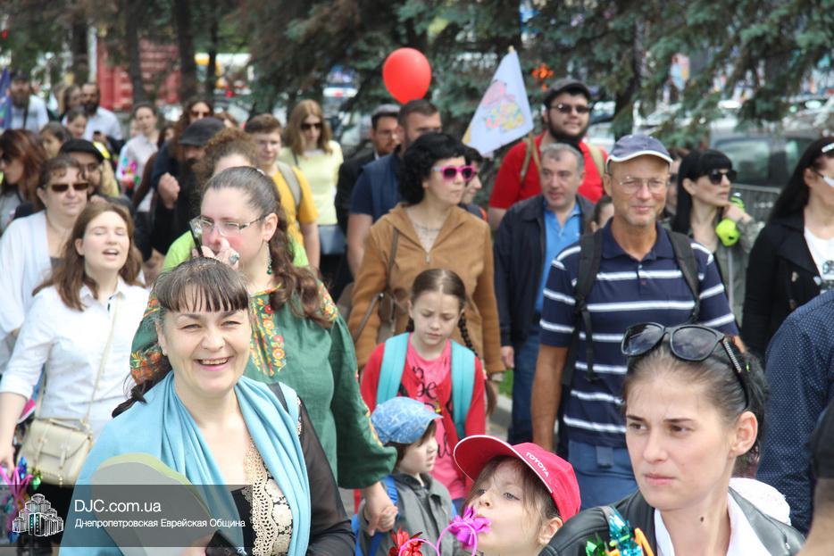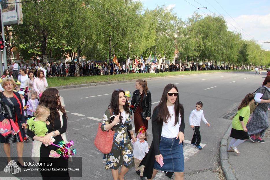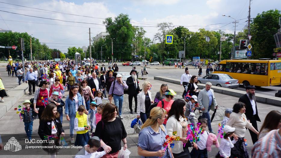 Колонна шла по проспекту под марши духового оркестра, который сменял сводный оркестр барабанщиков иешивы-ктана, колона шла по бульвару, а люди радостно махали ей из окон, поддерживали сигналами автомобилей, фотографировали на мобильные телефоны, как радостно проходят евреи Днепра центральными проспектами города, дабы продемонстрировать свою преданность заповеди «Агават Исроэль», единству и сплоченности своей общины.