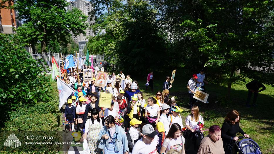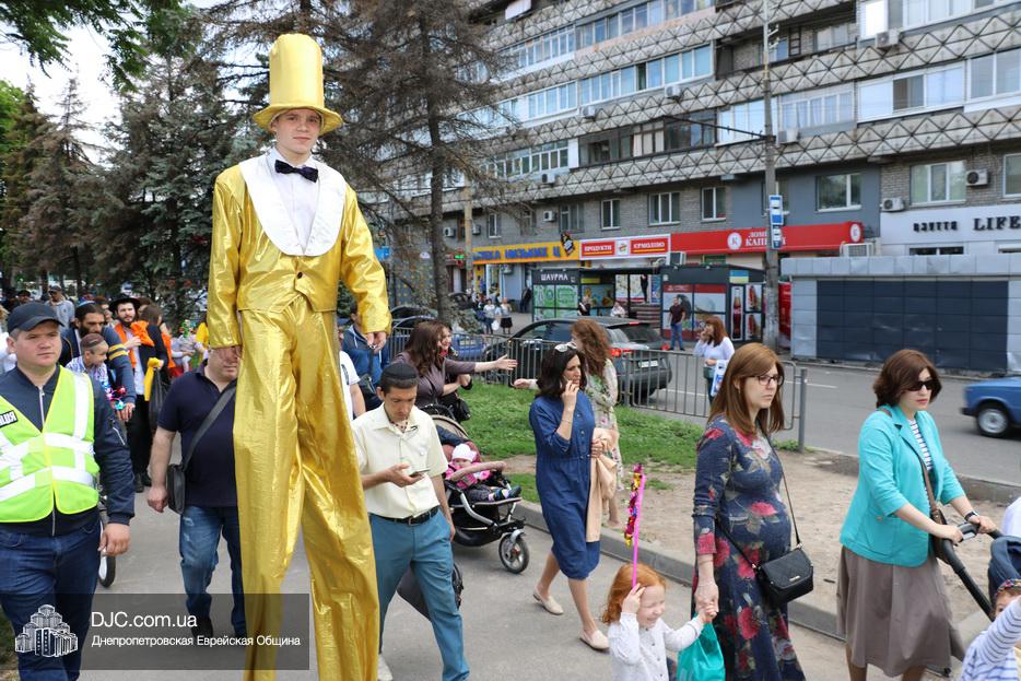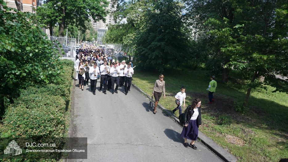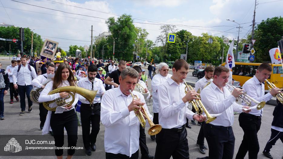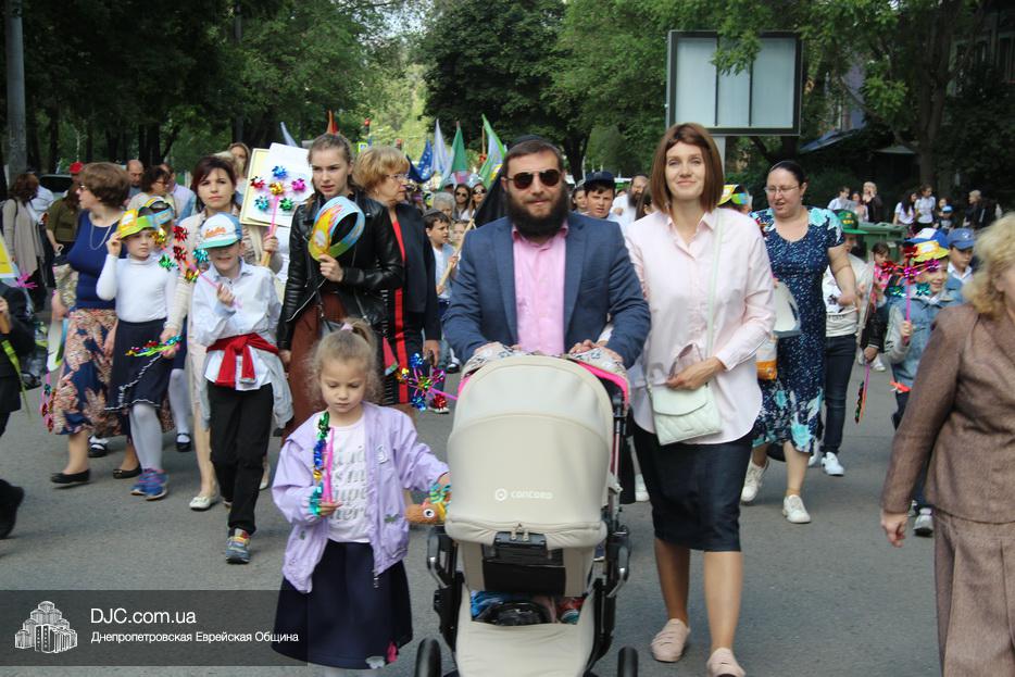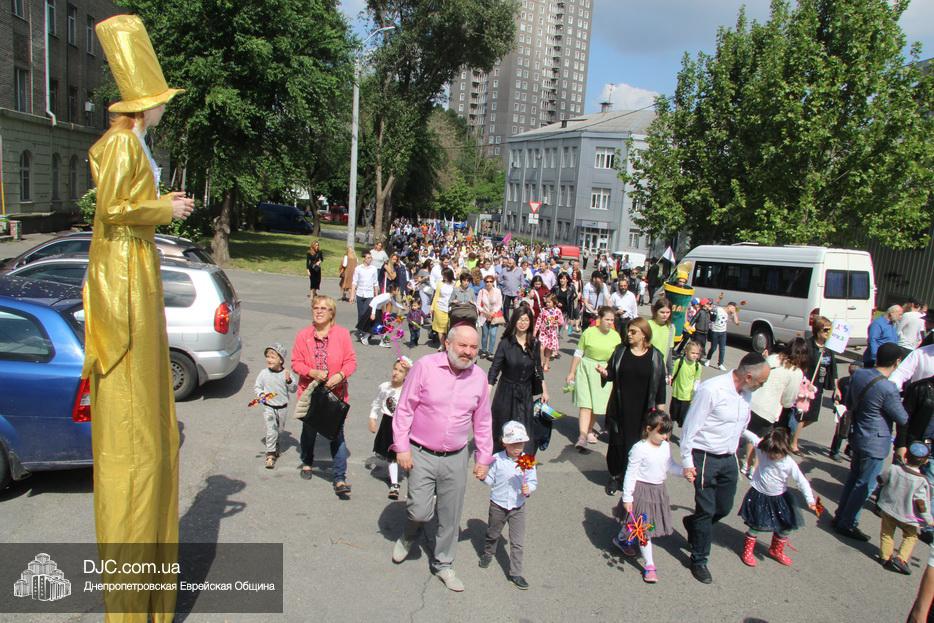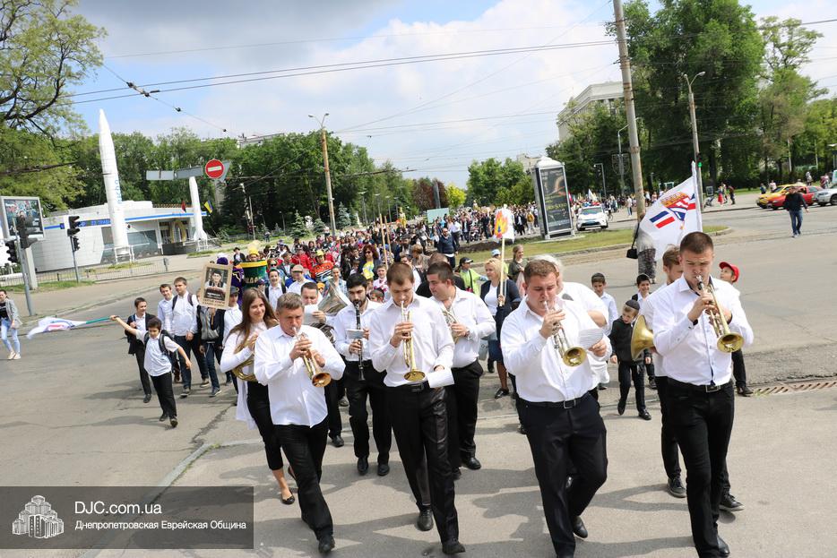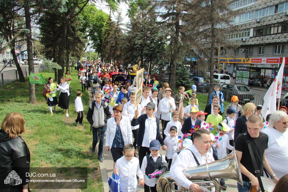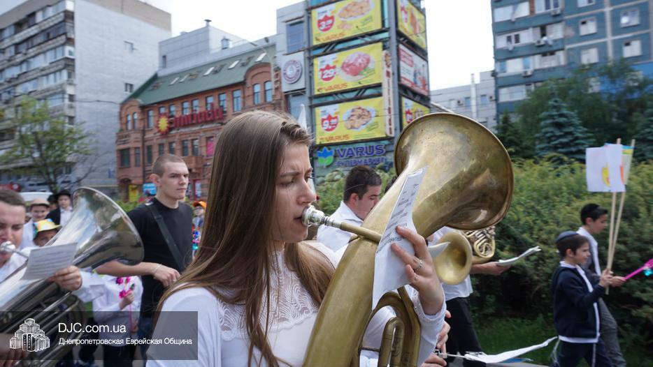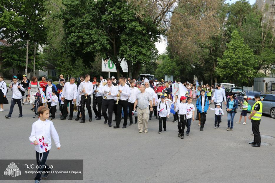 Колонна шла по проспекту под марши духового оркестра, который сменял сводный оркестр барабанщиков иешивы-ктана, колона шла по бульвару, а люди радостно махали ей из окон, поддерживали сигналами автомобилей, фотографировали на мобильные телефоны, как радостно проходят евреи Днепра центральными проспектами города, дабы продемонстрировать свою преданность заповеди «Агават Исроэль», единству и сплоченности своей общины.