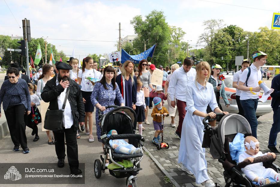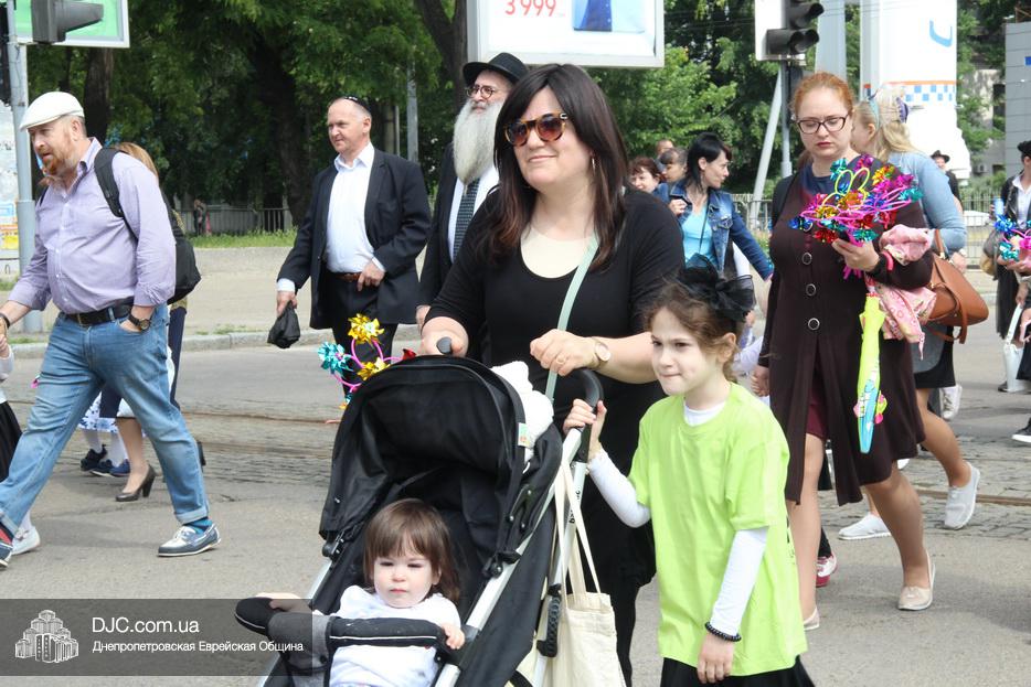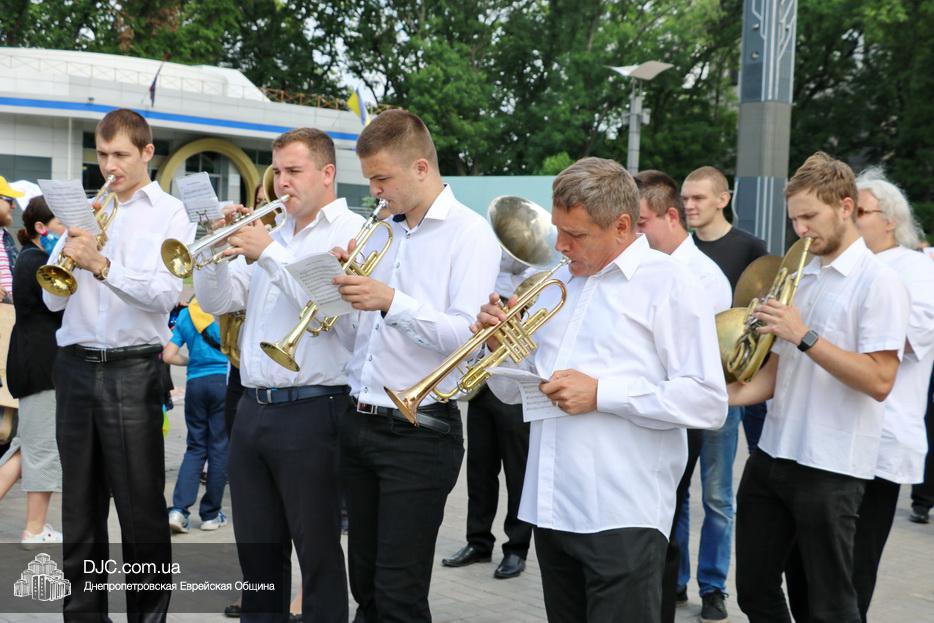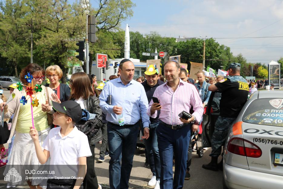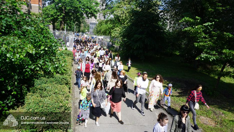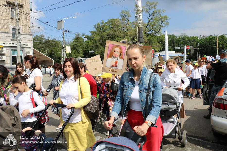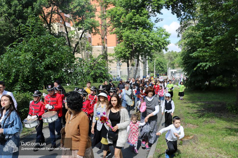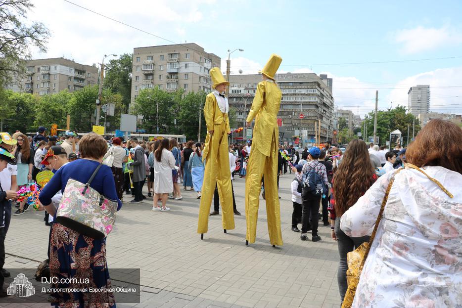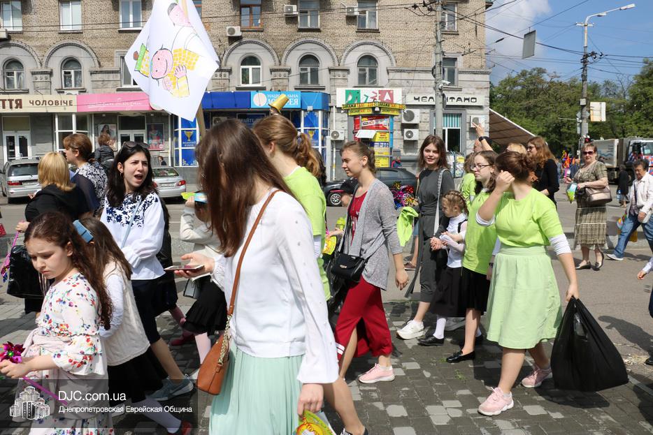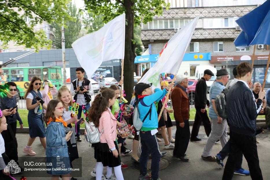 Колонна шла по проспекту под марши духового оркестра, который сменял сводный оркестр барабанщиков иешивы-ктана, колона шла по бульвару, а люди радостно махали ей из окон, поддерживали сигналами автомобилей, фотографировали на мобильные телефоны, как радостно проходят евреи Днепра центральными проспектами города, дабы продемонстрировать свою преданность заповеди «Агават Исроэль», единству и сплоченности своей общины.