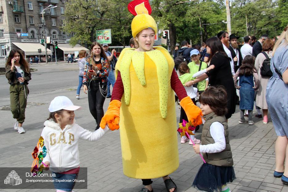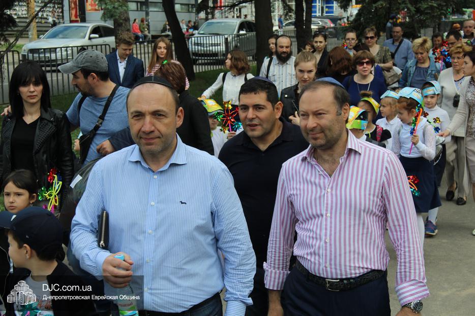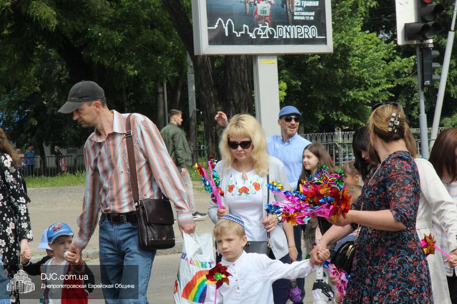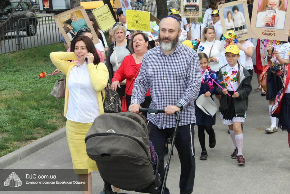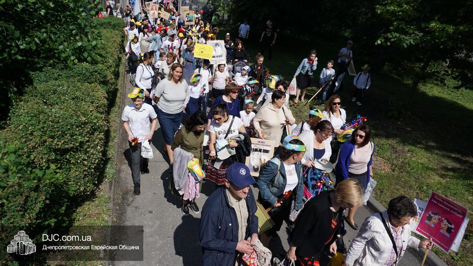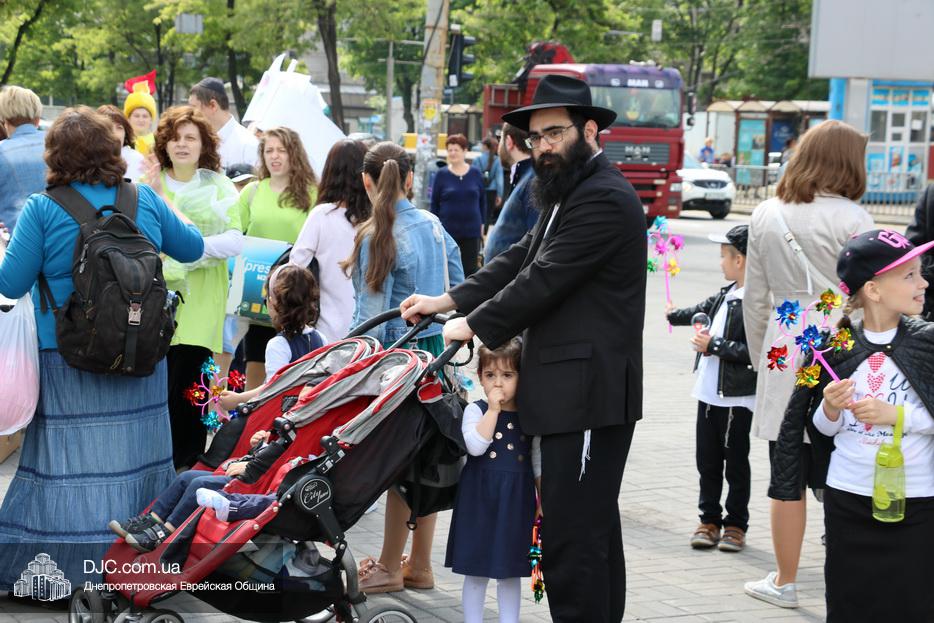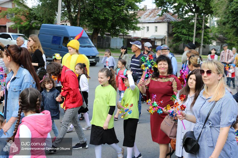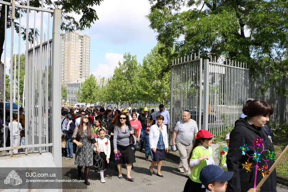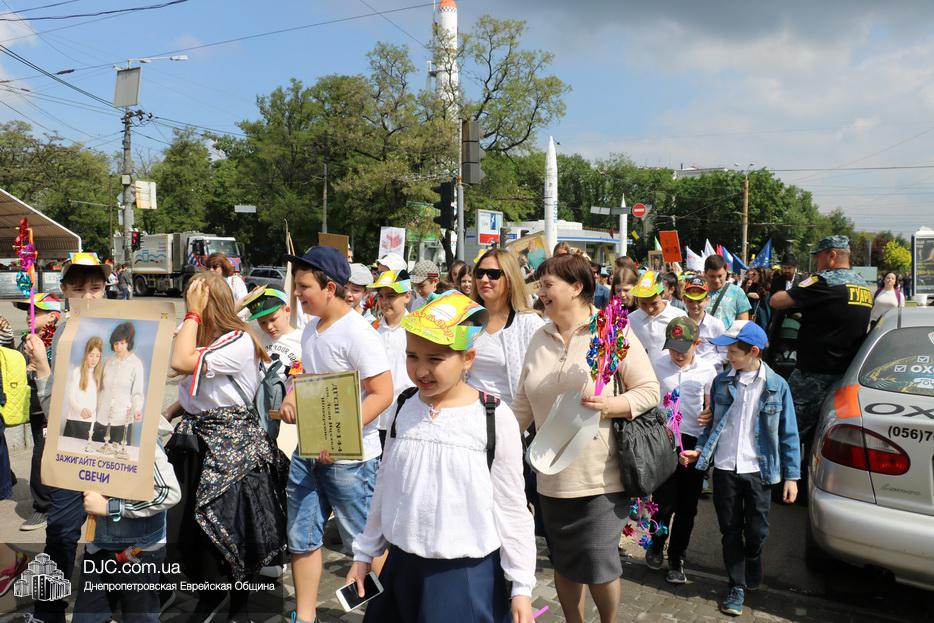 Колонна шла по проспекту под марши духового оркестра, который сменял сводный оркестр барабанщиков иешивы-ктана, колона шла по бульвару, а люди радостно махали ей из окон, поддерживали сигналами автомобилей, фотографировали на мобильные телефоны, как радостно проходят евреи Днепра центральными проспектами города, дабы продемонстрировать свою преданность заповеди «Агават Исроэль», единству и сплоченности своей общины.