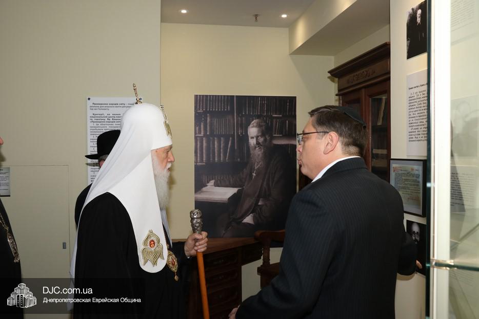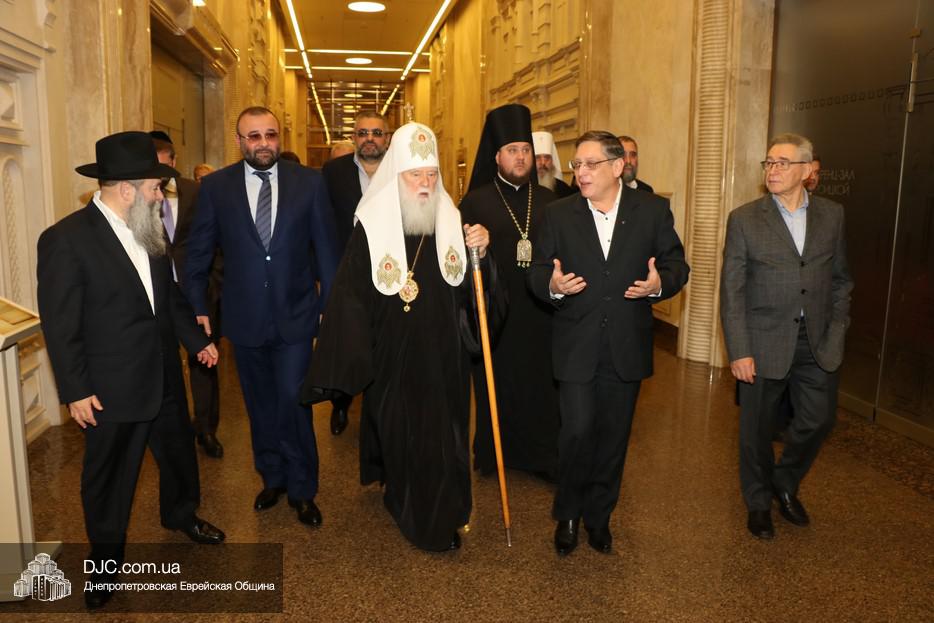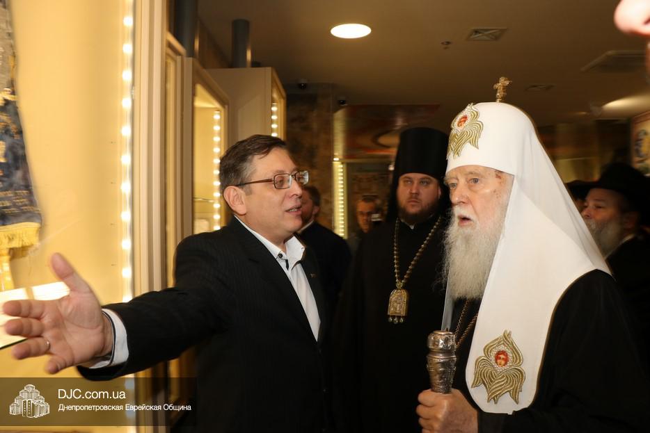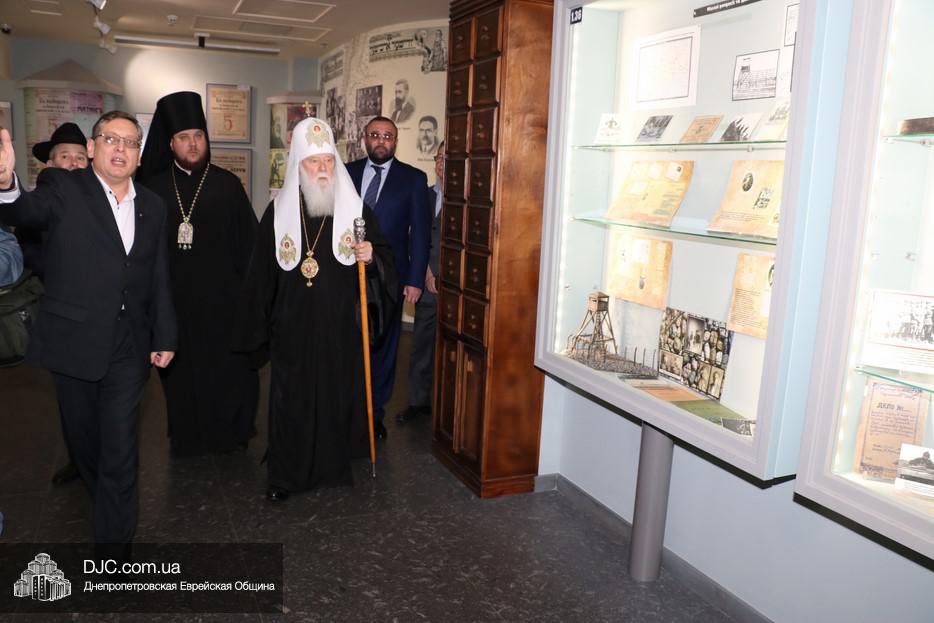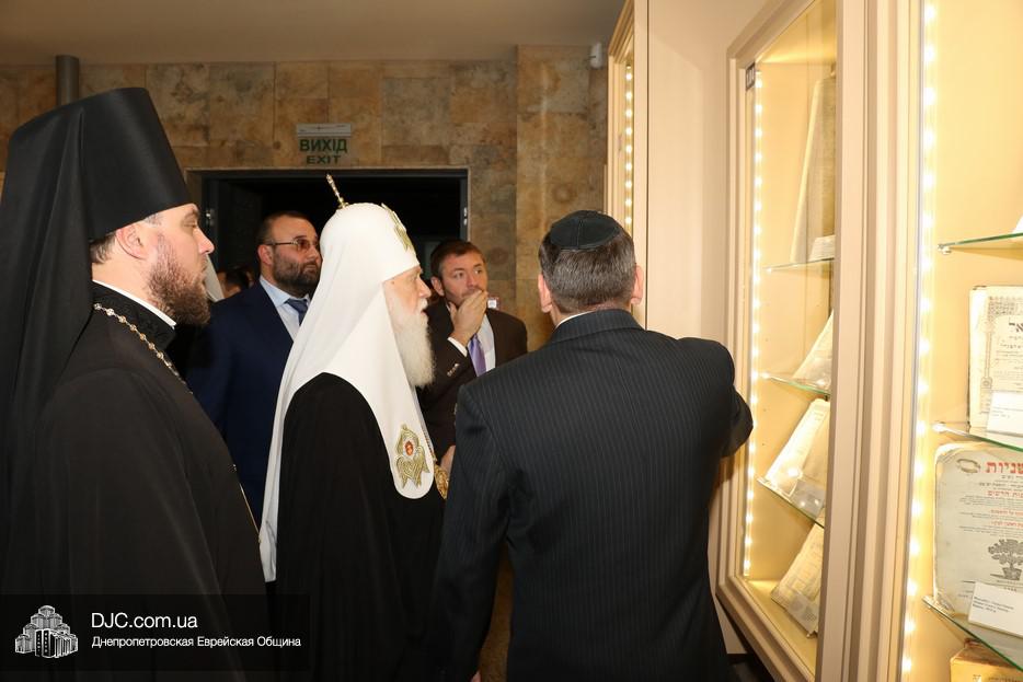 В рамках своего визита в еврейскую общину Днепра, патриарх Киевский и всея Руси-Украины Филарет, кроме встречи с широкой общественностью, побеседовал с еврейскими лидерами города, членами Попечительского Совета и посетил Еврейский Музей.