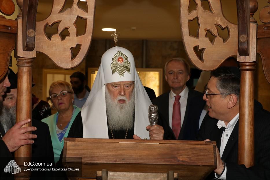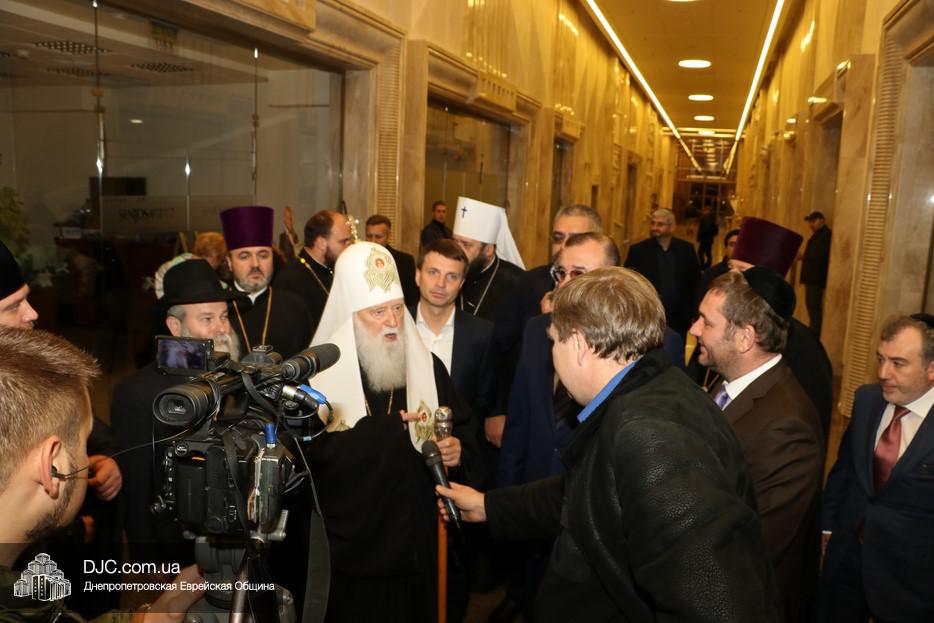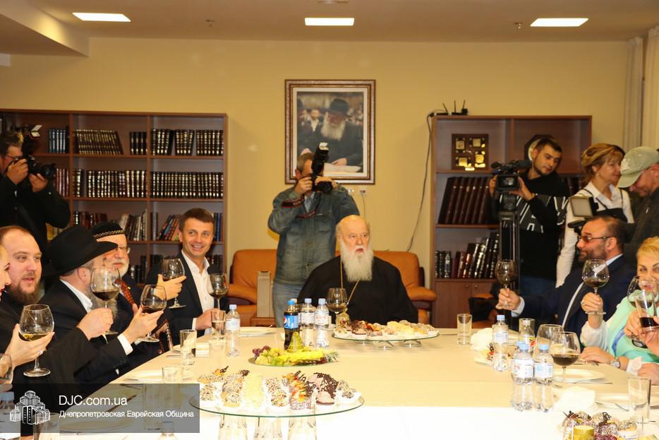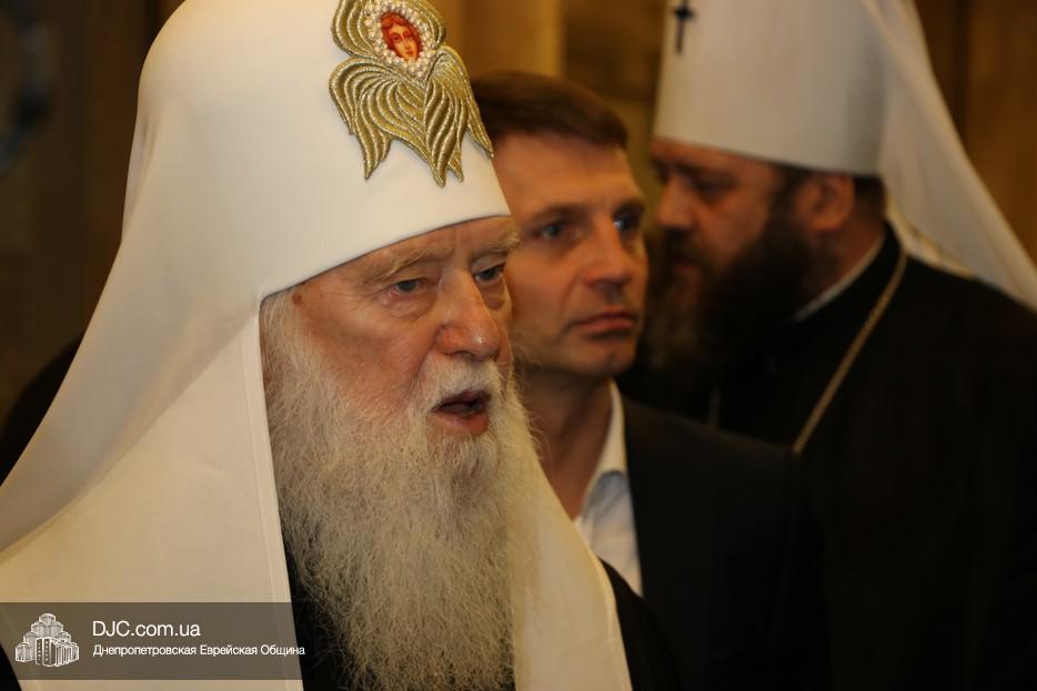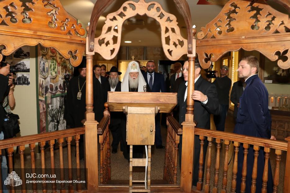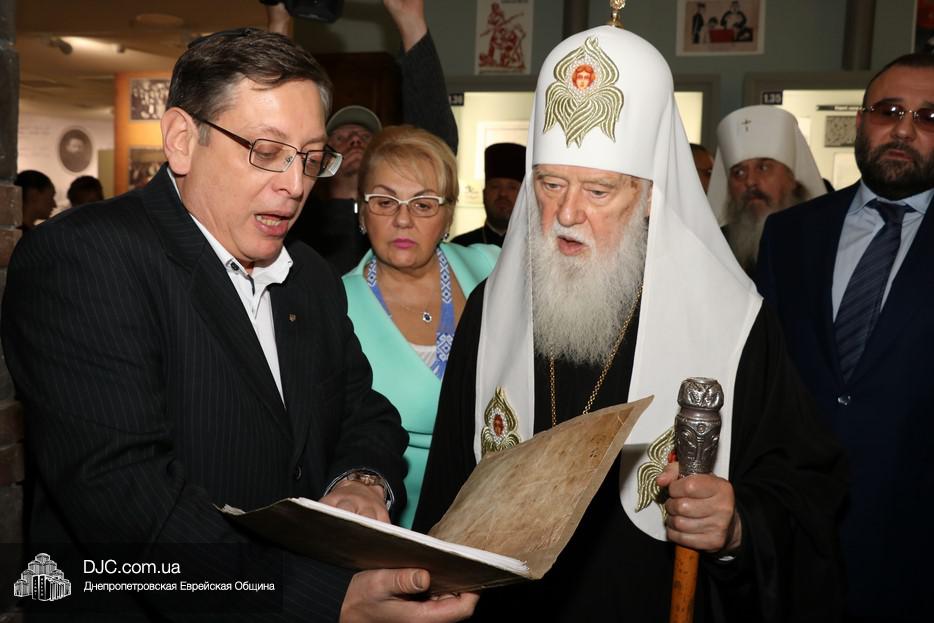 В рамках своего визита в еврейскую общину Днепра, патриарх Киевский и всея Руси-Украины Филарет, кроме встречи с широкой общественностью, побеседовал с еврейскими лидерами города, членами Попечительского Совета и посетил Еврейский Музей.