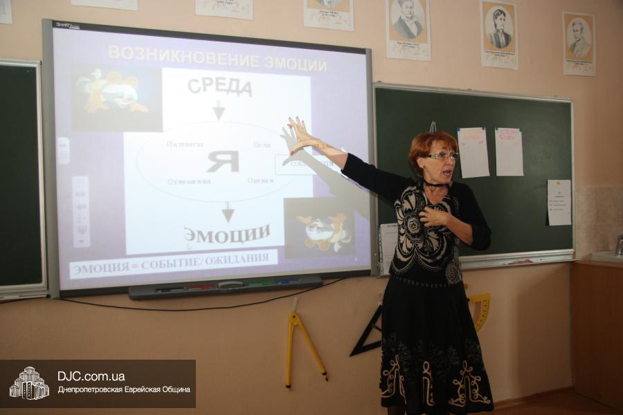 Во время того, как еврейские школьники находятся на праздничных, суккотних каникулах, для учительского коллектива еврейской школы Днепропетровска «Ор Авнер Хабад Любавич» имени Леви-Ицхака Шнеерсона проводился ряд встреч и собраний, которые были направлены на повышение квалификации, педагогического мастерства и совершенствование учебного процесса. Так, среди многих запланированных мероприятий, одним из первых был проведен семинар-лекция «Развитие эмоционального интеллекта у учителей», который подготовила и провела куратор школы по общественным дисциплинам Галина Иванова.