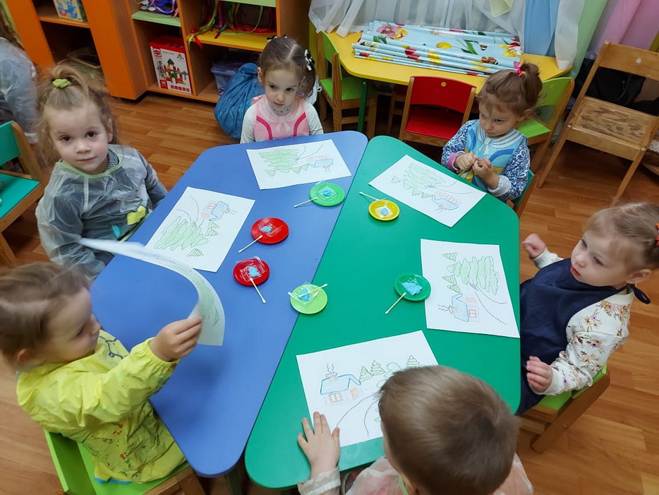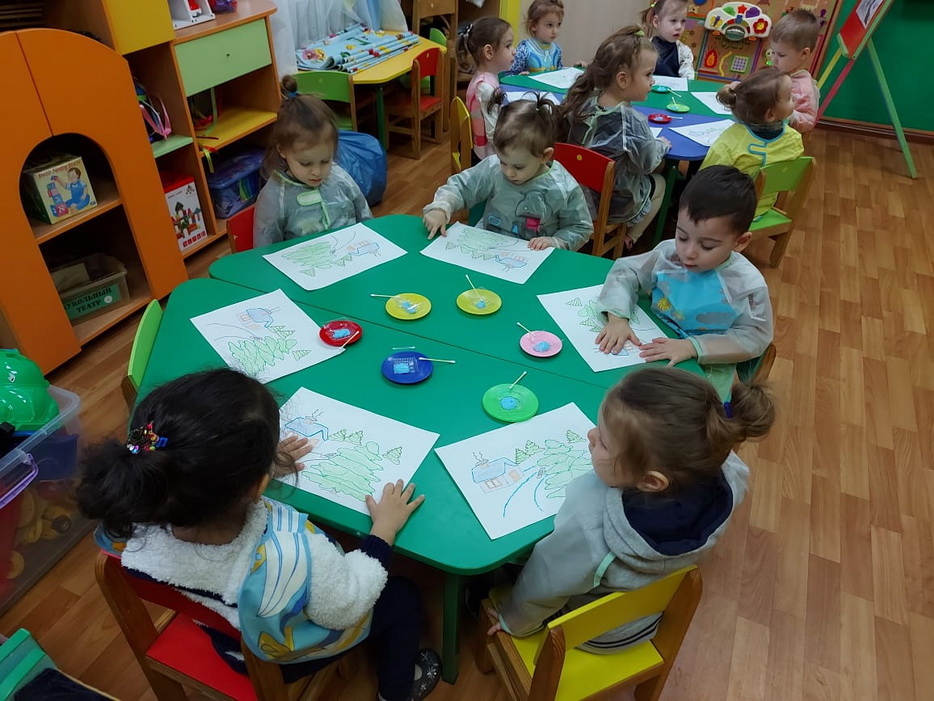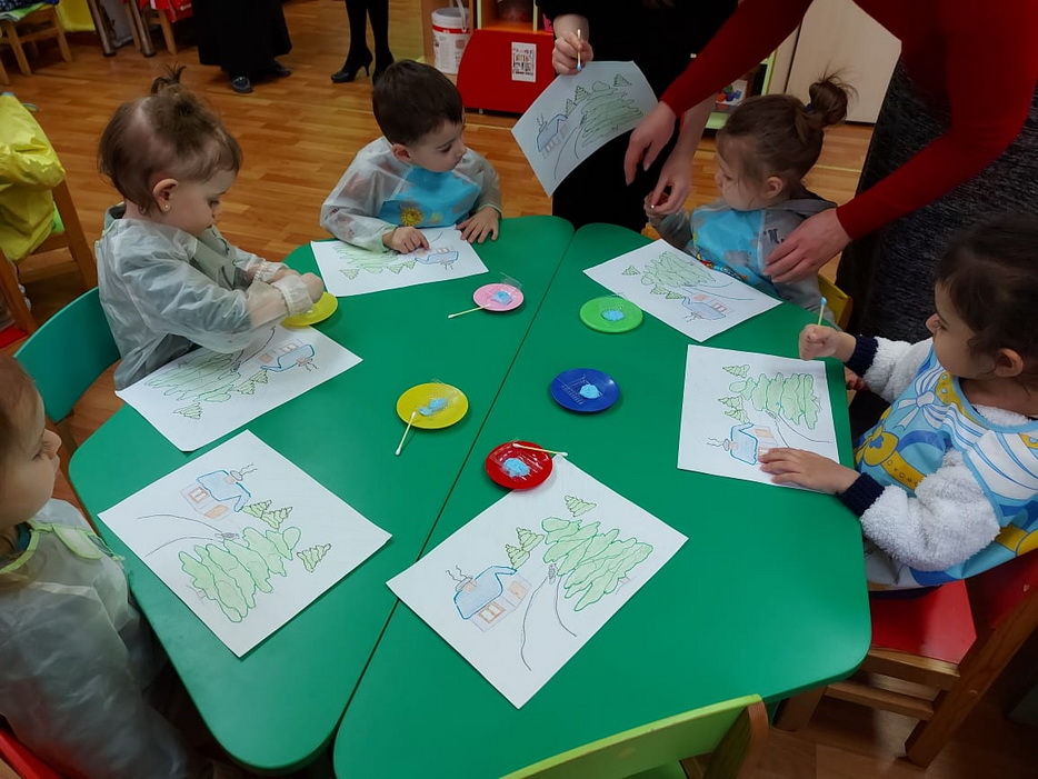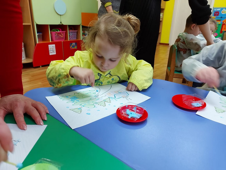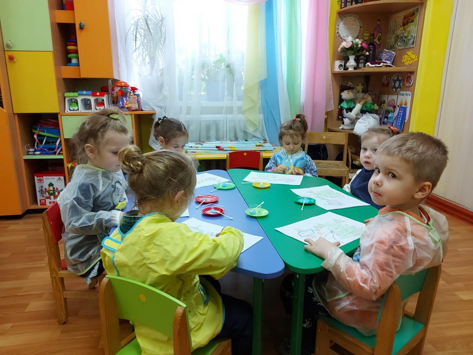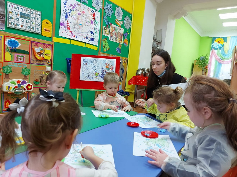 Кейла подготовила специальные картонные куклы и вместе с нашими воспитанниками повторяла пройденный материал – какой бывает зимняя одежда, ведь наши самые маленькие члены Еврейской общины не с первого раза могут все запомнить. А еще было замечательное занятие, на котором наши юные воспитанники раскрашивали зимнюю картинку красками.