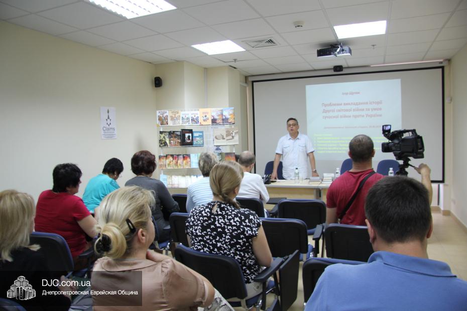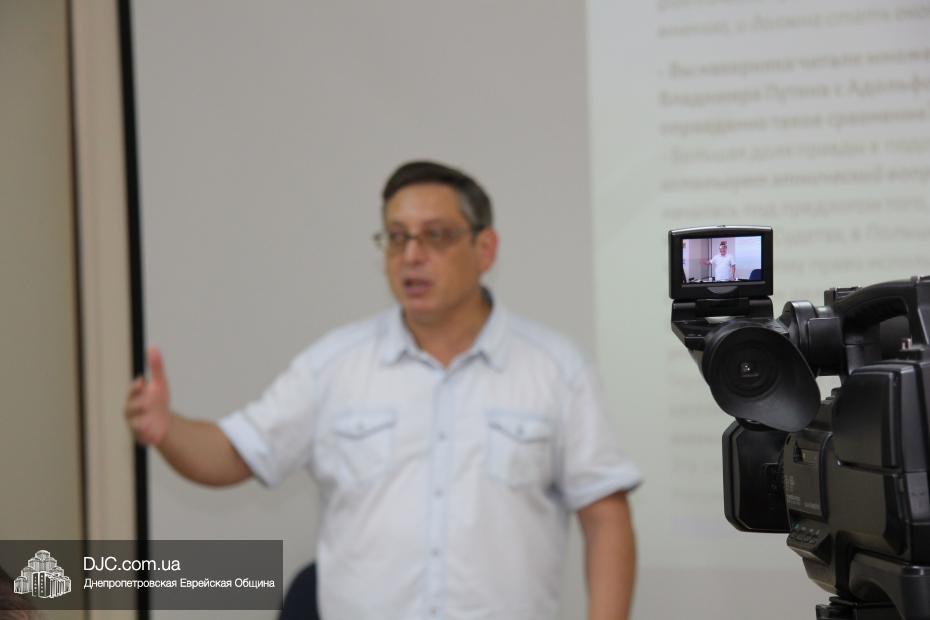 К участию в семинаре приглашались работники системы образования и педагоги средних образовательных учреждений нашего города – методисты и учителя истории, преподающие этот предмет в старших классах. Кроме того, участие в семинаре принял советник председателя Днепропетровской облгосадминистрации Борис Трейгерман, выступавший в качестве почетного гостя мероприятия, носившего характер лекции-дискуссии на исторические, политические и социально-культурные темы, связанные с трагическими событиями 1939-1945 годов, их последствиями, историческим толкованием и восприятием и, самое главное, влиянием на нынешние реалии.