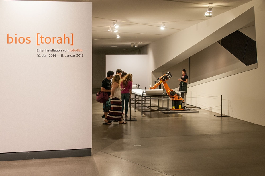 В знаменитом Еврейском музее Берлина завершается перфоманс, сочетающий образ технологического мира в виде промышленного робота с образом древнейшего искусства создания священных текстов – сойферским письмом. Специально созданное немецкой художественной группой Robotlab устройство, начиная с июля прошлого года, букву за буквой создает на бумажном полотне текст Торы, призывая восхищаться и ценить труд многих поколений сойферов, переписчиков Священных текстов.
