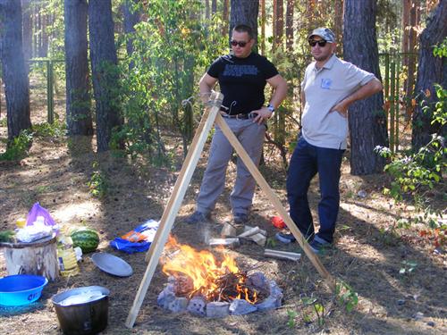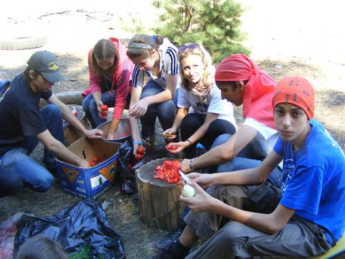 Ну а больше всего всем участникам программы запомнился обед, приготовленный вручную на огне. Благодаря группе КУРС, которая в этом лагере проходила отдельную программу подготовки. Это те ребята, которые этим летом ездили в Израиль и не понаслышке знают, что такое израильский «Цофим», и с сентября месяца начинают свою работу в городах как мадрихи молодежного скаутского клуба. КУРС обучил ребят видам костра и для чего каждый огонь предназначен, после чего все и приступили к приготовлению пищи. Овощной суп, питы, гречка, сардельки, запеченные яблоки с сахаром, фалафель – все это было с весельем приготовлено на огне и потом с радостью съедено.
