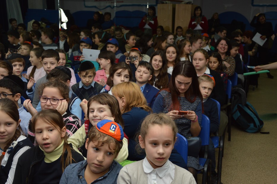 В еврейской школе Днепра «Ор Авнер Хабад Любавич» им. Леви-Ицхака Шнеерсона праздник Ханука начали отмечать большим мероприятием в актовом зале для всех учащихся.