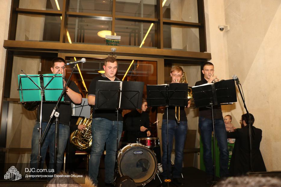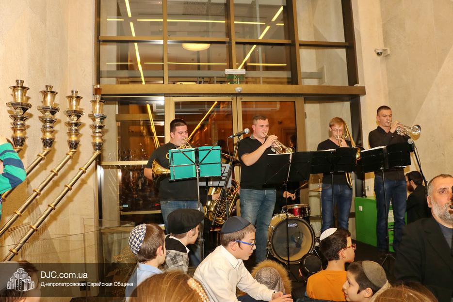 Традиционно, ханукальная развлекательная программа включает в себя и концерт популярных исполнителей или групп. В вечер первой свечи выступал духовой оркестрр «Diko Bras», который исполнял попурри на еврейские мелодии, знаменитые оркестровые пьесы и обработки популярных хитов.