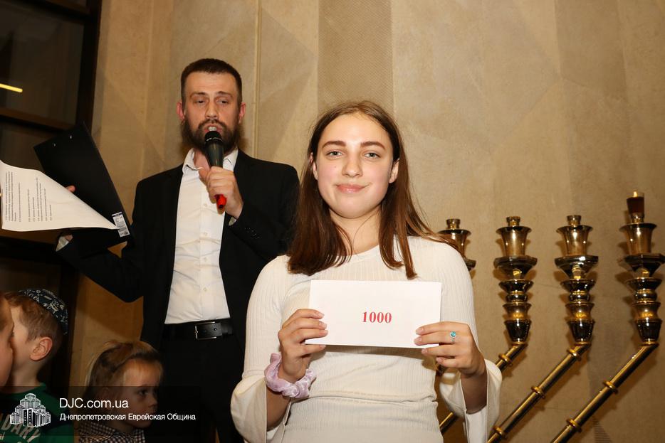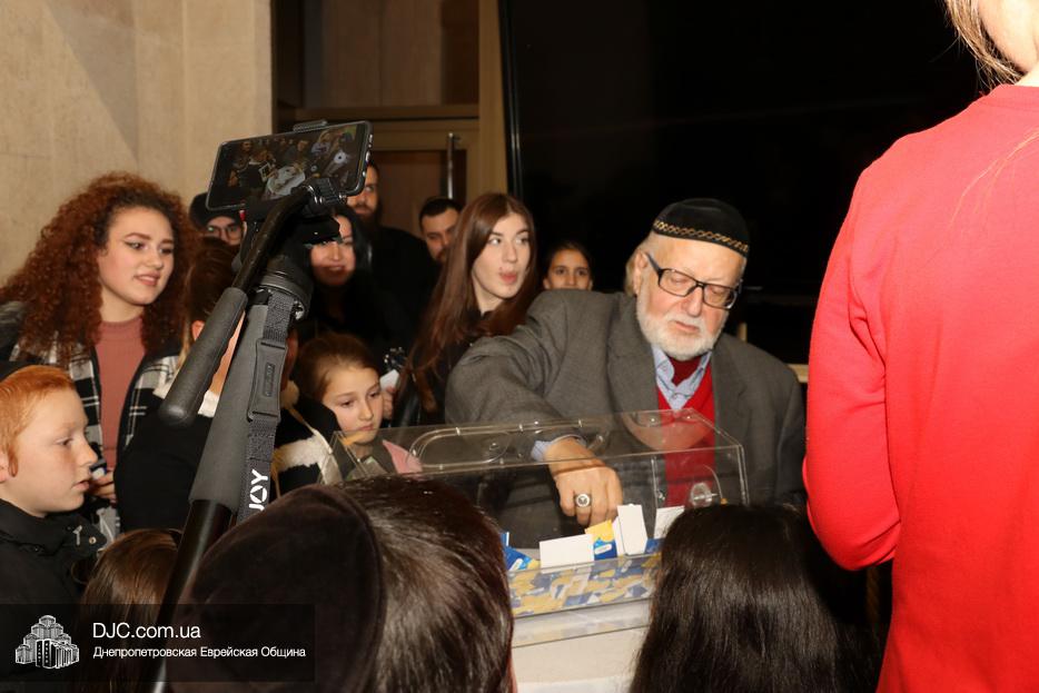 В этом году еврейская община Днепра проводит двойную лотерею – каждый день разыгрываются денежные призы и призы-сюрпризы, а кроме того, каждый пришедший на зажжение ханукии центра «Менора», каждый день может получить специальный «красный билет», который будет участвовать в супер-розыгрыше, который состоится в восьмой вечер Хануки, где главным призом будет ультрамодный «iPhone 11», чем больше дней человек участвует в зажжениях ханукий, тем больше шансов у него стать обладателем главного приза.