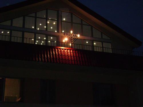 Праздничная Ханукия установлена и на фронтоне здания, и свет ее несет радость и добро и жителям Дома и всему, что его окружает.