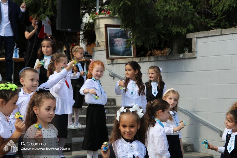 Завершением церемонии стало напутствие от одиннадцатиклассников и первый звонок, которые дали сами первоклассники, и небольшой звонок в руках каждого из них положил начало новому учебному году в еврейской школе Днепра.
