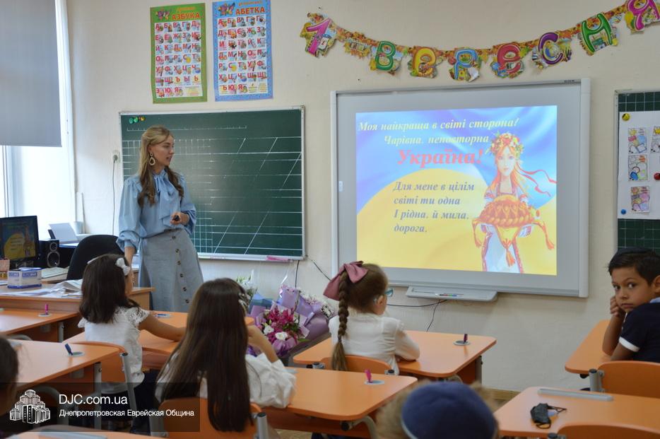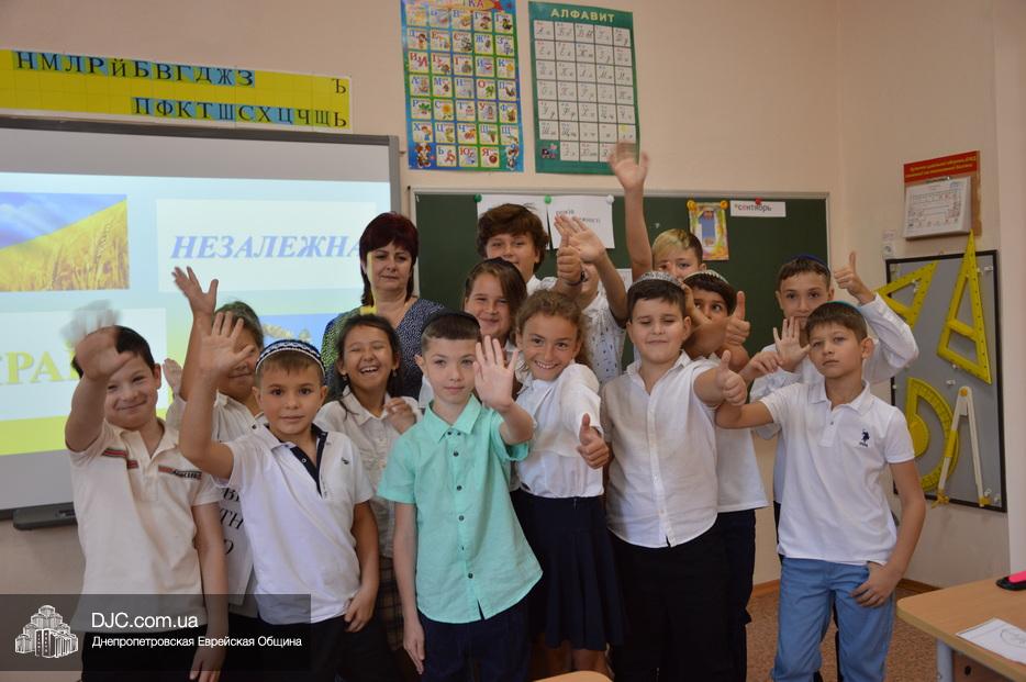 Для всех же остальных учеников еврейской школы прошел праздничный урок, посвященный 30-й годовщине Независимости Украины и началу учебного года.