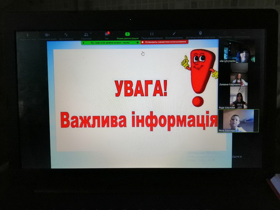 Первый урок был организационным. На нем была дана информация о расписании уроков в каждом классе, о времени звонков, о правилах дистанционного обучения, обо всех возможностях и недостатках такого образования, классные руководители ответили на все вопросы ребят. В каждый класс для приветственного слова и напутствия во время этого online урока зашел представитель администрации и также ответил на вопросы, возникшие у наших воспитанников.