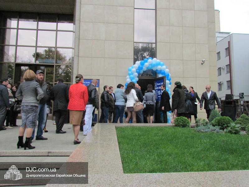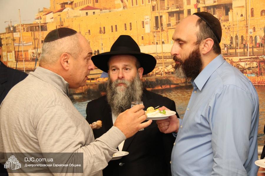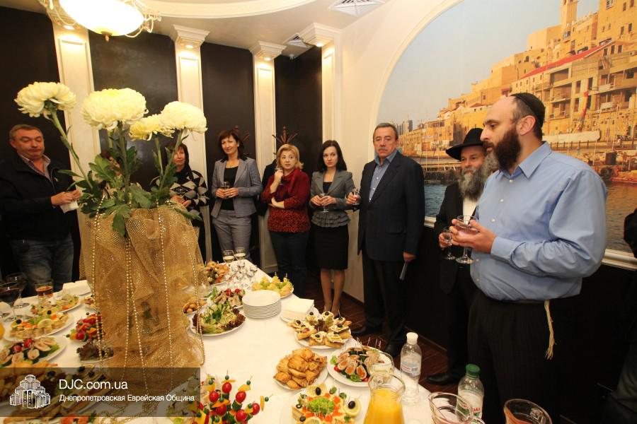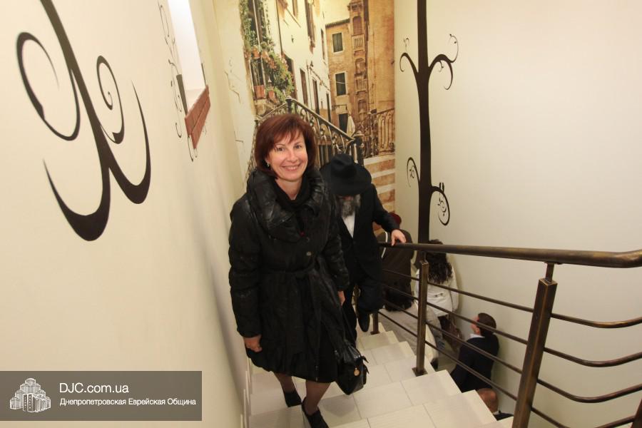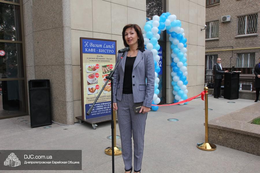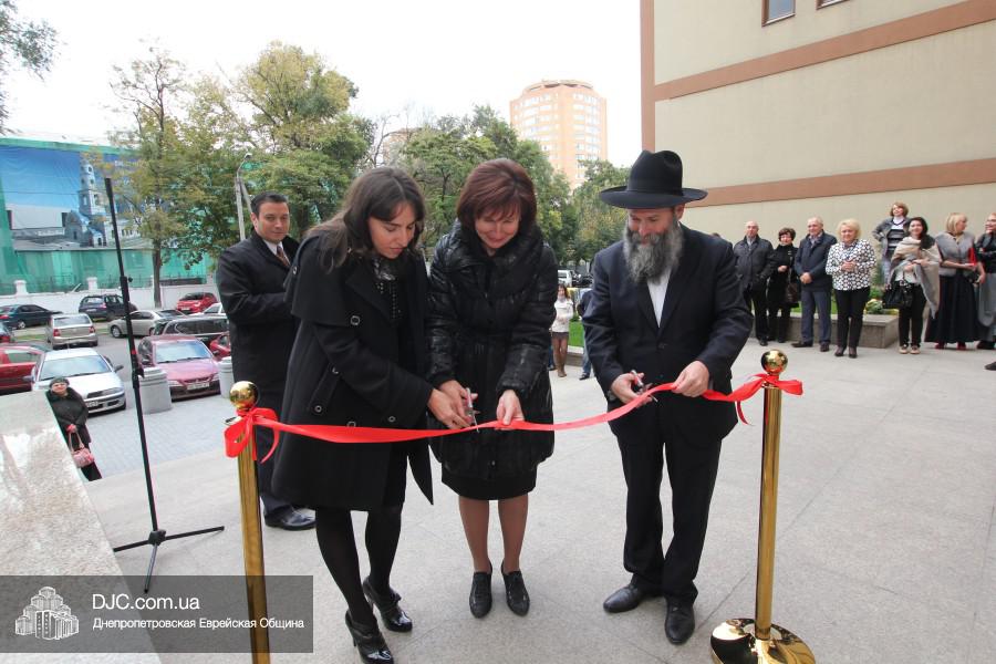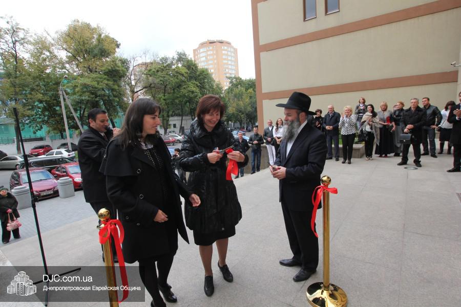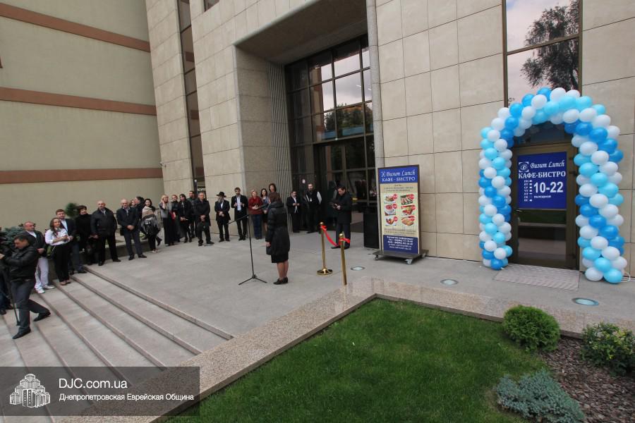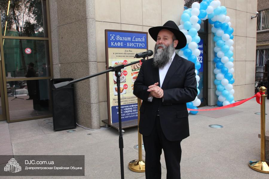 Ленточку у входа в кошерное кафе-бистро «Визит Lunch» со стороны площади Демьяна Бедного перерезали Главный раввин Днепропетровска и Днепропетровского региона Шмуэль Каминецкий, заместитель городского головы Ирина Зайцева и владелица кафе Ольга Гулько.