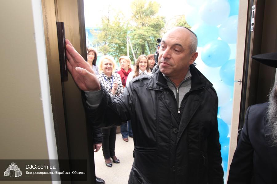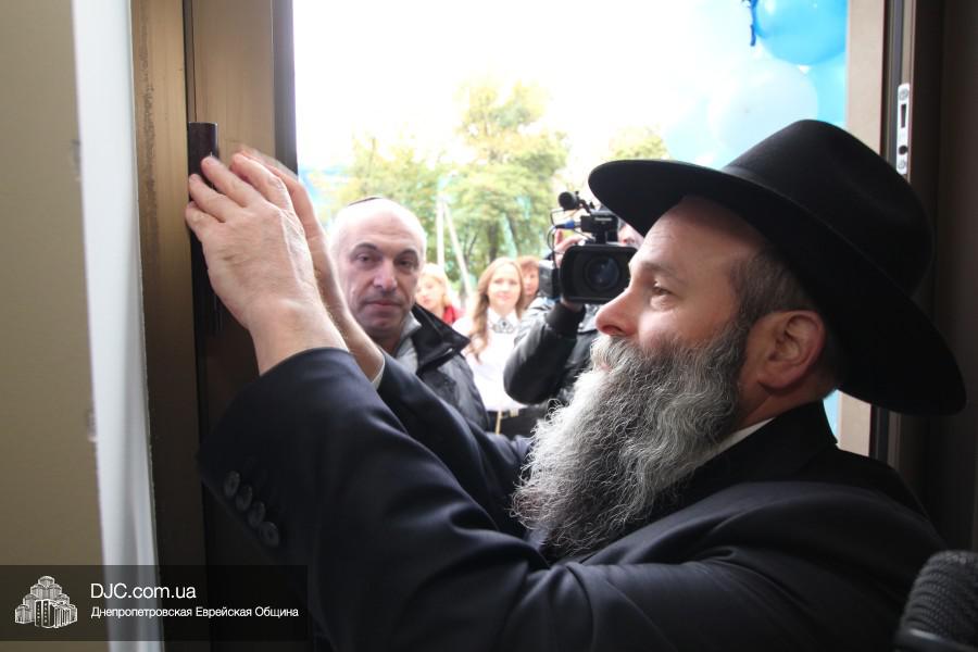 Церемонию «Ханукат а-Байт» – прикрепление мезузы – провел Главный раввин Днепропетровска и Днепропетровского региона Шмуэль Каминецкий.
