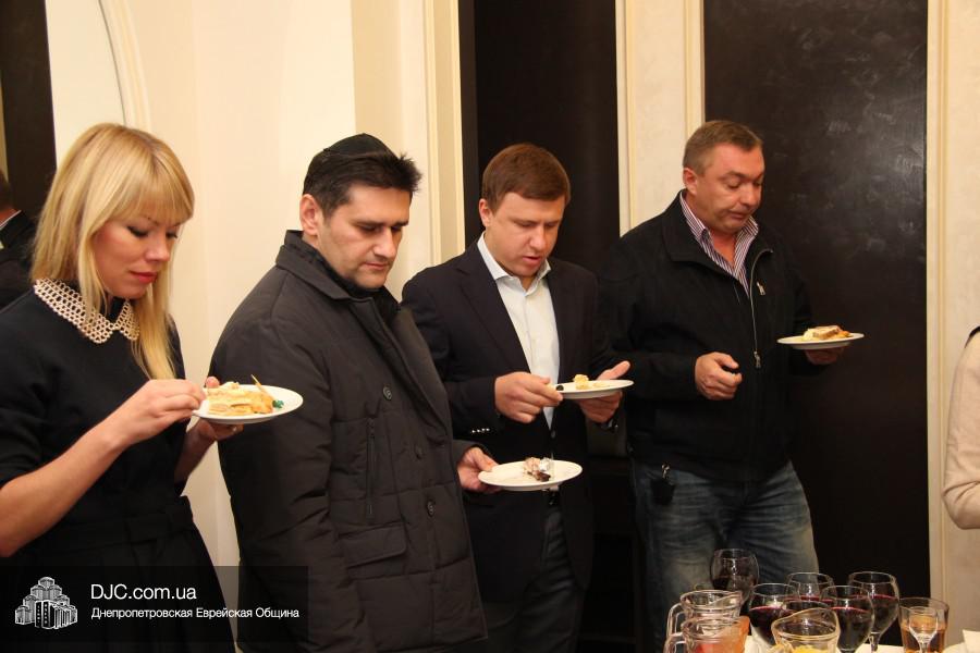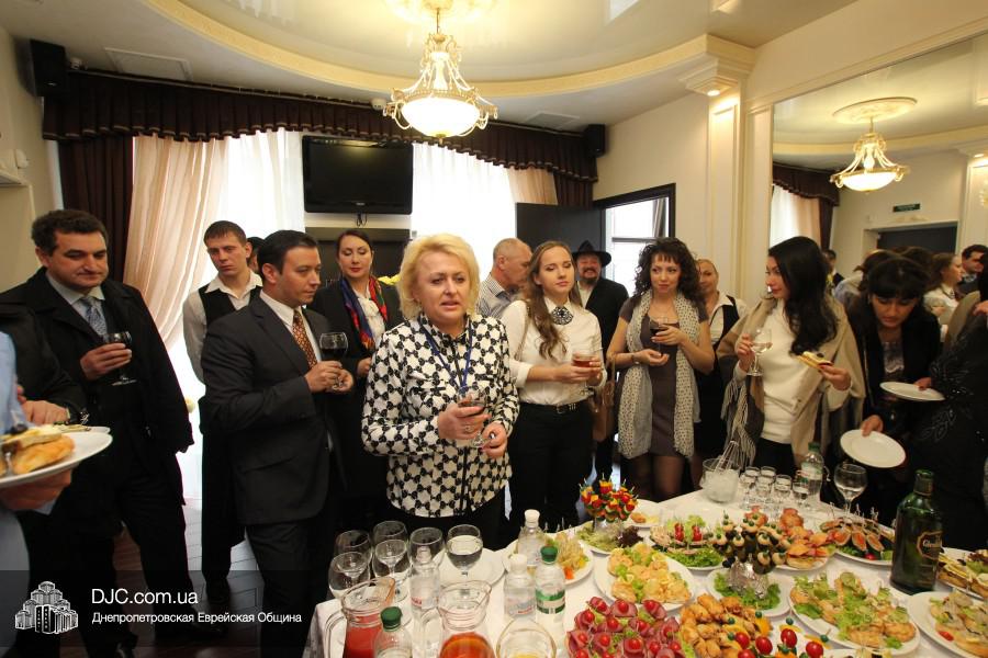 Празднование продолжилось в VIP-зале «Визит Lunch», который сегодня также впервые был продемонстрирован публике. Здесь был накрыт прекрасный и изысканный фуршет, и многие гости предложили сделать лехаим за процветание этого заведения, за семью Гулько, создавшую этот формат, за то, чтобы кашрут перестал быть экзотикой, а стал доступен в самых различных форматах, стилях и направлениях. Многие гости выражали восхищение предложенными блюдами, особенно рыбным тортом и фаршированной рыбой, а также другими яствами. Корреспондент сайта www.djc.com.ua спросил директора «Визит Lunch», замечательного кулинара Наталью Кравченко о том секрете, с помощью которого ей удалось покорить сердца многих гурманов. «Секрет нашего заведения очень прост. Это сочетание двух основополагающих стандартов – качественной советской кулинарии и еврейских диетарных законов. Все должно быть свежее, высшего качества и приготовленное в строгом соответствии с нормами и технологиями. Здесь не может быть компромиссов, наши посетители должны получать только лучшее. Есть, конечно, и еще маленькая добавка, не написанная не в одном учебнике и не зафиксированная ни одним ТО – в пищу надо вкладывать душу», – сказала Наталья Кравченко.
