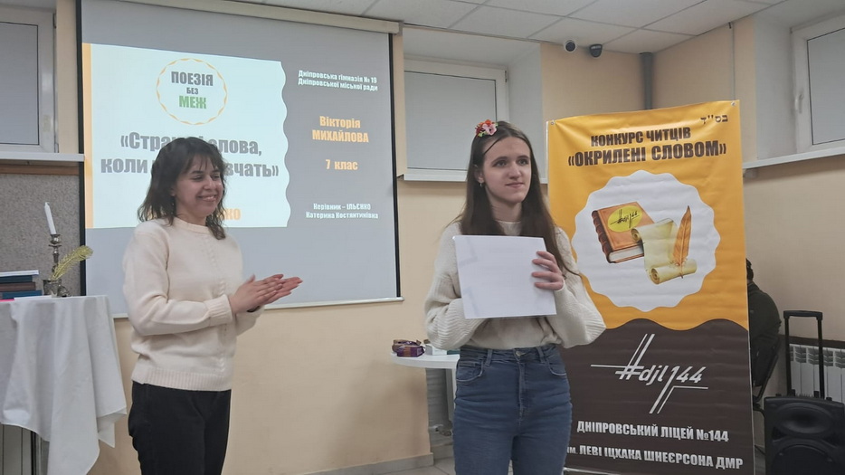 В еврейском лицее №144 имени Леви-Ицхака Шнеерсона, ведущем образовательном учреждении Еврейской общины Днепра, состоялся межшкольный этап городского конкурса чтецов «Окрыленные словом», объединивший учеников почти тридцати учебных заведений Днепра. Юные участники представили проникновенные выступления в жанре художественного чтения и декламации, продемонстрировав искреннюю любовь к слову, поэзии и украинской культуре.