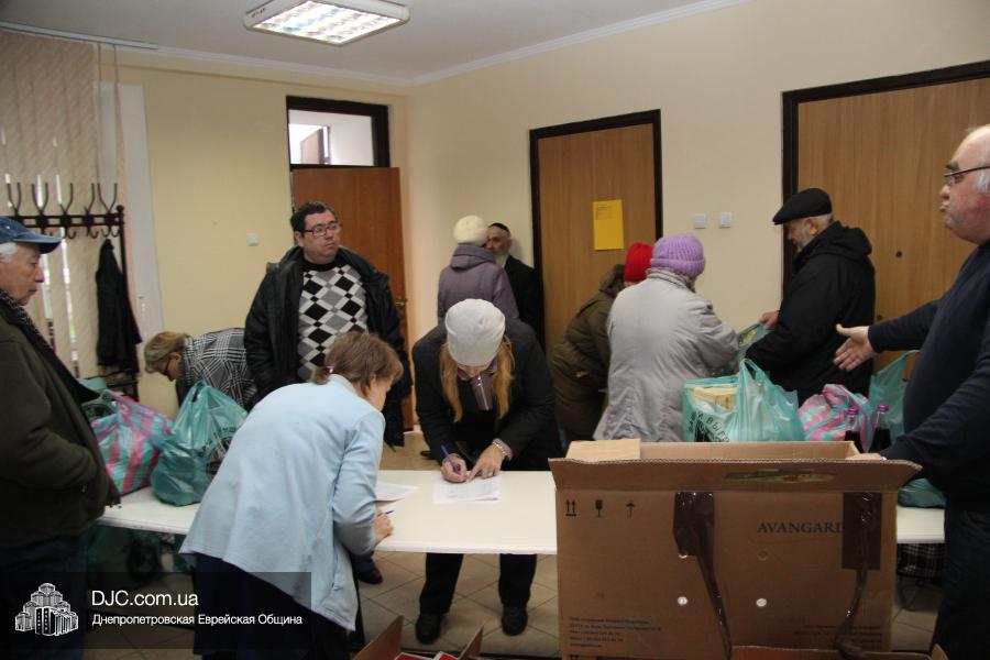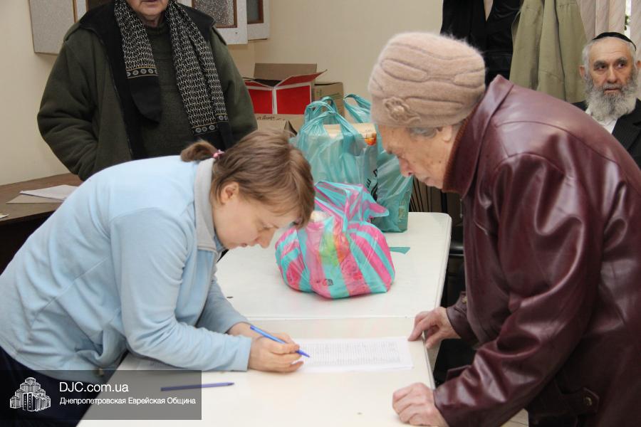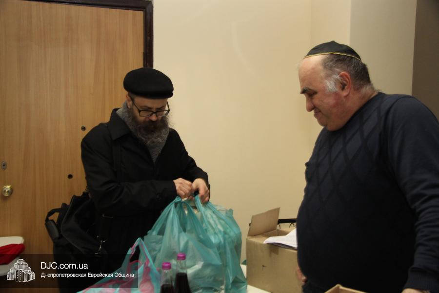 Выдача продуктовых наборов проходила в исторической синагоге «Леви-Ицхак» и руководил выдачей директор пансиона для мальчиков «Байт ле-Баним» Гурам Шаташвили. Он сообщил нашему сайту, что в состав каждого подарочного набора, кроме трех килограммовых пачек мацы и двух литров кошерного виноградного сока, также вошли три кошерные курицы, три упаковки гефилтефиш, литр подсолнечного масла, десяток яиц и овощи – по два килограмма моркови, свеклы, лука и 4 кг картофеля.
