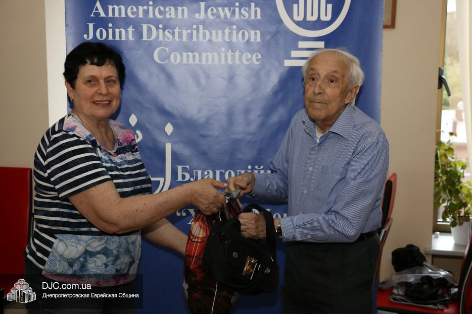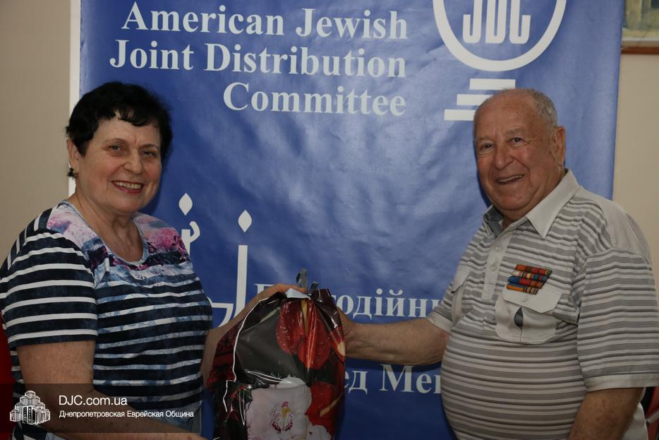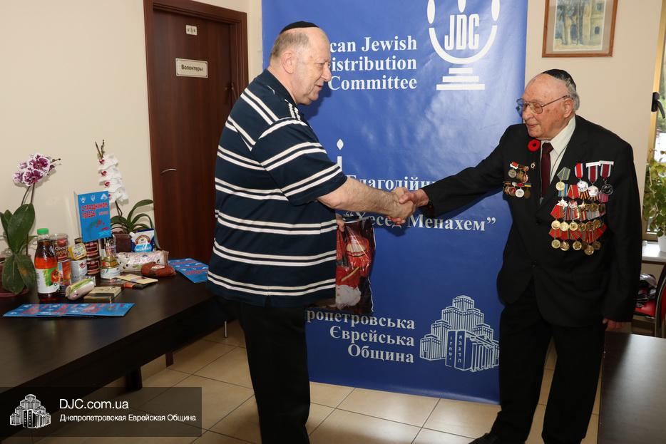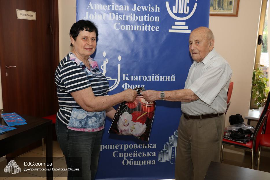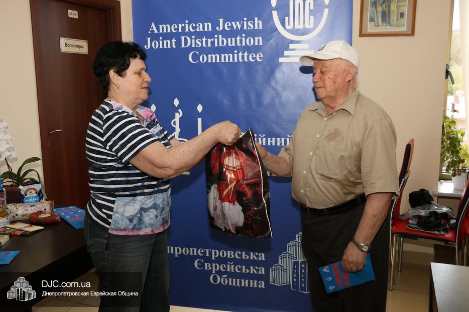 Накануне торжественной даты ветеранам были вручены праздничные продуктовые наборы, в которые вошли изысканные продукты и деликатесы: тушенка, печень трески, маслины, красная икра, колбаса, рыбные консервы, оливковое масло, сок, консервированные персики, чай, зефир, шоколад, шоколадные конфеты, загущенное молоко, шоколадная паста и бутылка водки. Членам Совета евреев-ветеранов, кто, несмотря на годы активен и приходит в Хесед, подарки с самыми теплыми словами и поздравлениями вручали руководители Благотворительного Фонда, а тем, чья мобильность ограниченна, передавали через родственников или патронажных сестер.
