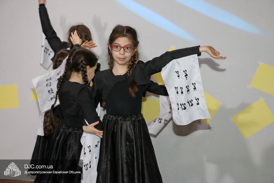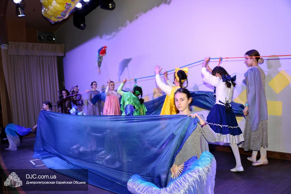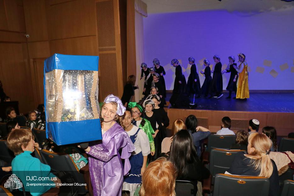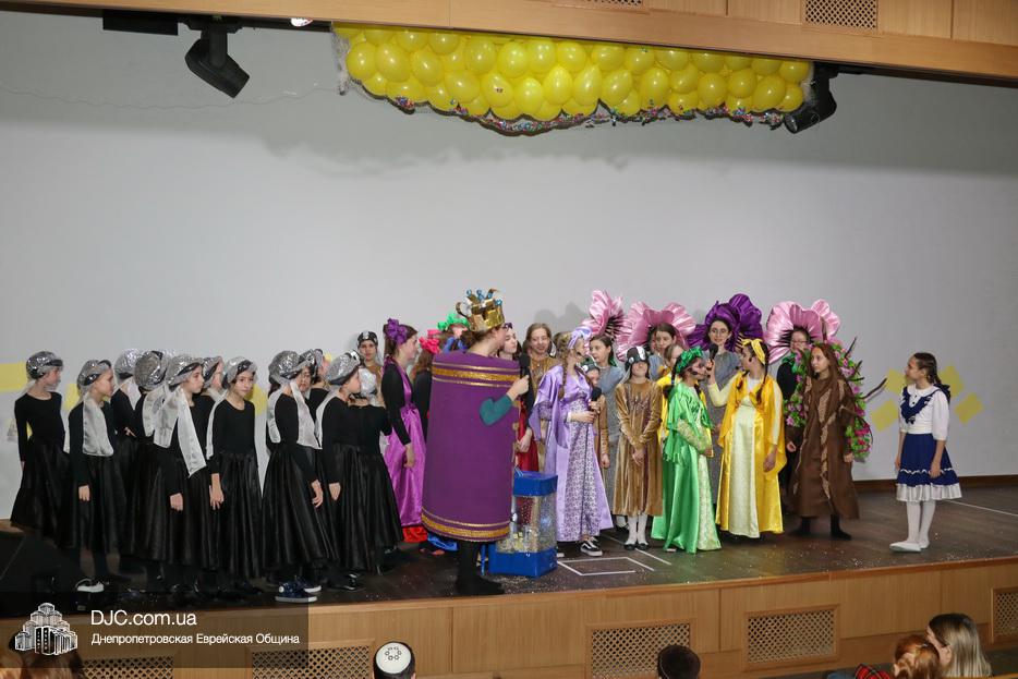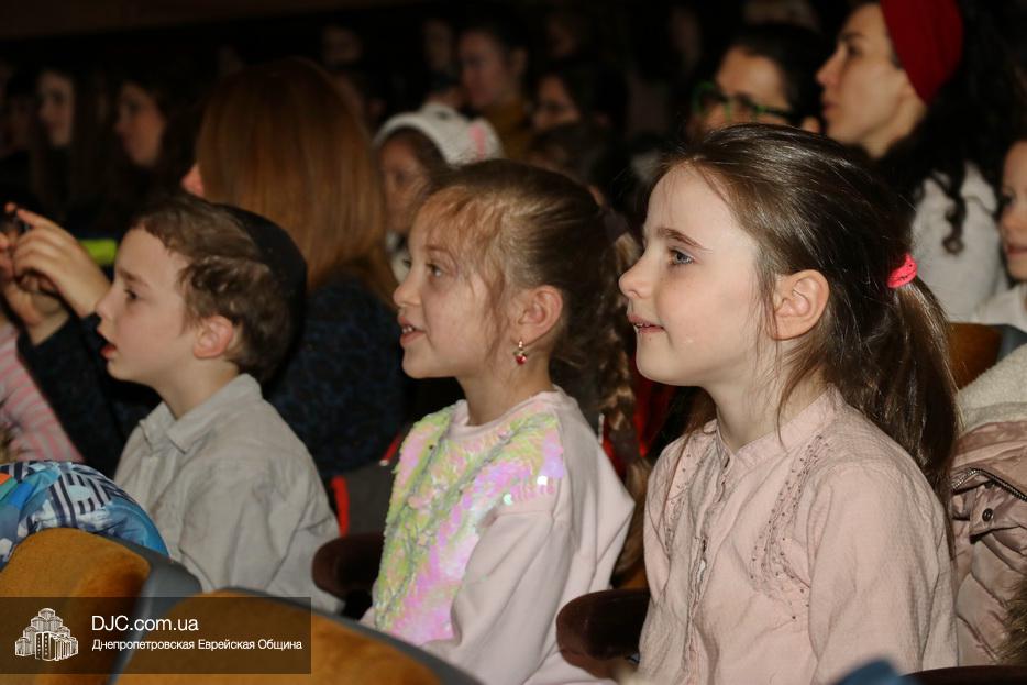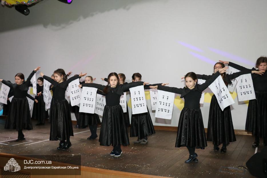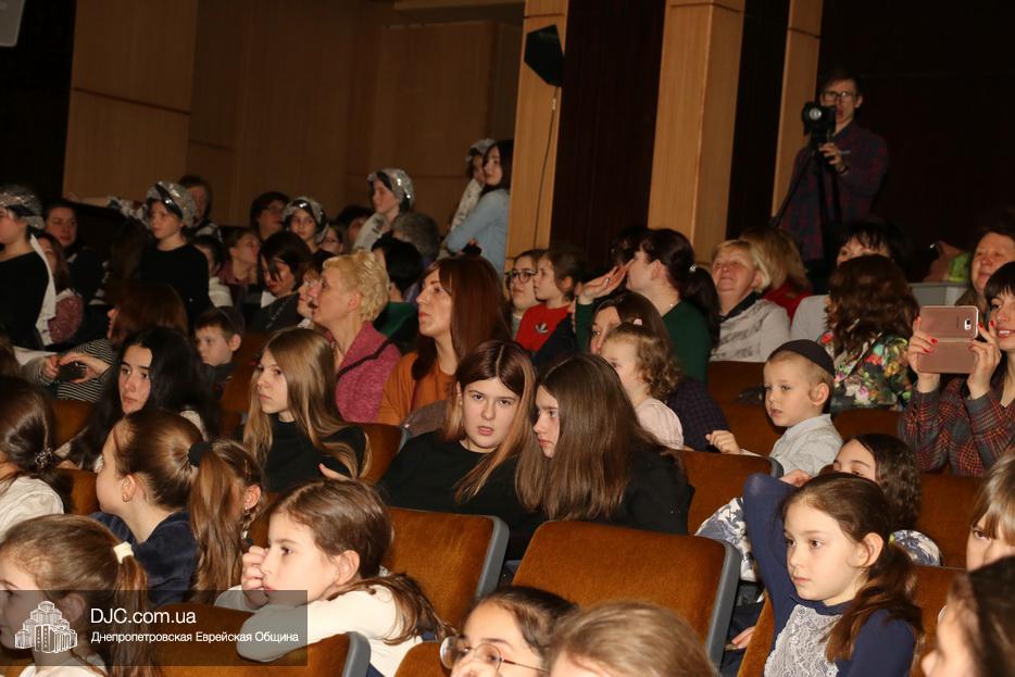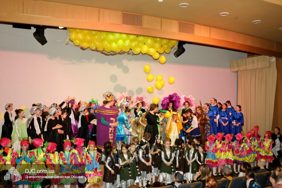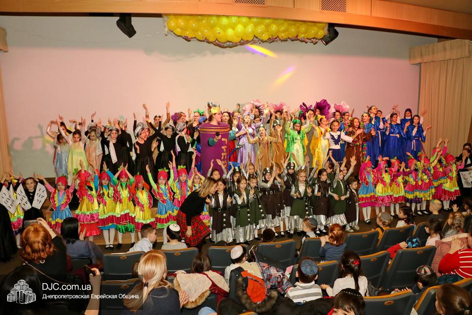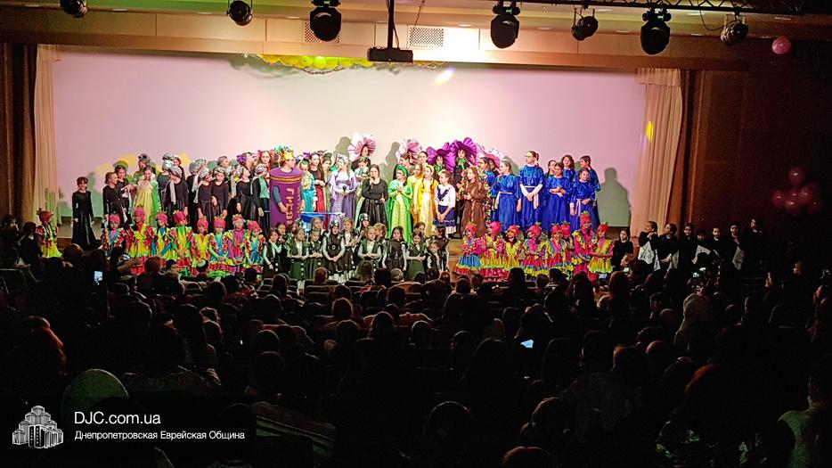 В конце представления, когда все поднялись на сцену, ведущие объявили, что самую глубокую благодарность они выражают еврейской общине Днепра и лично Главному раввину Днепра и региона Шмуэлю Каминецкому, а также всем учителям, педагогам, волонтерам и активистам, кто создавал, участвовал и помогал в создании этого представления.