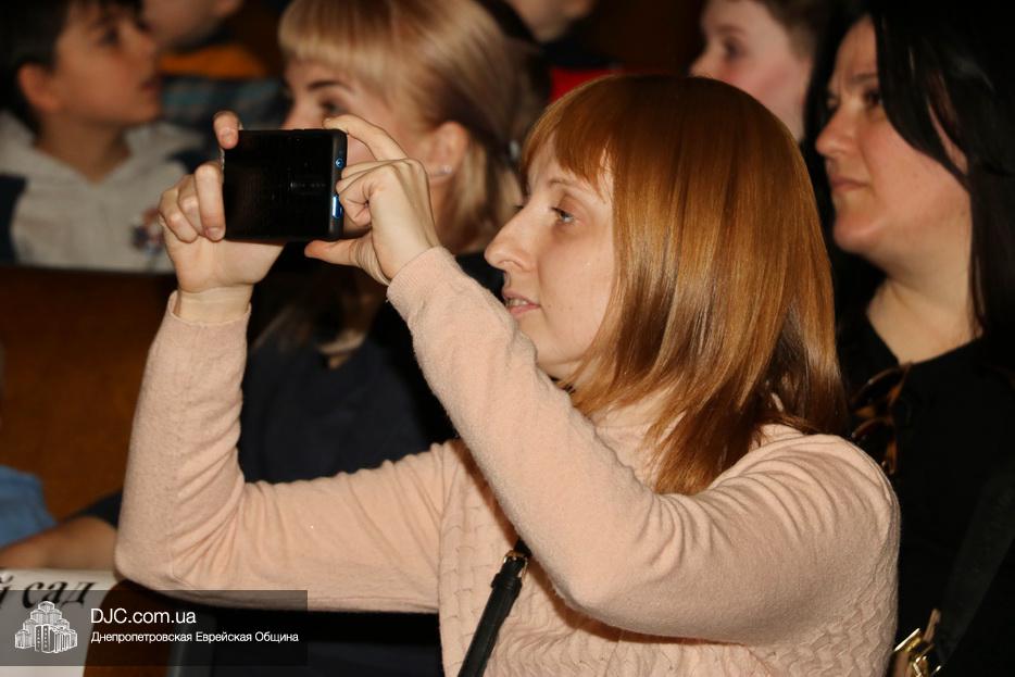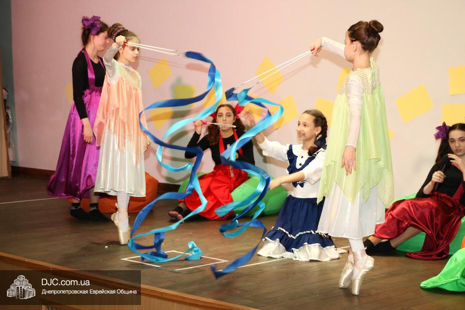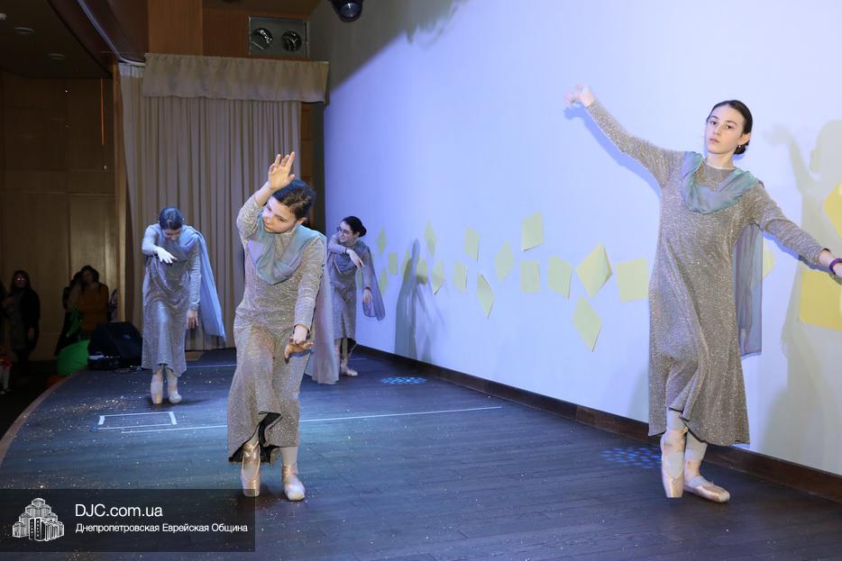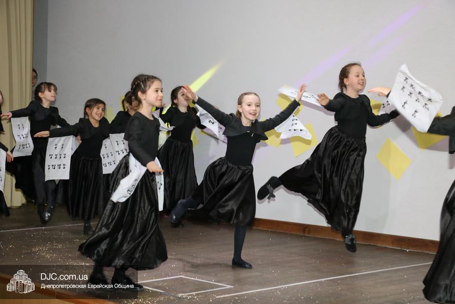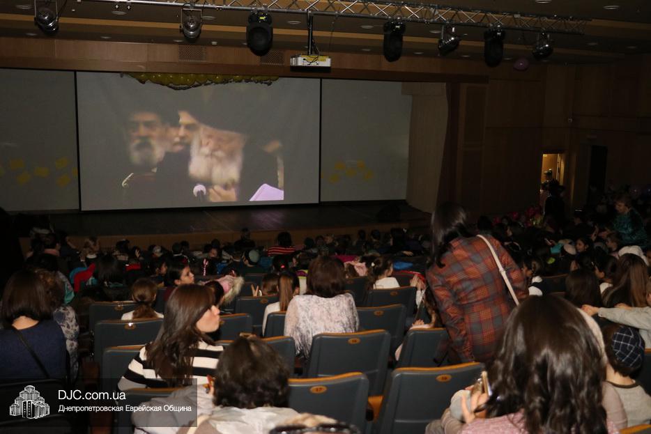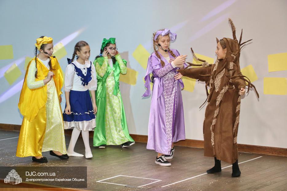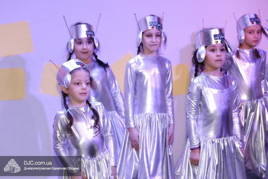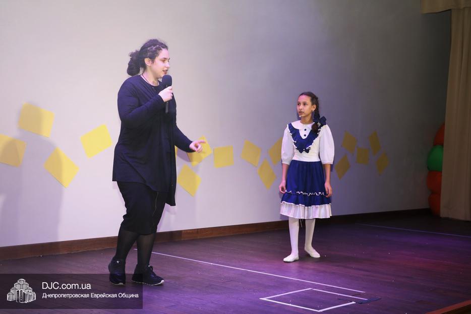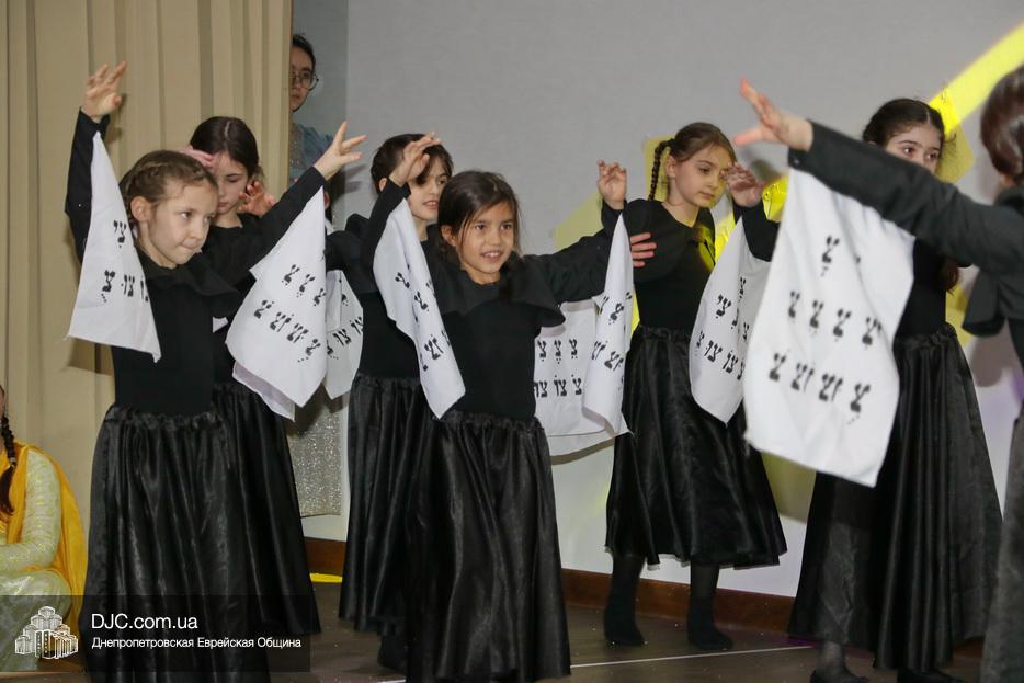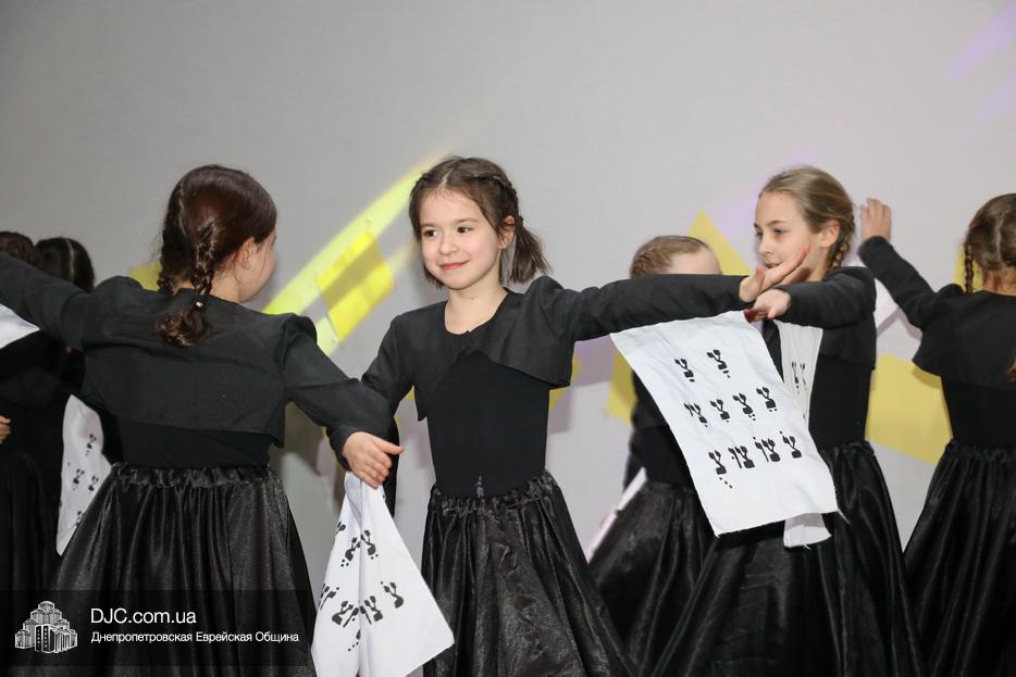 В конце представления, когда все поднялись на сцену, ведущие объявили, что самую глубокую благодарность они выражают еврейской общине Днепра и лично Главному раввину Днепра и региона Шмуэлю Каминецкому, а также всем учителям, педагогам, волонтерам и активистам, кто создавал, участвовал и помогал в создании этого представления.