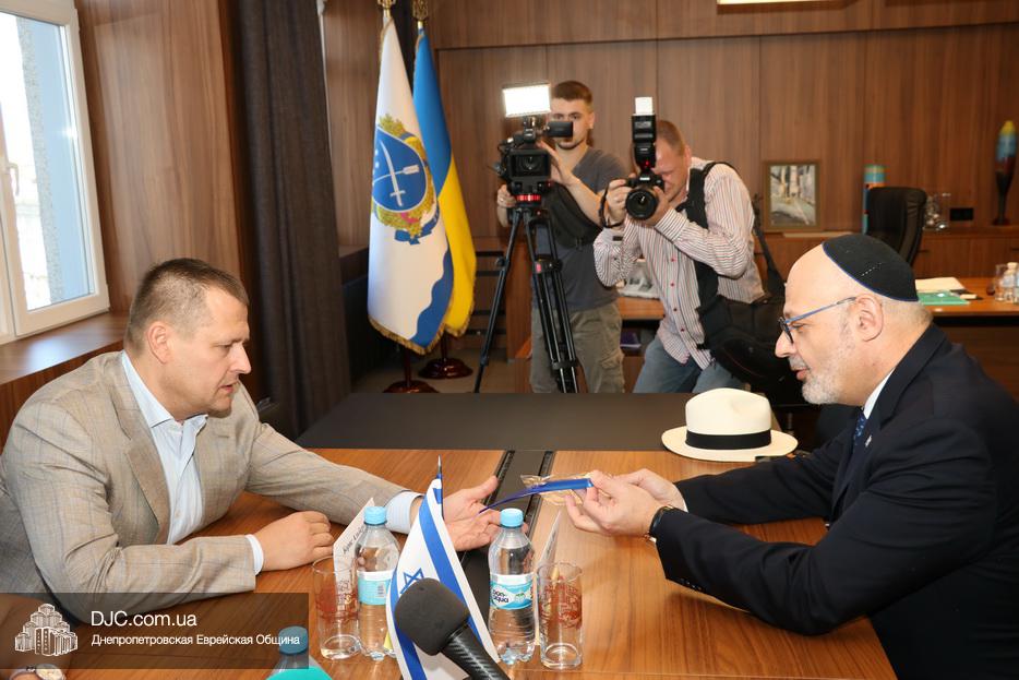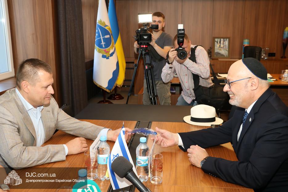 Далее встреча продолжилась в закрытом формате без прессы. Посол государства Израиль Джоэль Лион, в рамках своего визита, намерен провести ряд встреч, принять участие в ряде общественных событий и внимательно ознакомиться с жизнью еврейской общины Днепра и всего города.