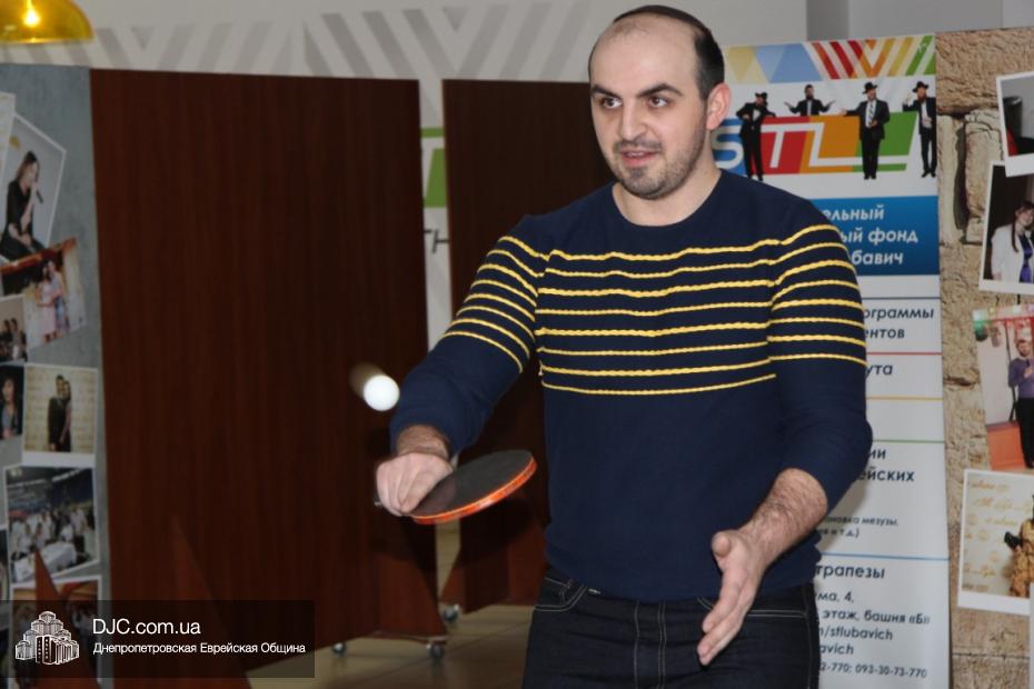 В залах фонда «Шиурей Тора Любавич» на 8 этаже центра «Менора» прошел большой спортивный праздник, организованный Днепропетровской еврейской общиной совместно с днепропетровским филиалом «Сохнут-Украина» при поддержке «Маккаби Украина» и «Объединенной еврейской общины Украины». Соревнования проходили в двух видах спорта – настольном теннисе и по активным шахматам.