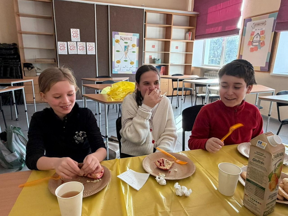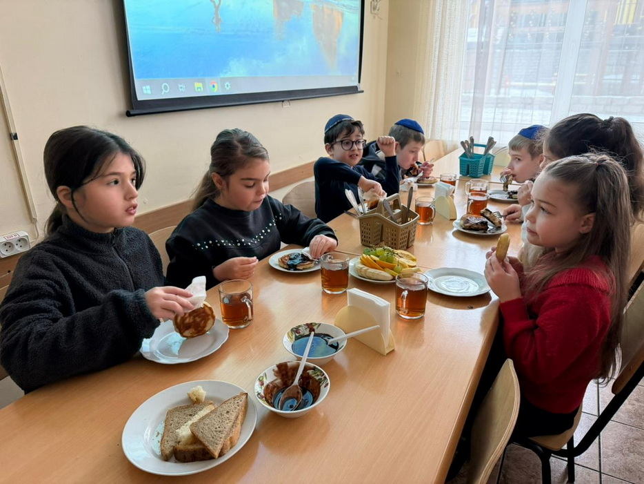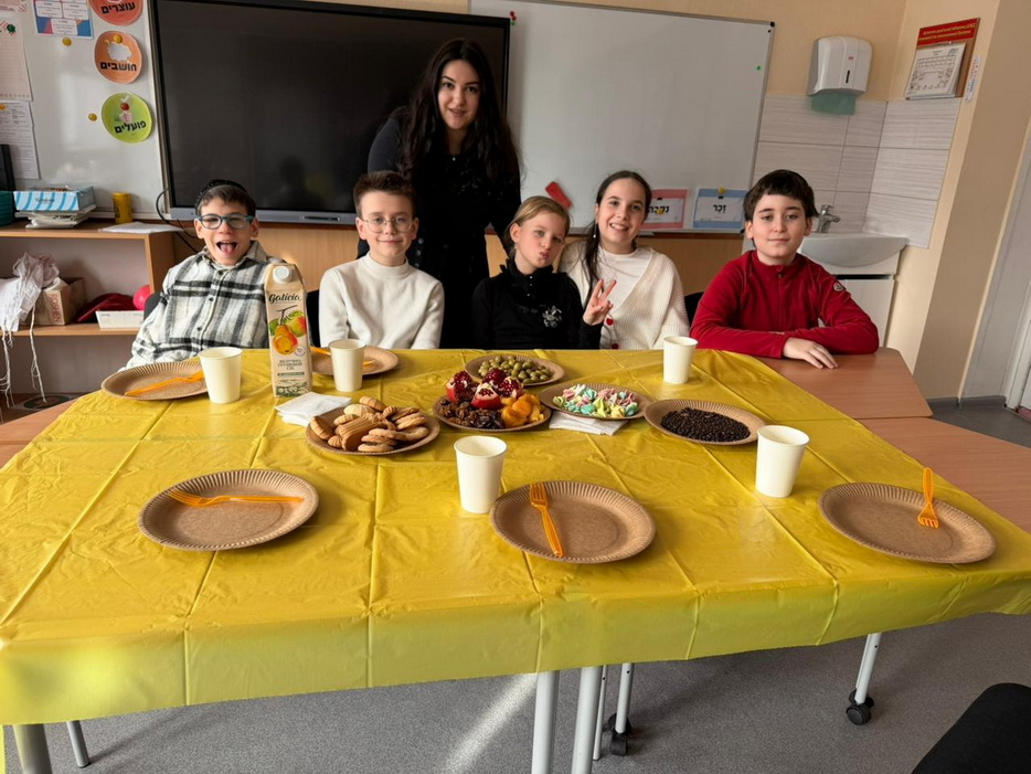 Праздничное утро началось с особого завтрака, во время которого дети пробовали знаменитые «Семь плодов Израиля». Ученики не просто угощались фруктами, а вспоминали их значение в еврейской традиции, произносили соответствующие благословения и узнавали, почему именно плоды земли Израиля стали символом изобилия, благодарности и связи человека с Творцом.