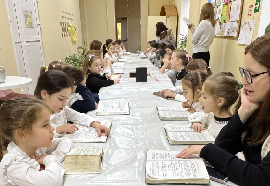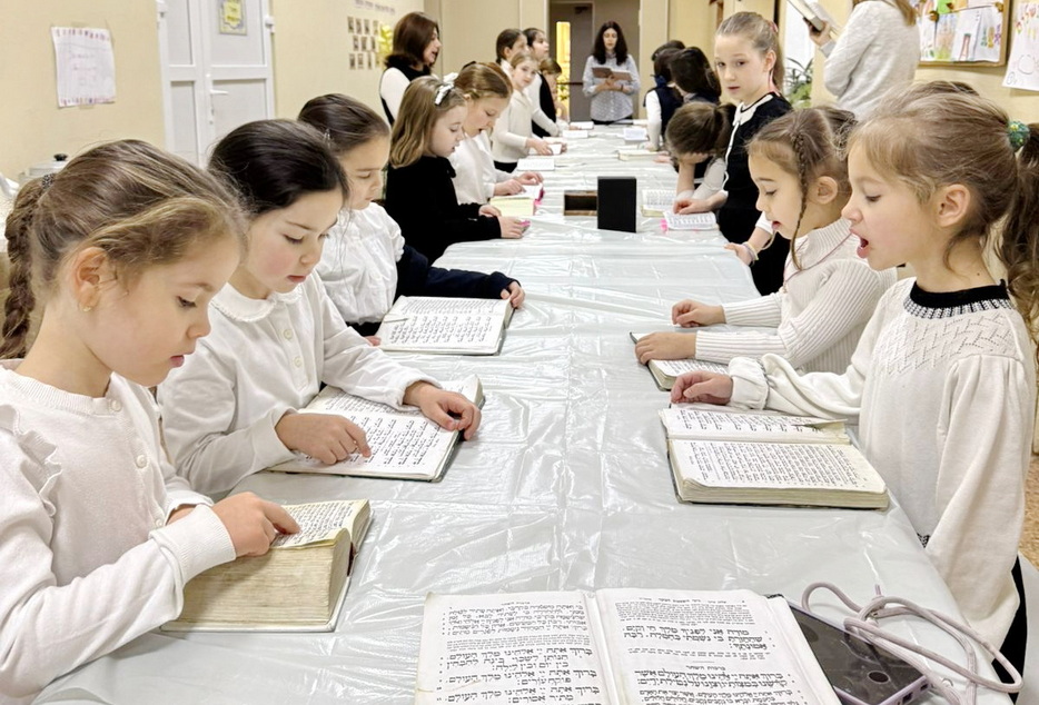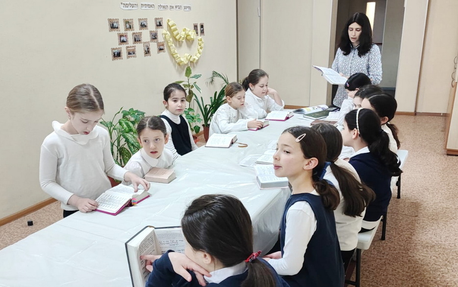 День начался с совместного изучения Тании, для чего девочки собрались в коридоре для коллективного чтения. После этого – разошлись по классам для утренней молитвы.